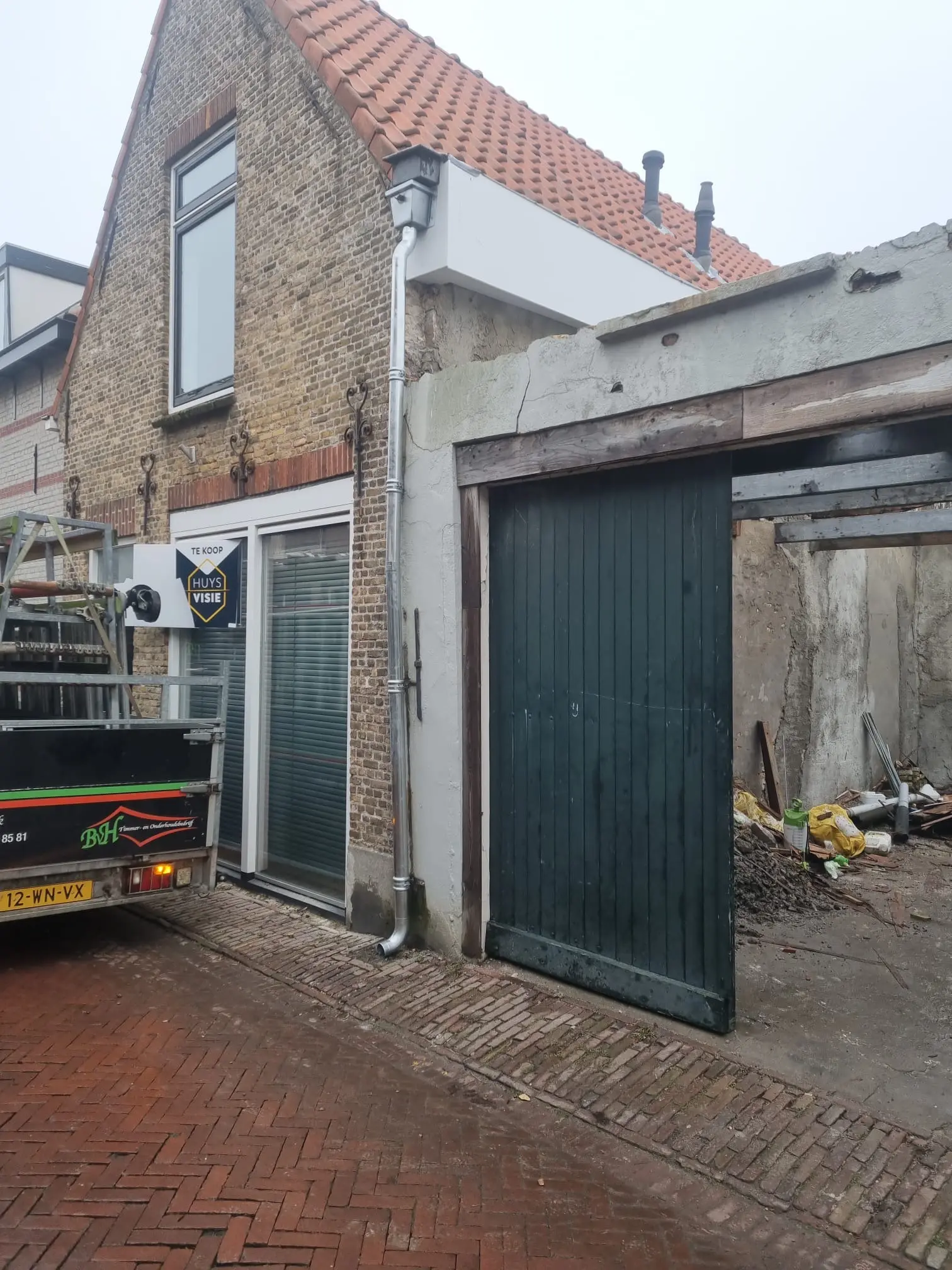 De buitengevel aan de rechterzijde (gebaseerd met de blik naar de voorgevel toe) zal begin 2026 professioneel hersteld worden.