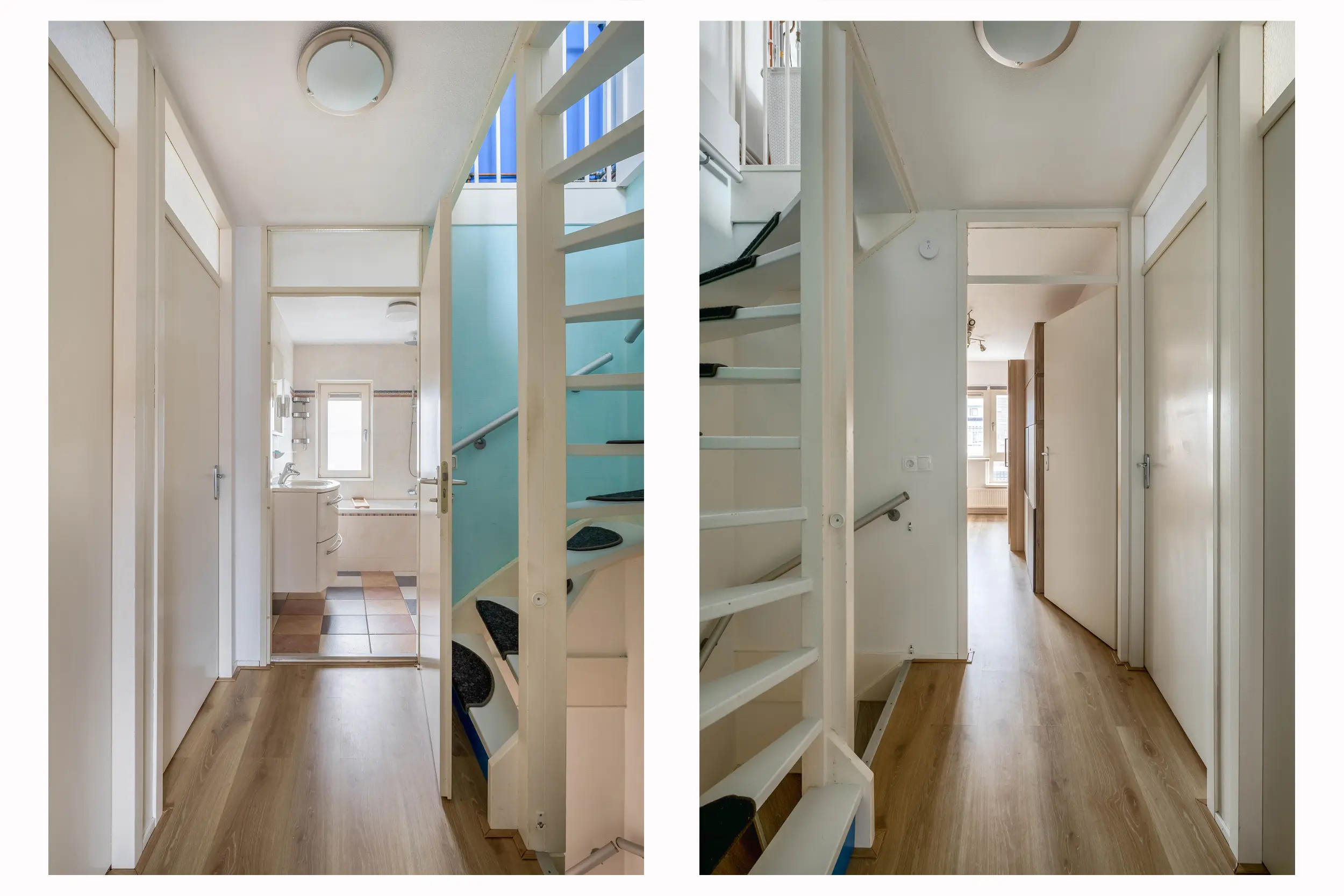 De overloop is voorzien van een nette laminaatvloer, welke is doorgelegd in alle slaapkamers. Vanaf hier heeft u toegang tot drie slaapkamers, de badkamer en de trapopgang naar de tweede verdieping.