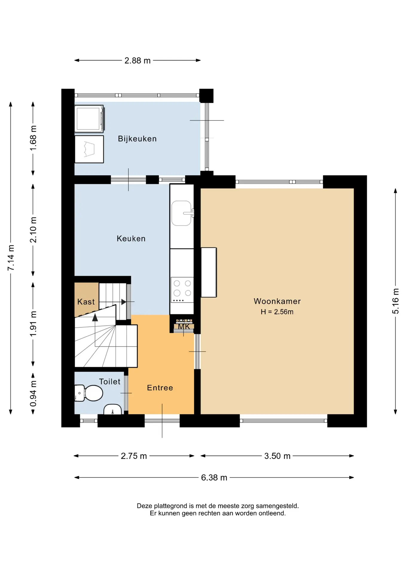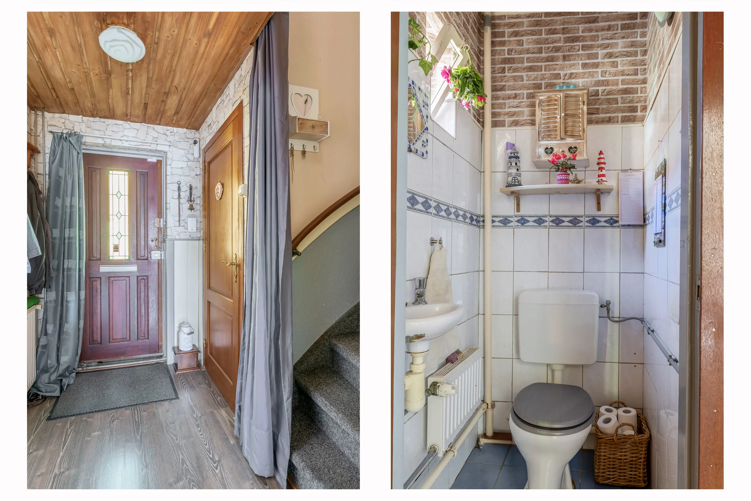 Bij binnenkomst komt u in de hal, voorzien van een laminaatvloer die doorloopt over vrijwel de gehele begane grond, met uitzondering van de bijkeuken. In de hal bevinden zich de meterkast, het separate toilet en de trapopgang naar de eerste verdieping. Vanuit de hal is er toegang tot zowel de keuken als de living.