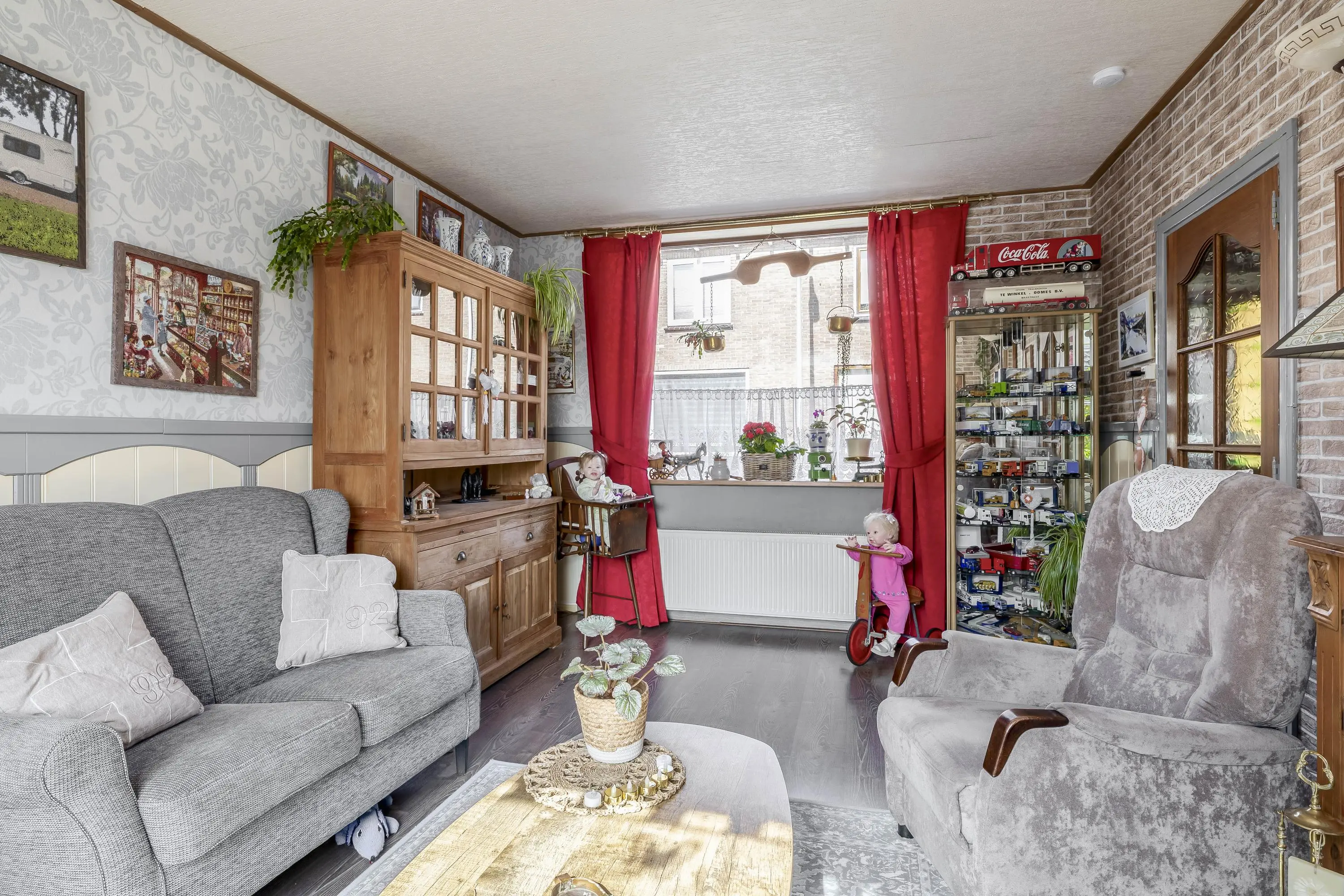 De living heeft een ruime oppervlakte van circa 18m² en biedt voldoende plaats voor een comfortabele zithoek en een aparte eethoek. Dankzij de ramen aan zowel de voor- als achterzijde valt er prettig daglicht naar binnen, waarbij het raam aan de achterzijde is voorzien van een zonnescherm.