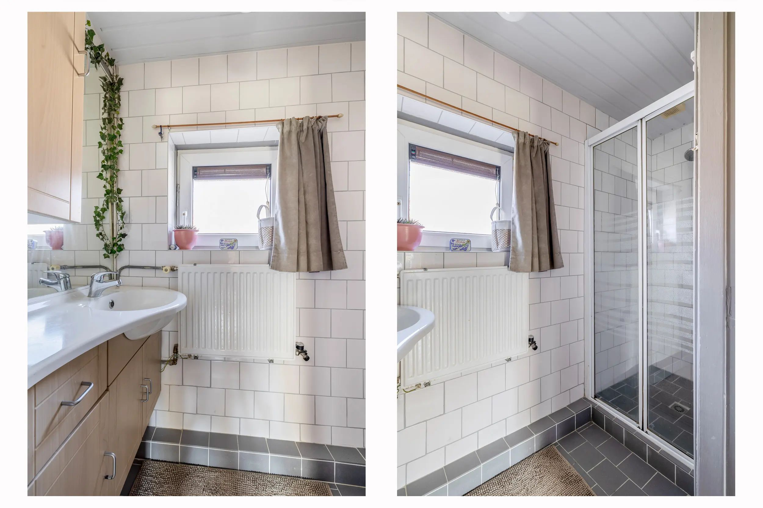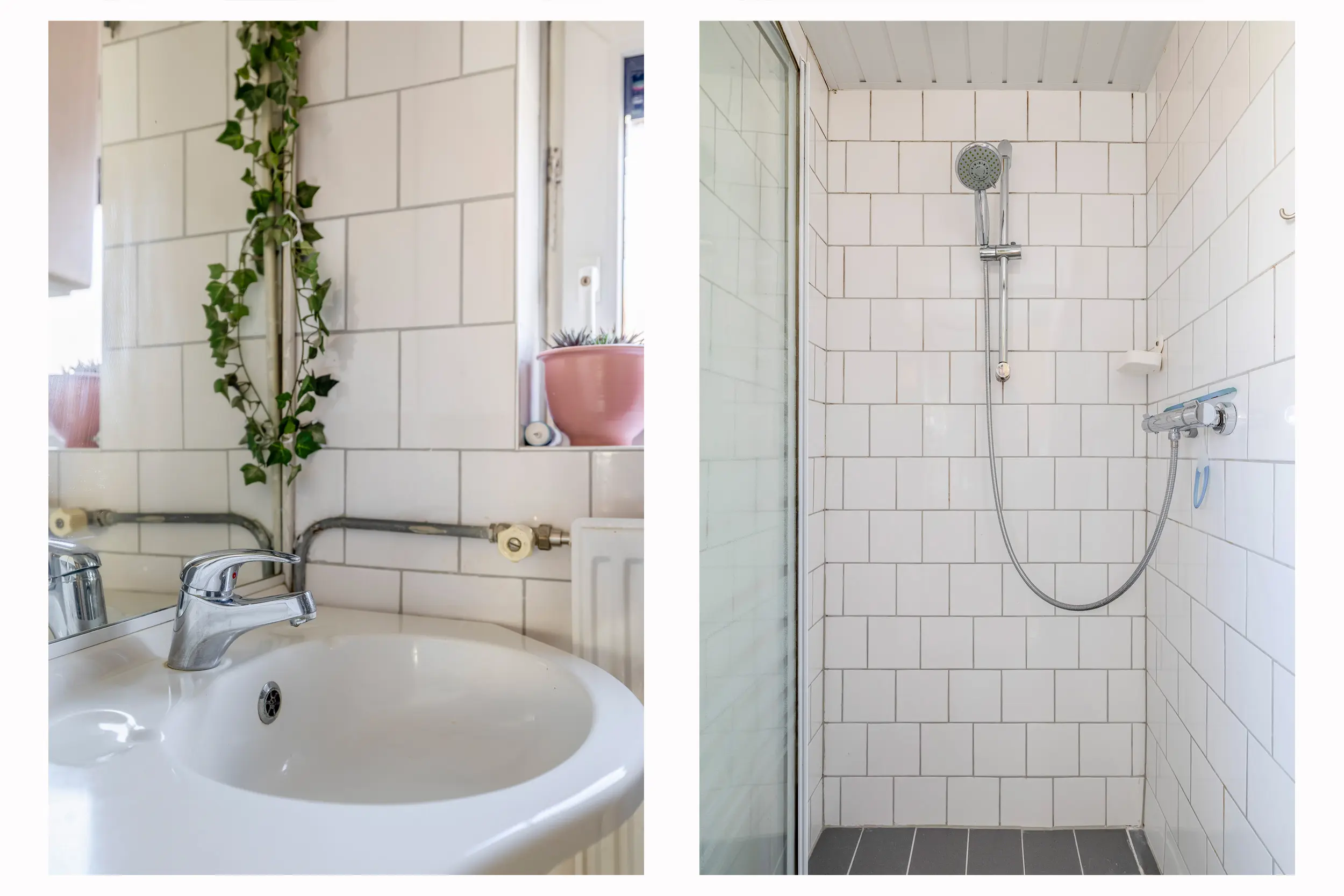 De badkamer is volledig betegeld en in 2020 opgeknapt. De badkamer is uitgerust met een douche en een wastafelmeubel.