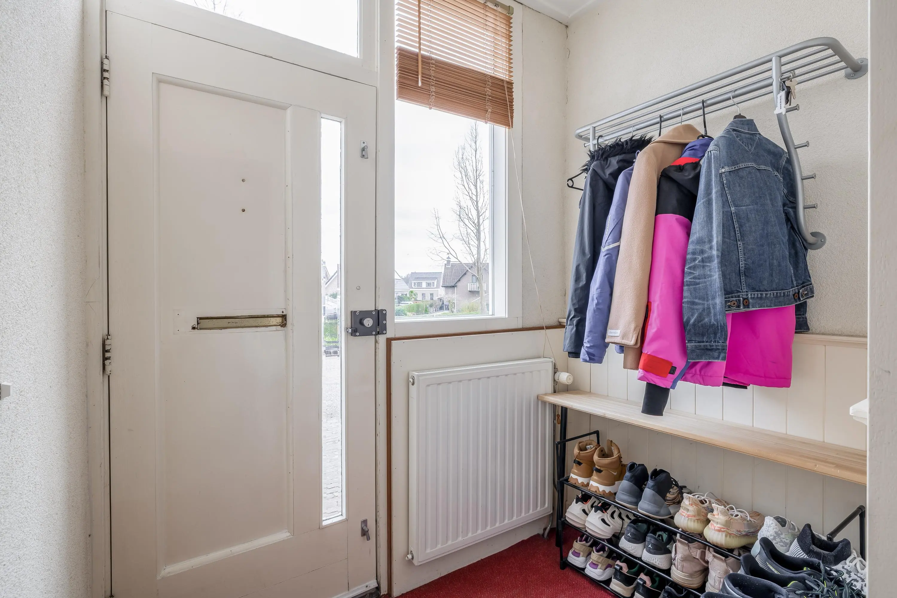 De voortuin is volledig bestraat en biedt de mogelijkheid om de auto direct voor de woning te parkeren.