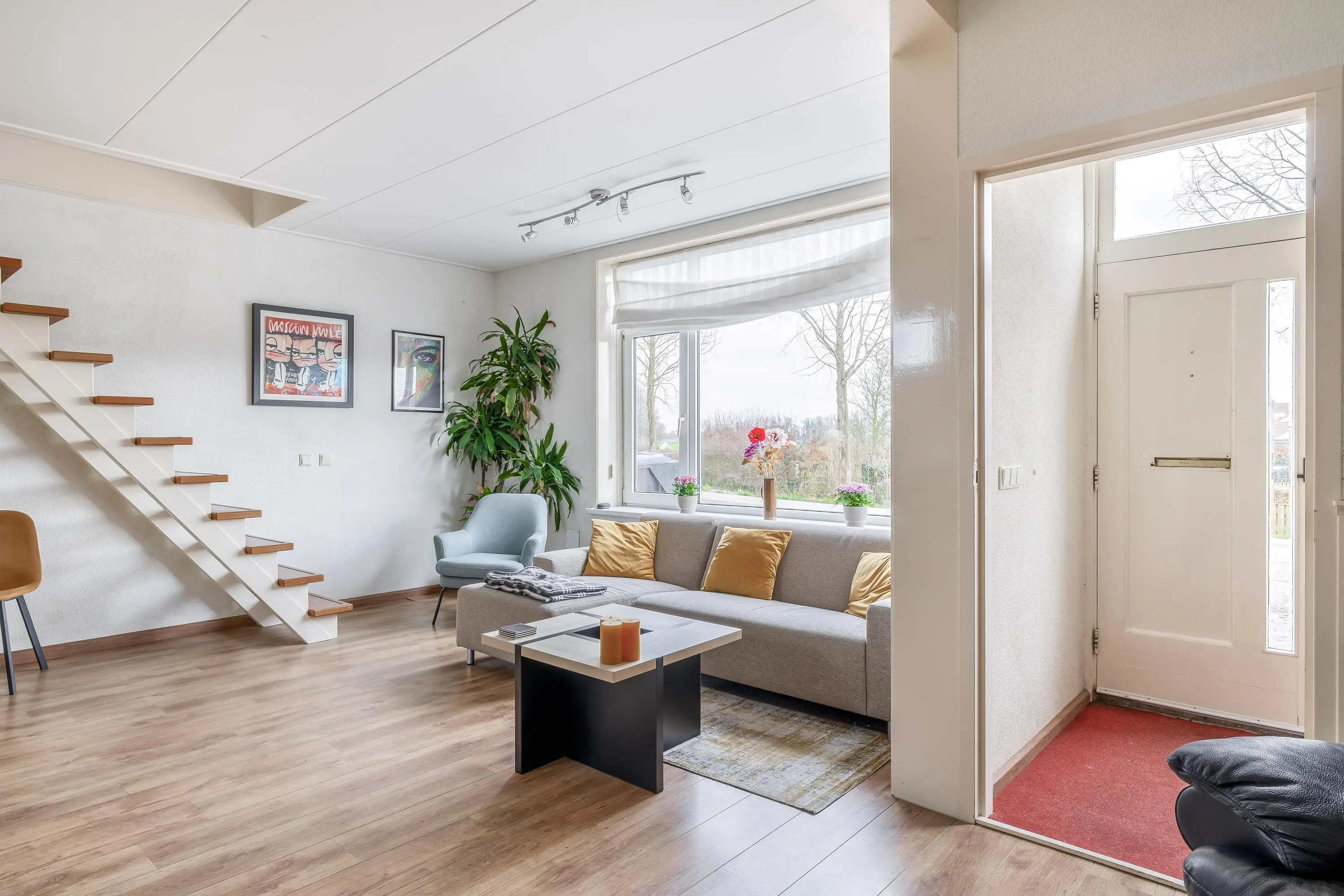 Bij binnenkomst betreedt u de hal, die toegang biedt tot de sfeervolle leefruimte.