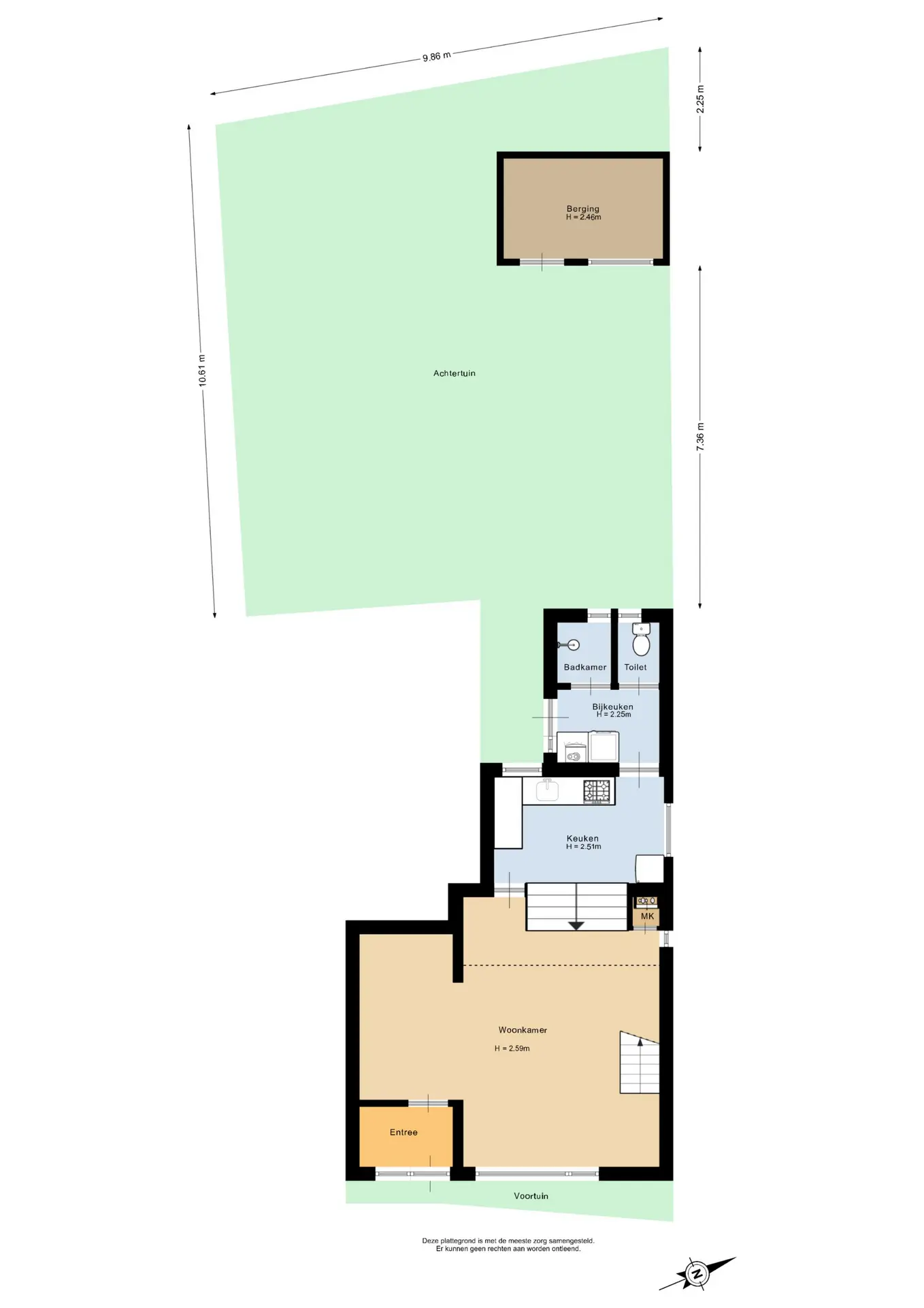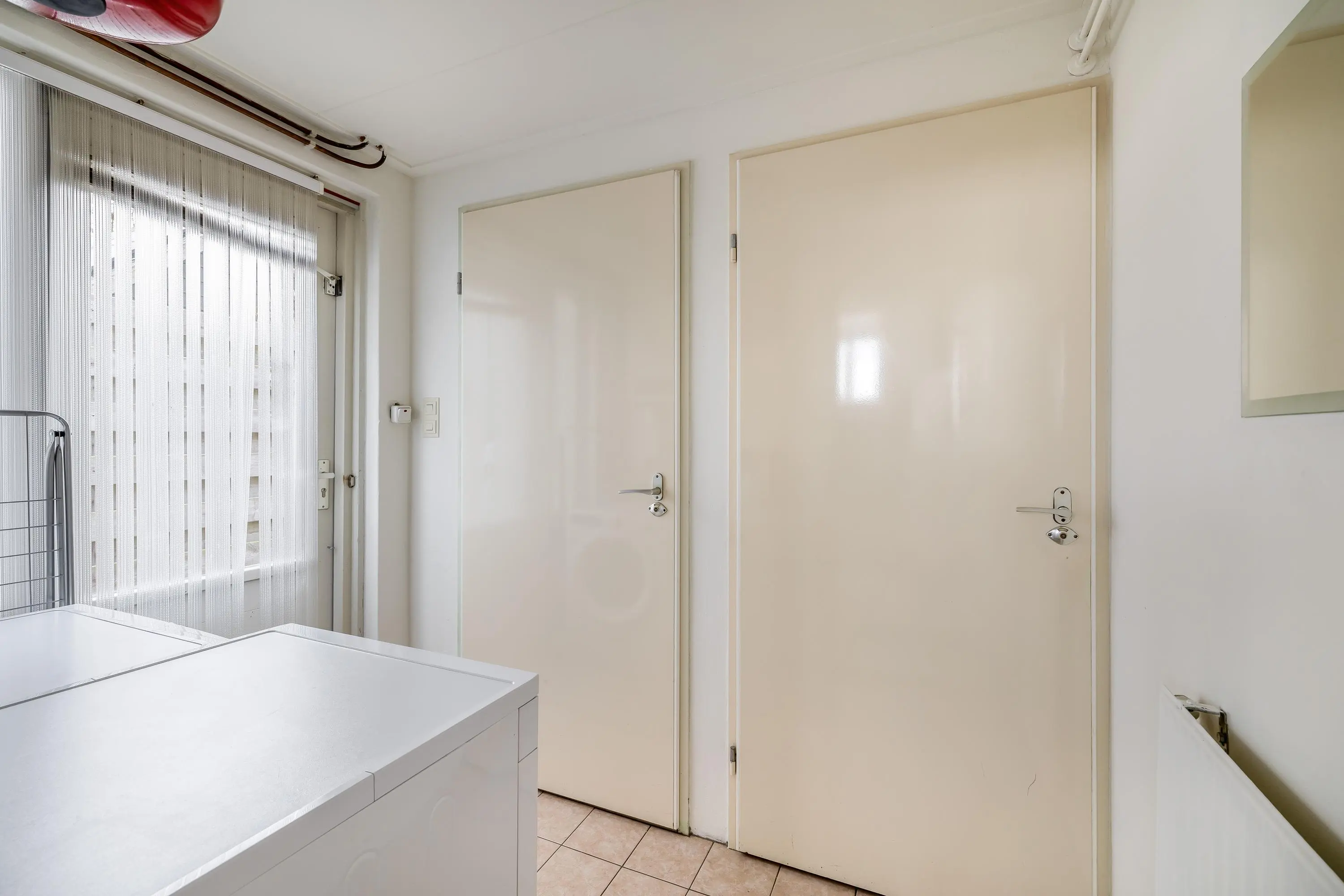 De bijkeuken is uitgerust met aansluitingen voor de wasmachine en vaatwasser. Tevens bevindt zich hier de Cv-installatie. Vanuit de bijkeuken bereikt u het separate toilet en de aparte douche. Via een enkele deur heeft u toegang tot de achtertuin.
