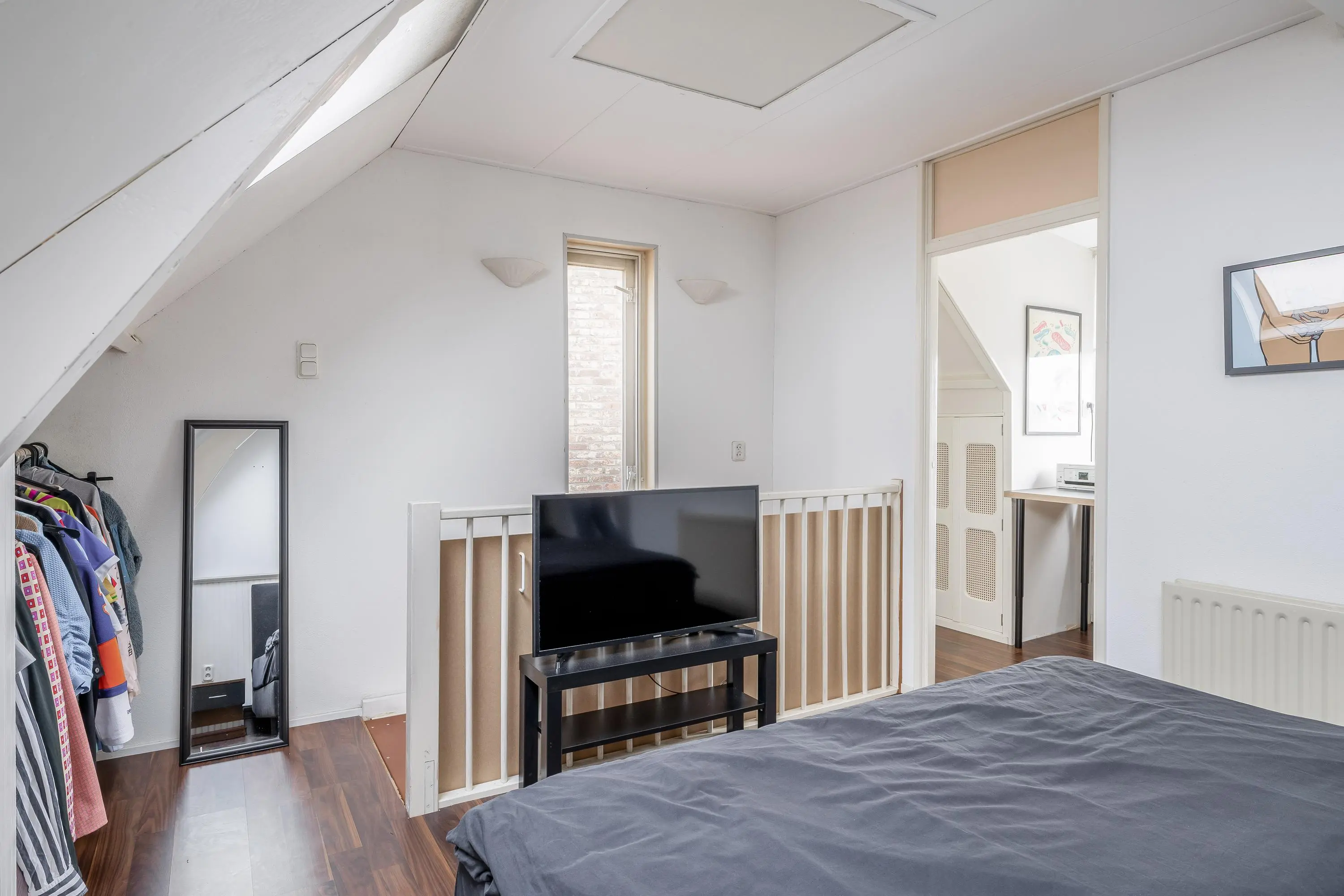 De hoofdslaapkamer is ruim van opzet en geniet van prettig daglicht dankzij twee dakramen. Daarnaast beschikt deze kamer over twee praktische vaste kasten en heeft een oppervlakte van circa 14m². Vanuit de hoofdslaapkamer is er toegang tot de tweede slaapkamer.