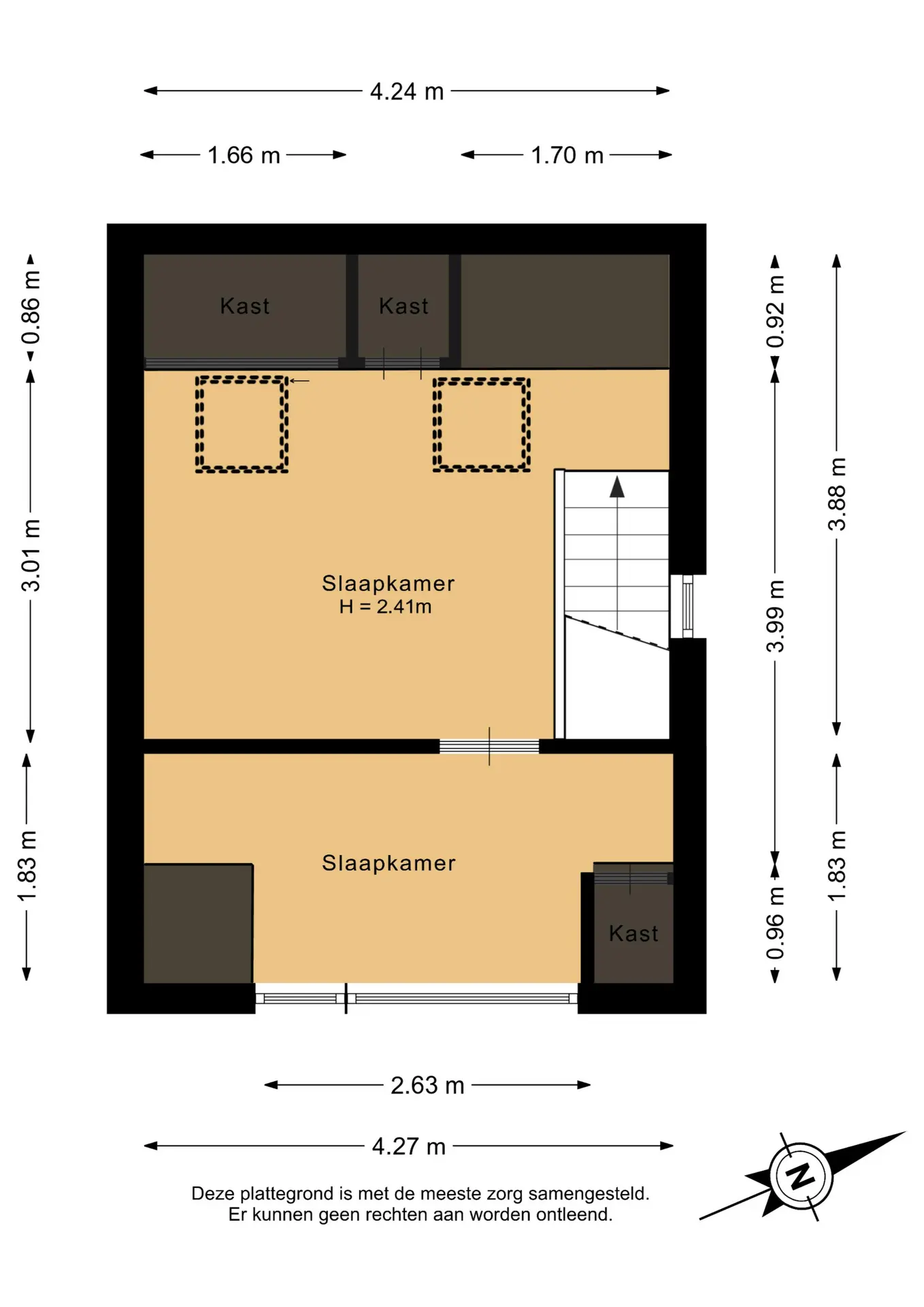 Middels de trapopgang bereikt u de hoofdslaapkamer. De gehele verdieping is voorzien van een laminaatvloer.