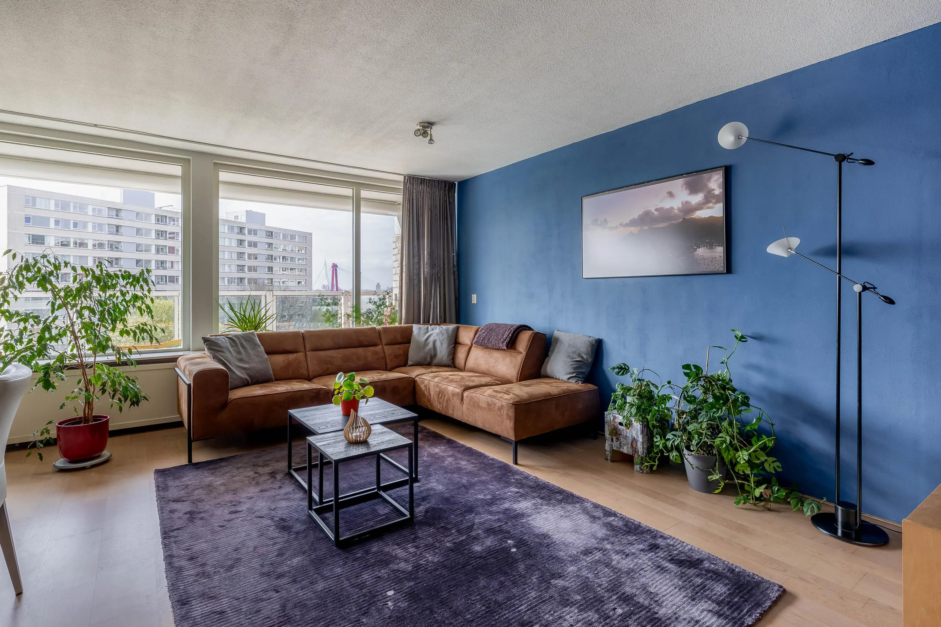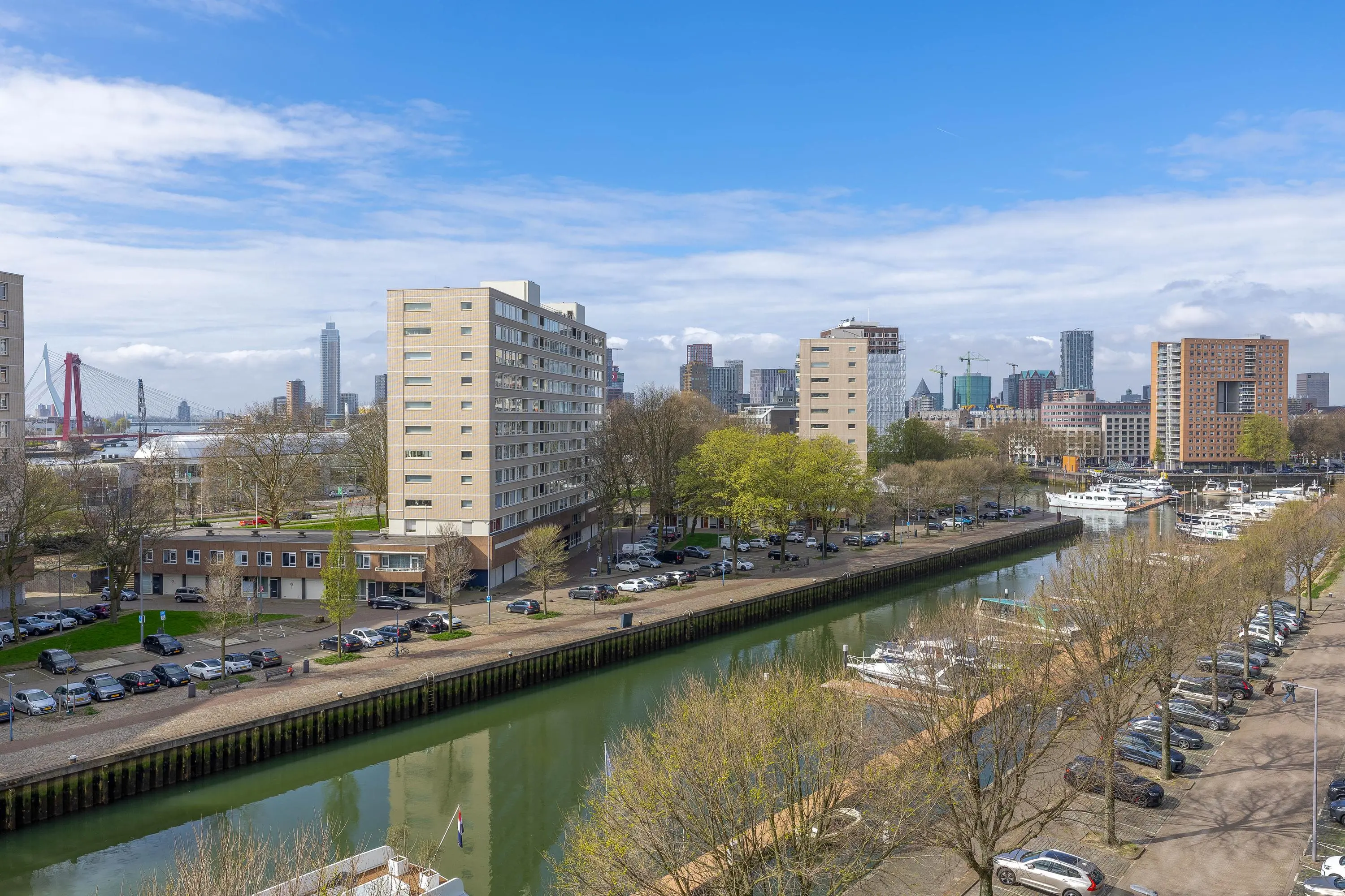 Vanaf de 7e etage kan je iedere dag weer genieten van al het moois wat de stad te bieden heeft. Het uitzicht op Rotterdamse iconen en de schepen die over de rivier de Maas varen, verveelt nooit. Kortom, een geweldig appartement op een toplocatie met een nog mooier uitzicht!