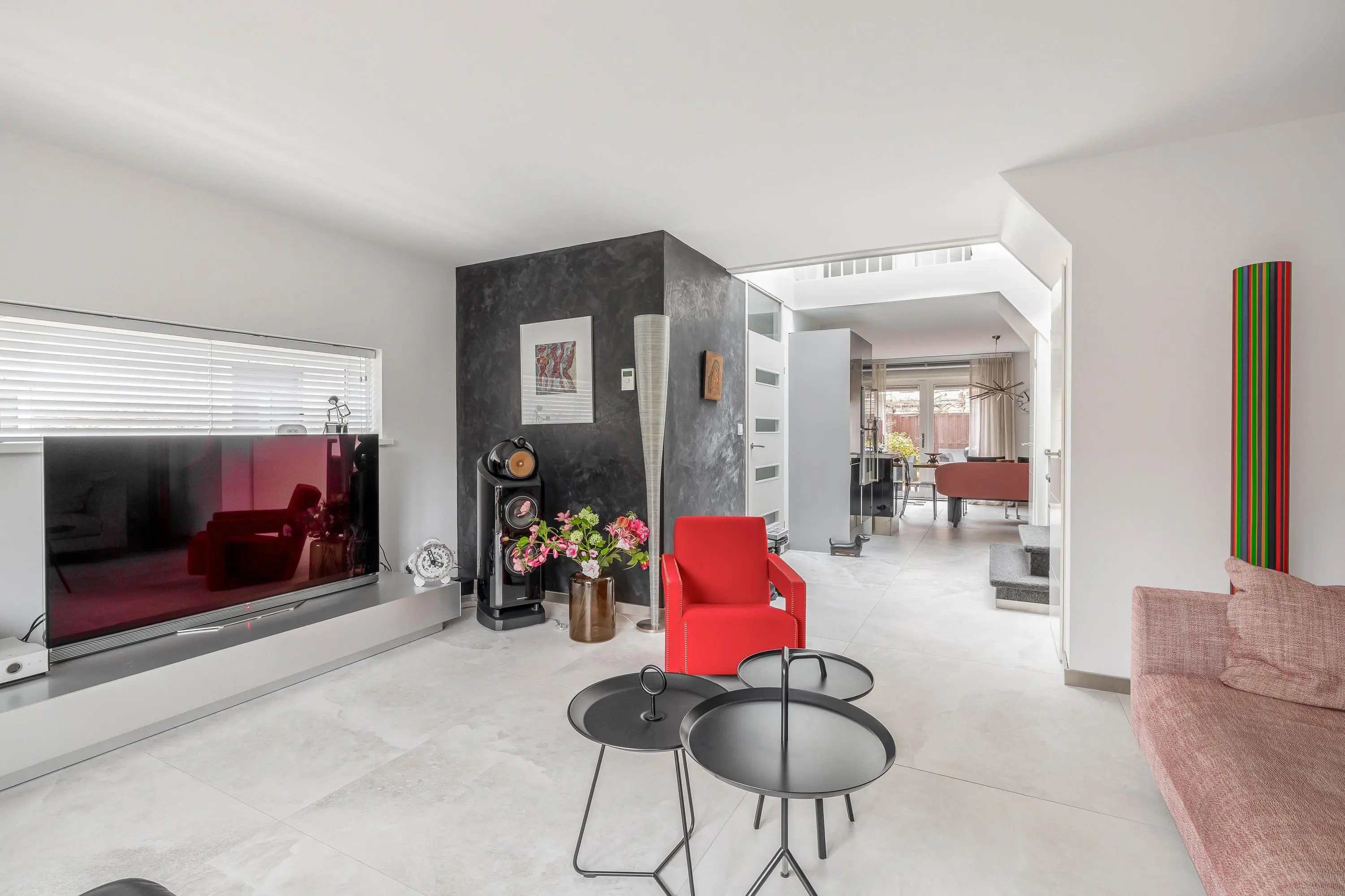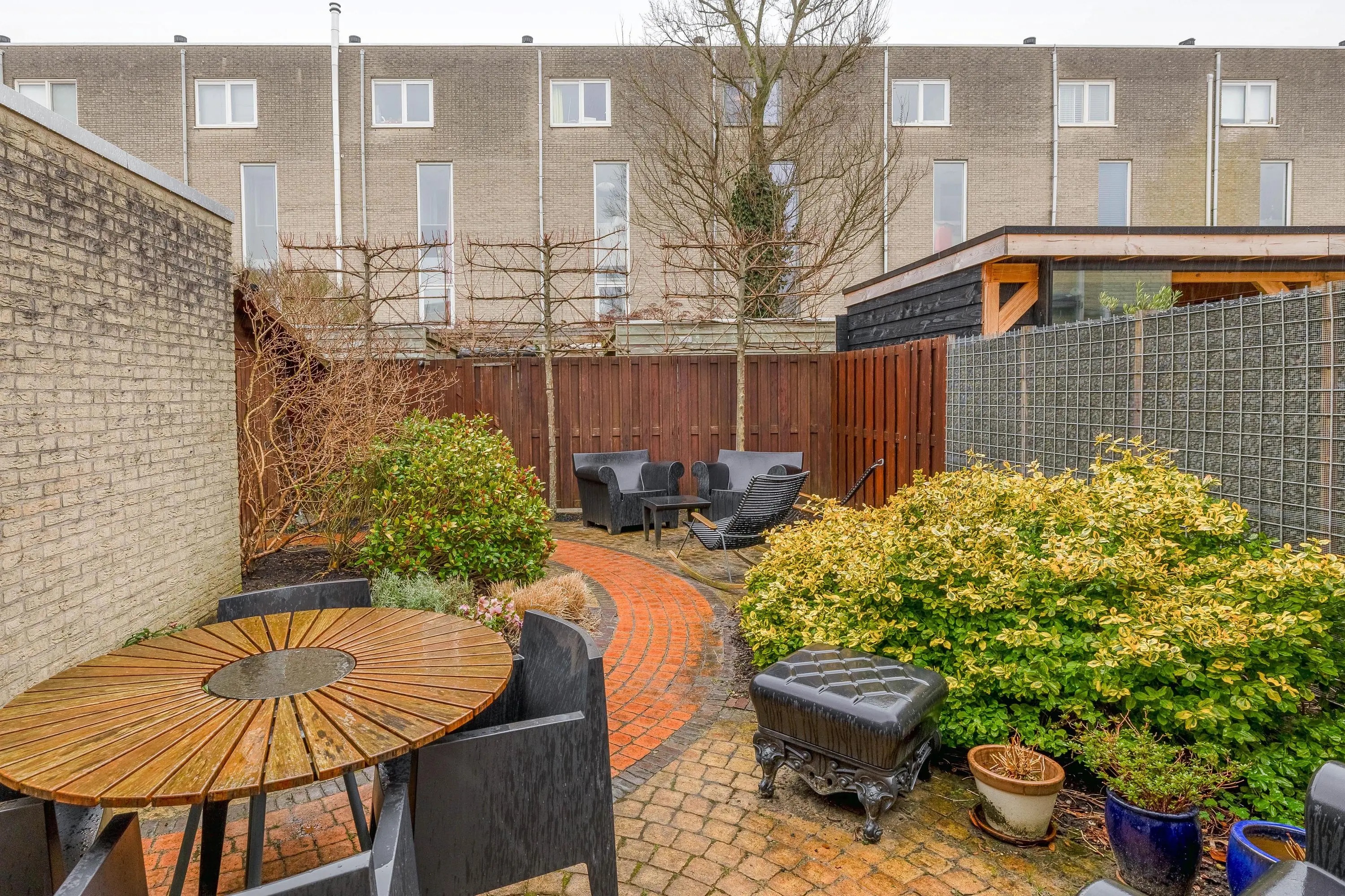 En natuurlijk is deze ruime woning ook voorzien van een groot perceel eigen grond. De voortuin is voorzien van een eigen oprit met een laadpaal. Ook is er groen aanwezig wat zorgt voor veel privacy. De achtertuin is goed verzorgd en biedt door de speelse combinatie van groen en terras veel mogelijkheden om te genieten van de rust in deze omgeving. Door de grote diepte heb je hier vaak al vroeg en tot eind van de middag zon.
