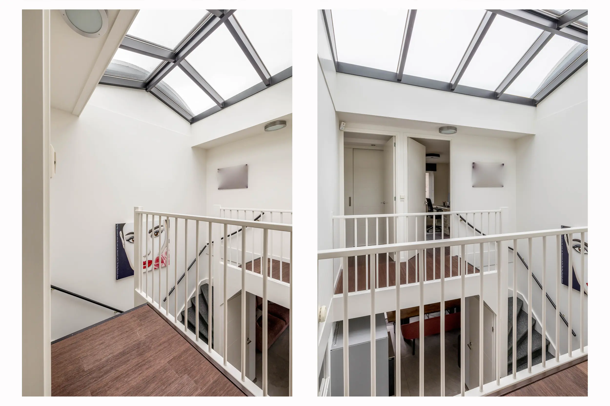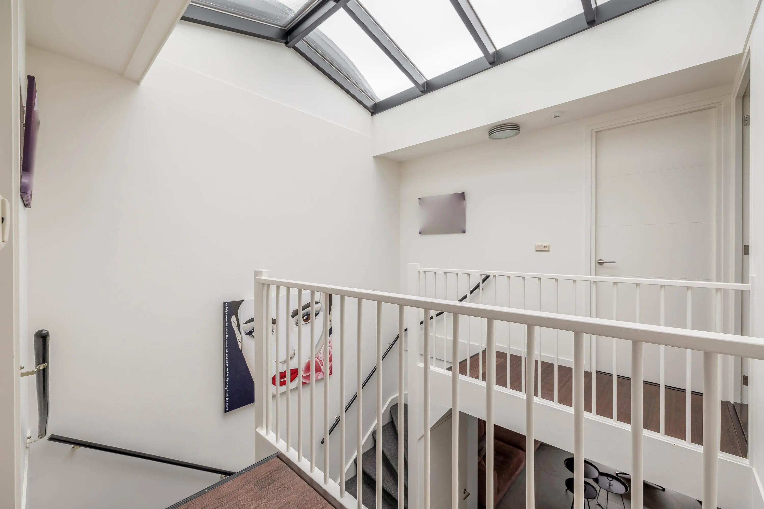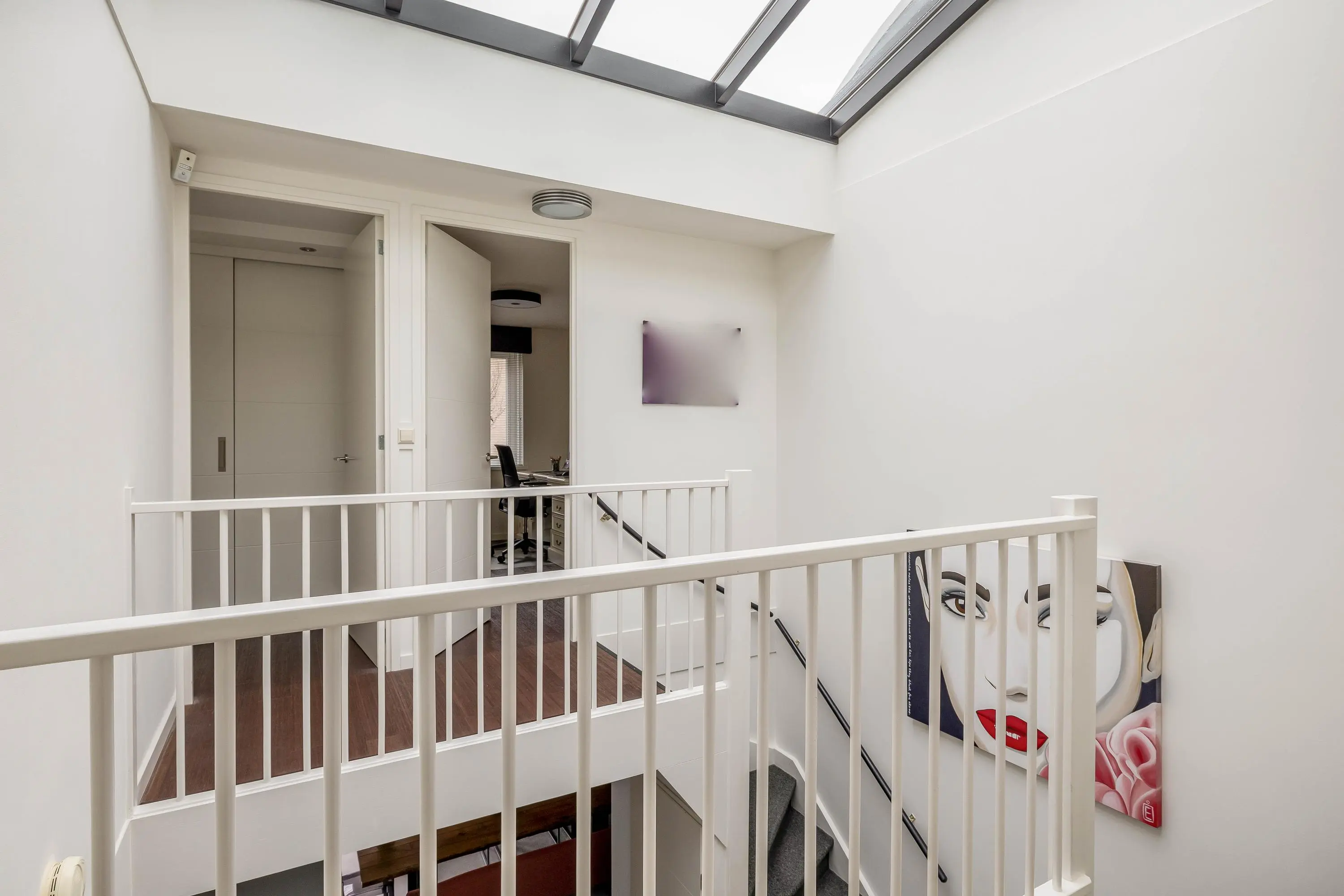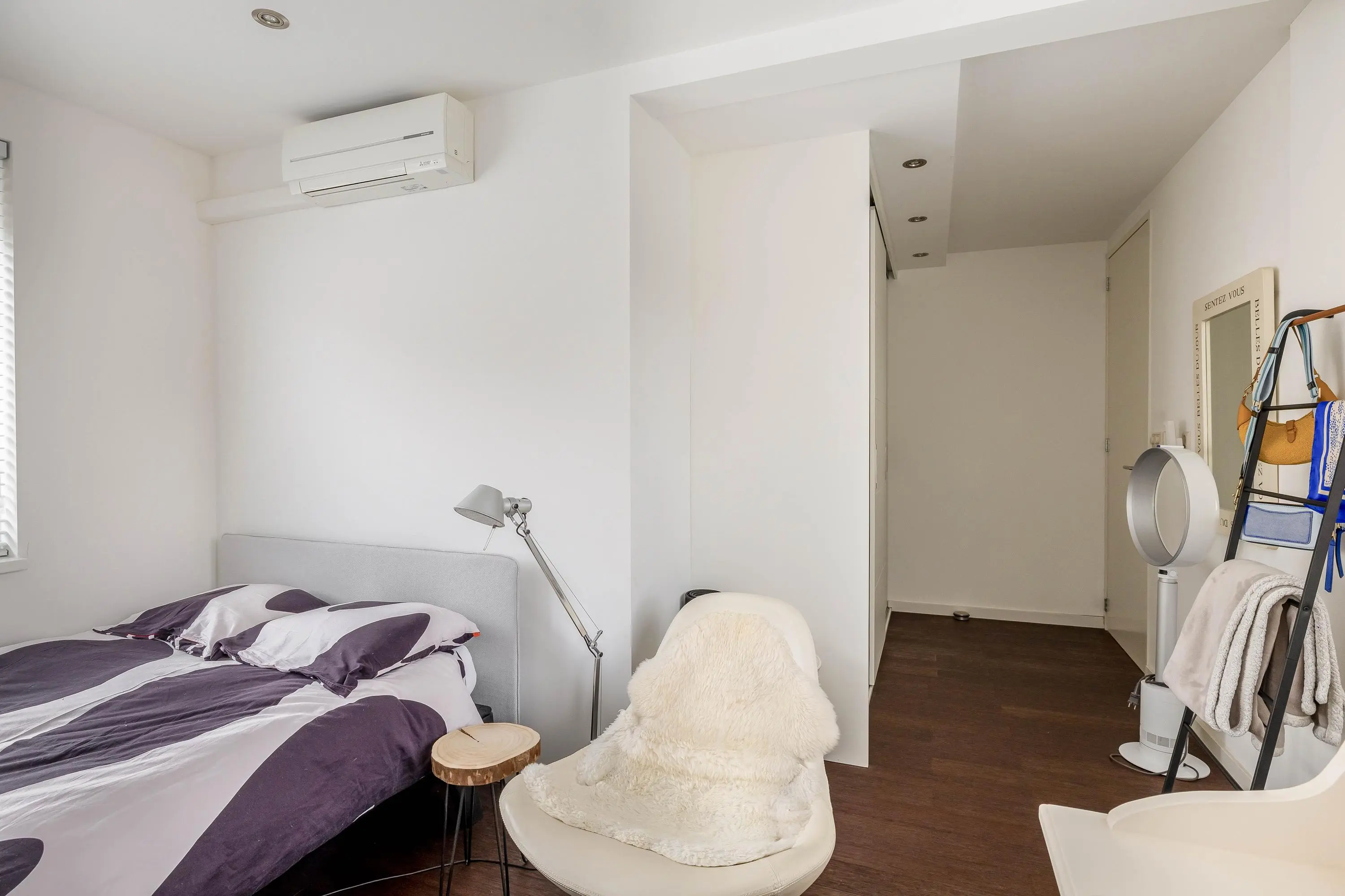 Via de dubbele trap arriveer je op de slaapverdieping. Aan de voorzijde bevindt zich de grootste slaapkamer. De andere 2 kamers bevinden zich aan de achterzijde en zijn na een verbouwing in 2017 flink gegroeid qua formaat. Ook in deze kamers zorgen de raampartijen voor de perfecte hoeveelheid natuurlijk lichtinval. In het midden is de badkamer aanwezig. Deze is strak afgewerkt en heeft als sanitaire voorzieningen een dubbele wastafel met meubel, toilet, royale inloopdouche en vloerverwarming. In de slaapkamers aan de voor- en achterzijde zijn airco's aanwezig, wel zo lekker op warme zomerdagen.