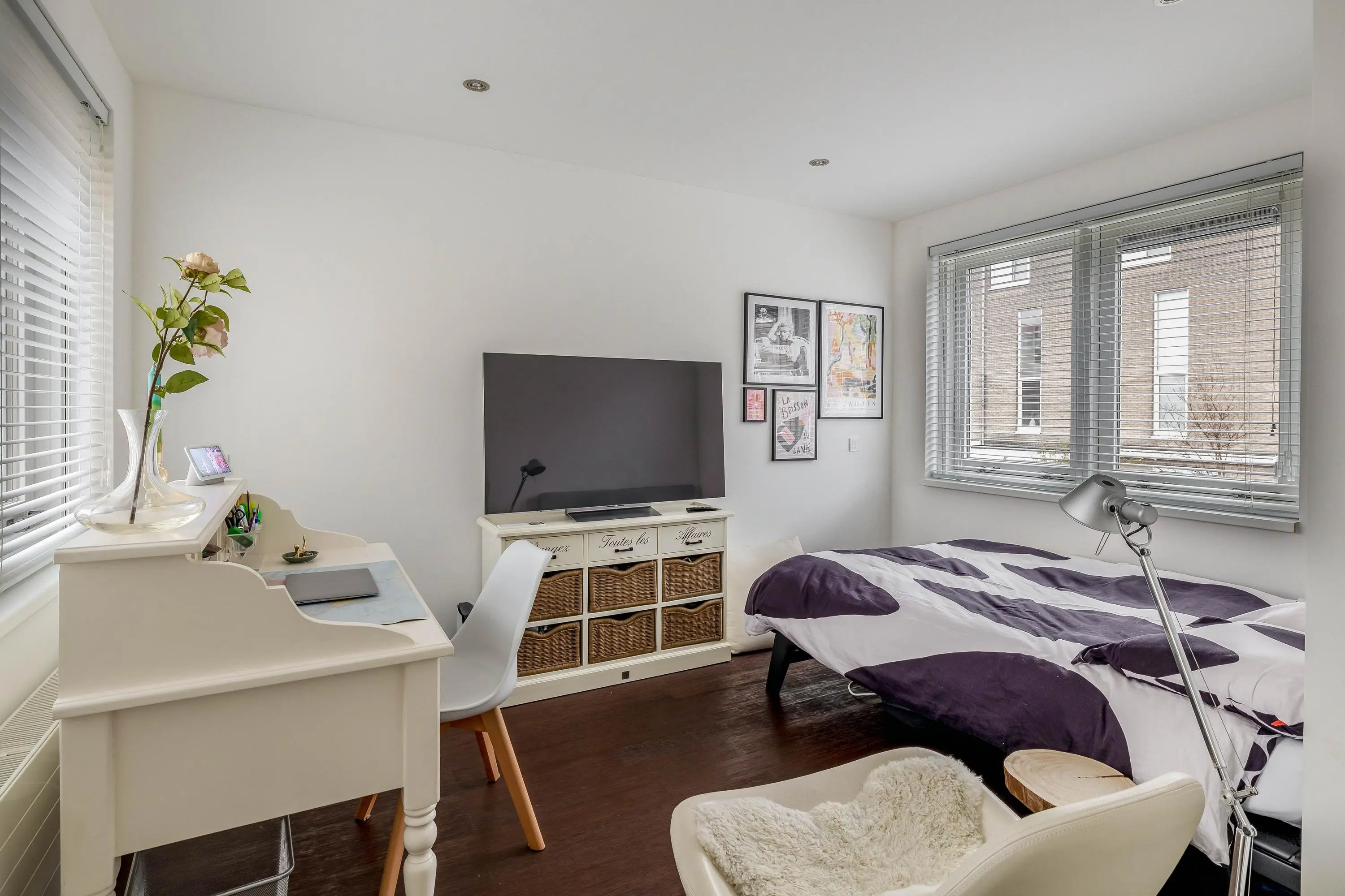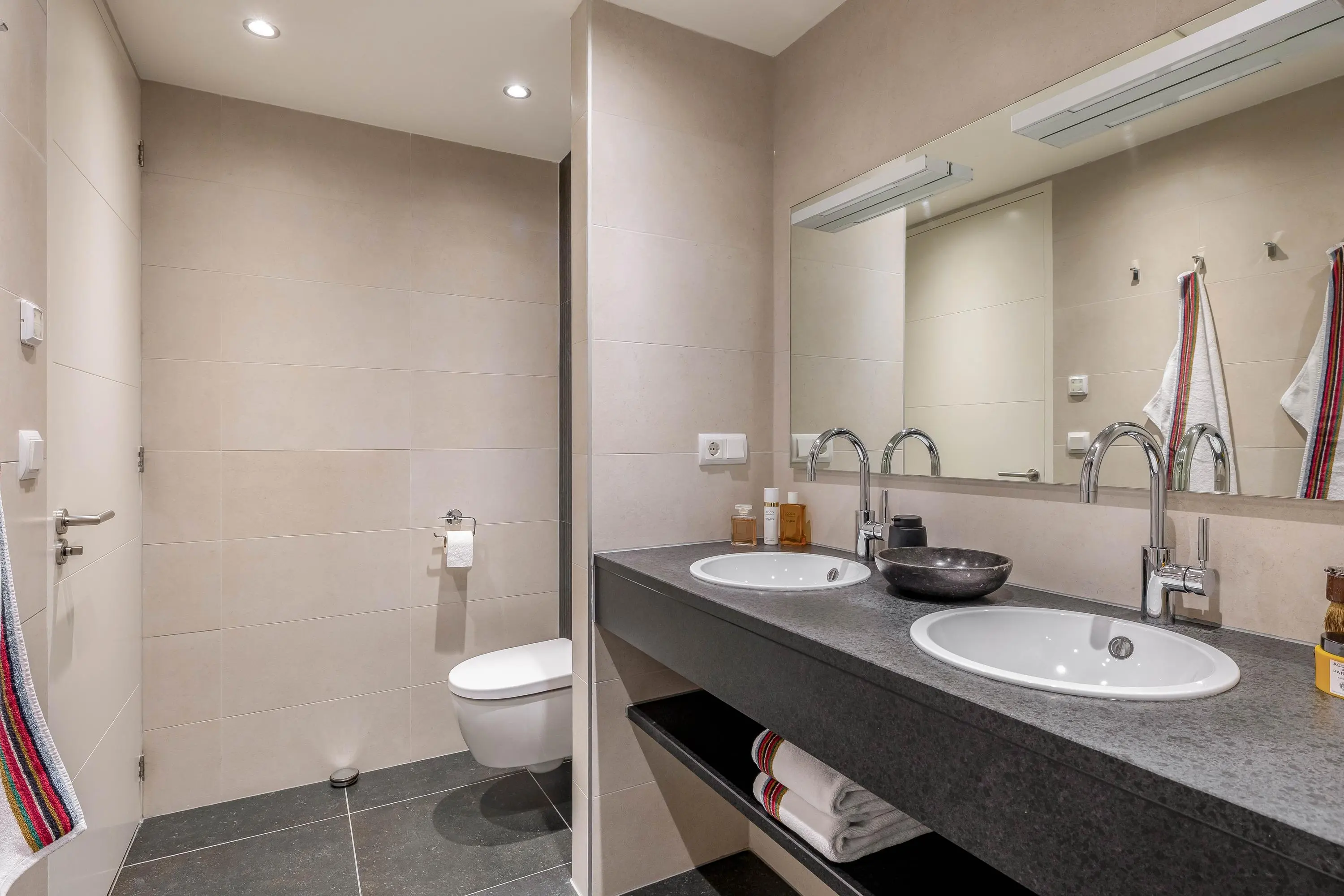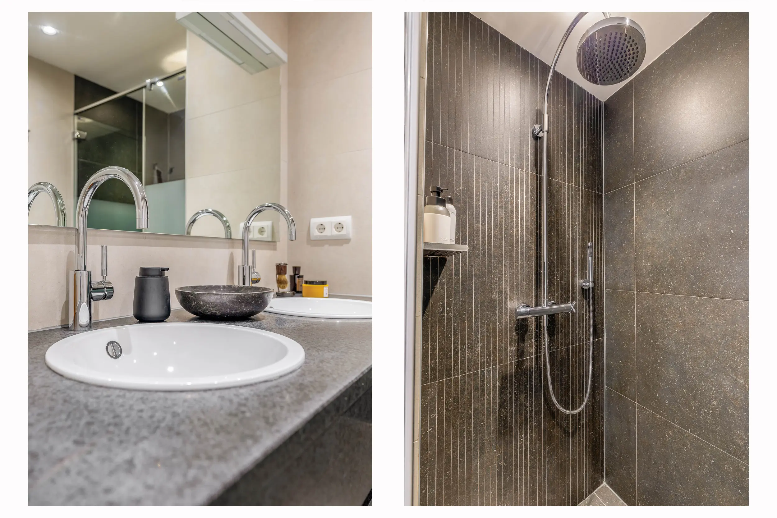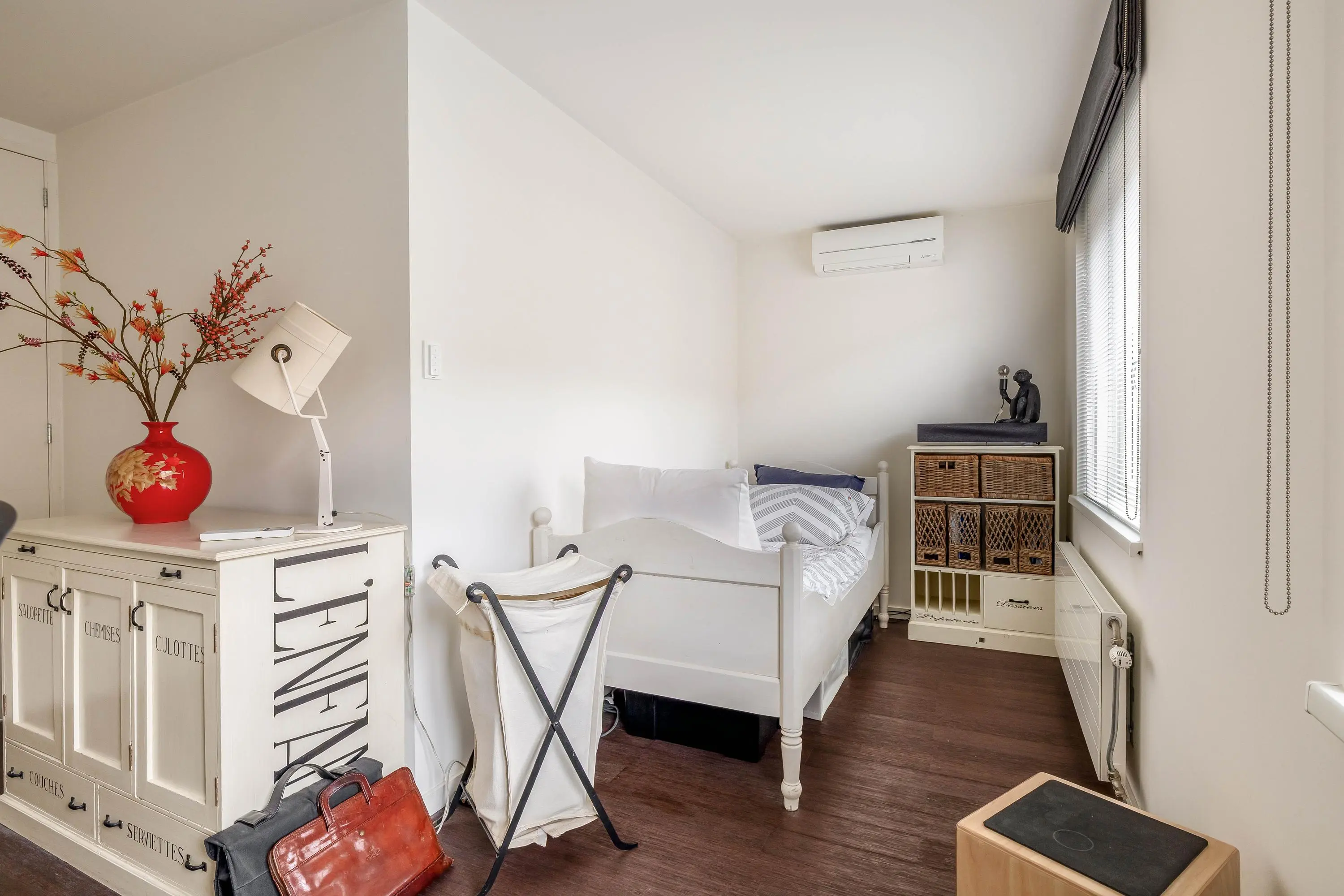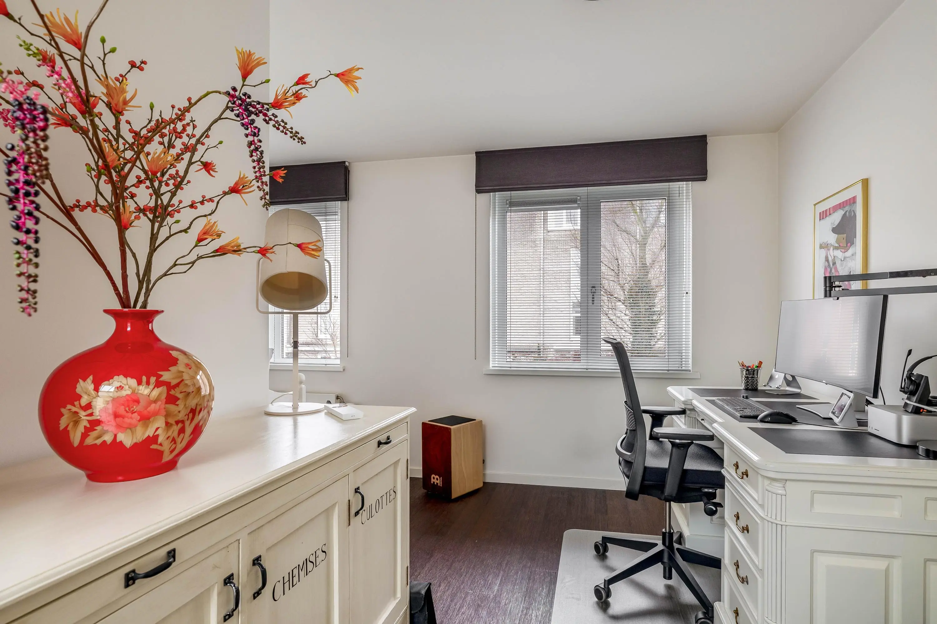 Via de dubbele trap arriveer je op de slaapverdieping. Aan de voorzijde bevindt zich de grootste slaapkamer. De andere 2 kamers bevinden zich aan de achterzijde en zijn na een verbouwing in 2017 flink gegroeid qua formaat. Ook in deze kamers zorgen de raampartijen voor de perfecte hoeveelheid natuurlijk lichtinval. In het midden is de badkamer aanwezig. Deze is strak afgewerkt en heeft als sanitaire voorzieningen een dubbele wastafel met meubel, toilet, royale inloopdouche en vloerverwarming. In de slaapkamers aan de voor- en achterzijde zijn airco's aanwezig, wel zo lekker op warme zomerdagen.