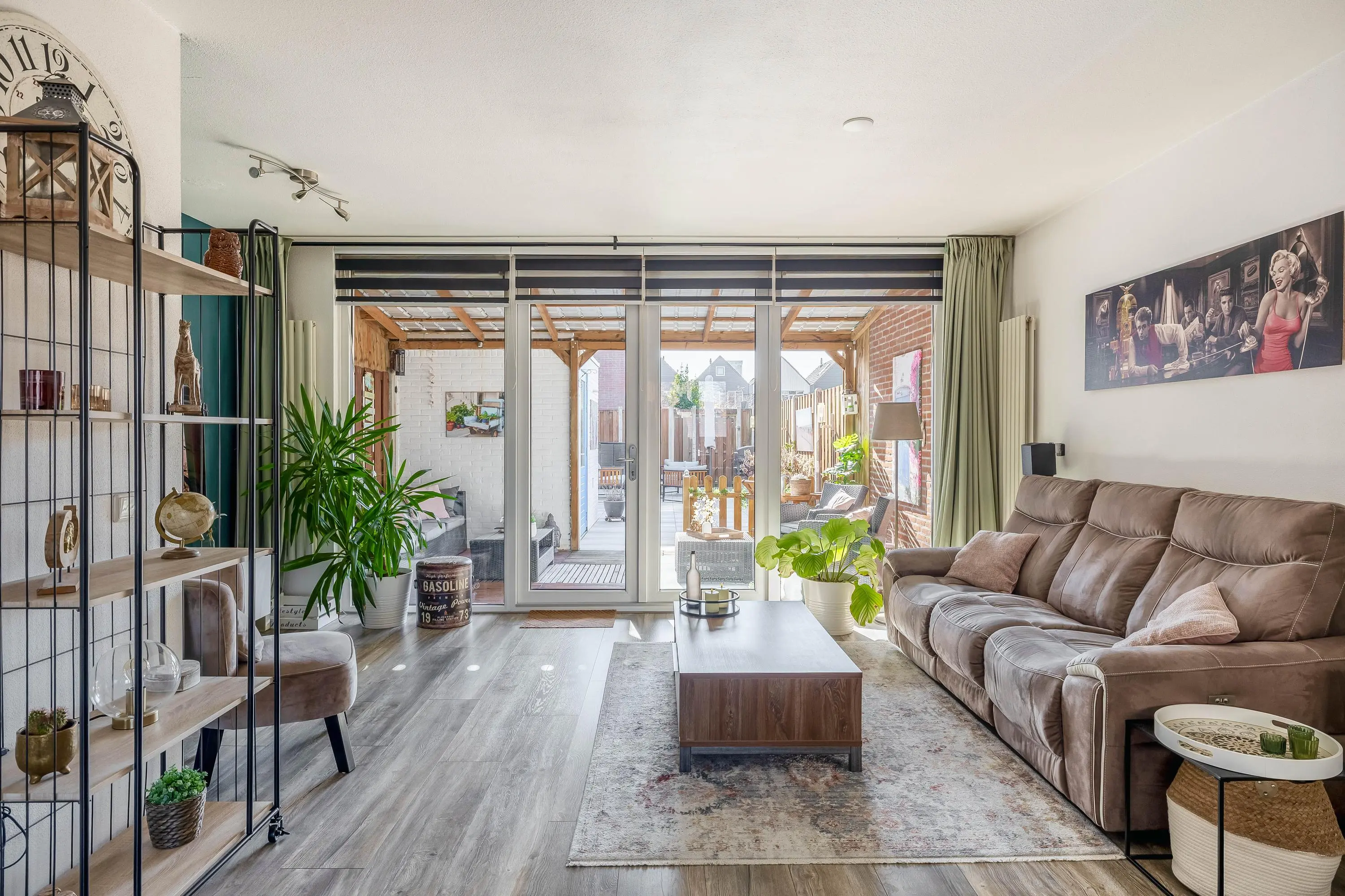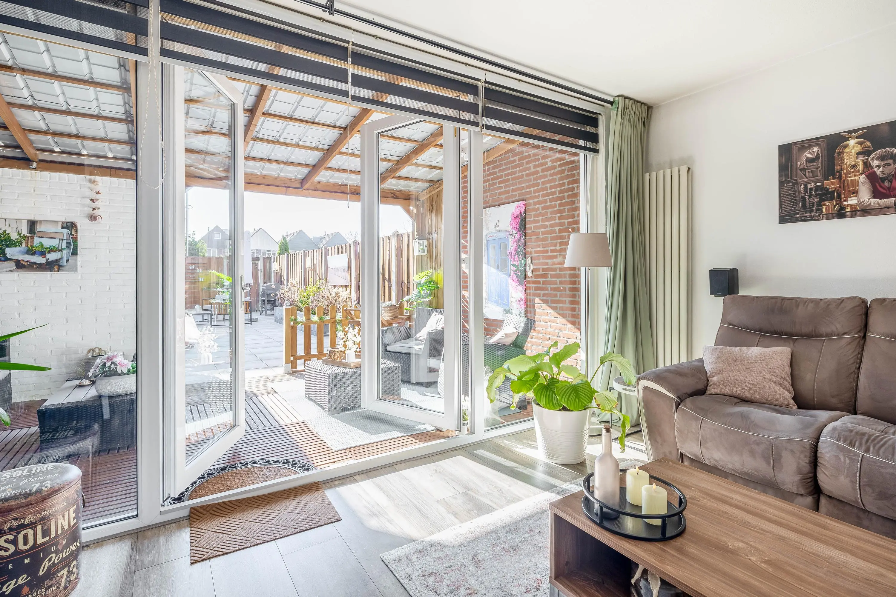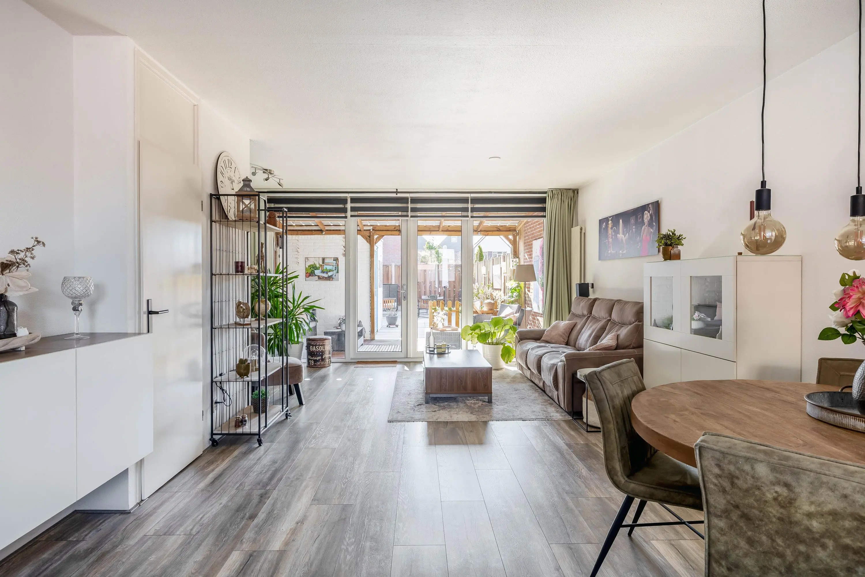 Bij binnenkomst in de leefruimte vallen direct de keurige laminaatvloer en de prettige lichtinval op. De woonkamer heeft een ruime opzet, waardoor er eenvoudig een gezellige zit- en eethoek gecreëerd kan worden. Vanuit de woonkamer geven openslaande deuren toegang tot de zonnige achtertuin, waardoor binnen en buiten mooi in elkaar overlopen. In de woonkamer bevindt zich tevens een praktische trapkast, evenals de toegang tot het separate toilet met fonteintje.