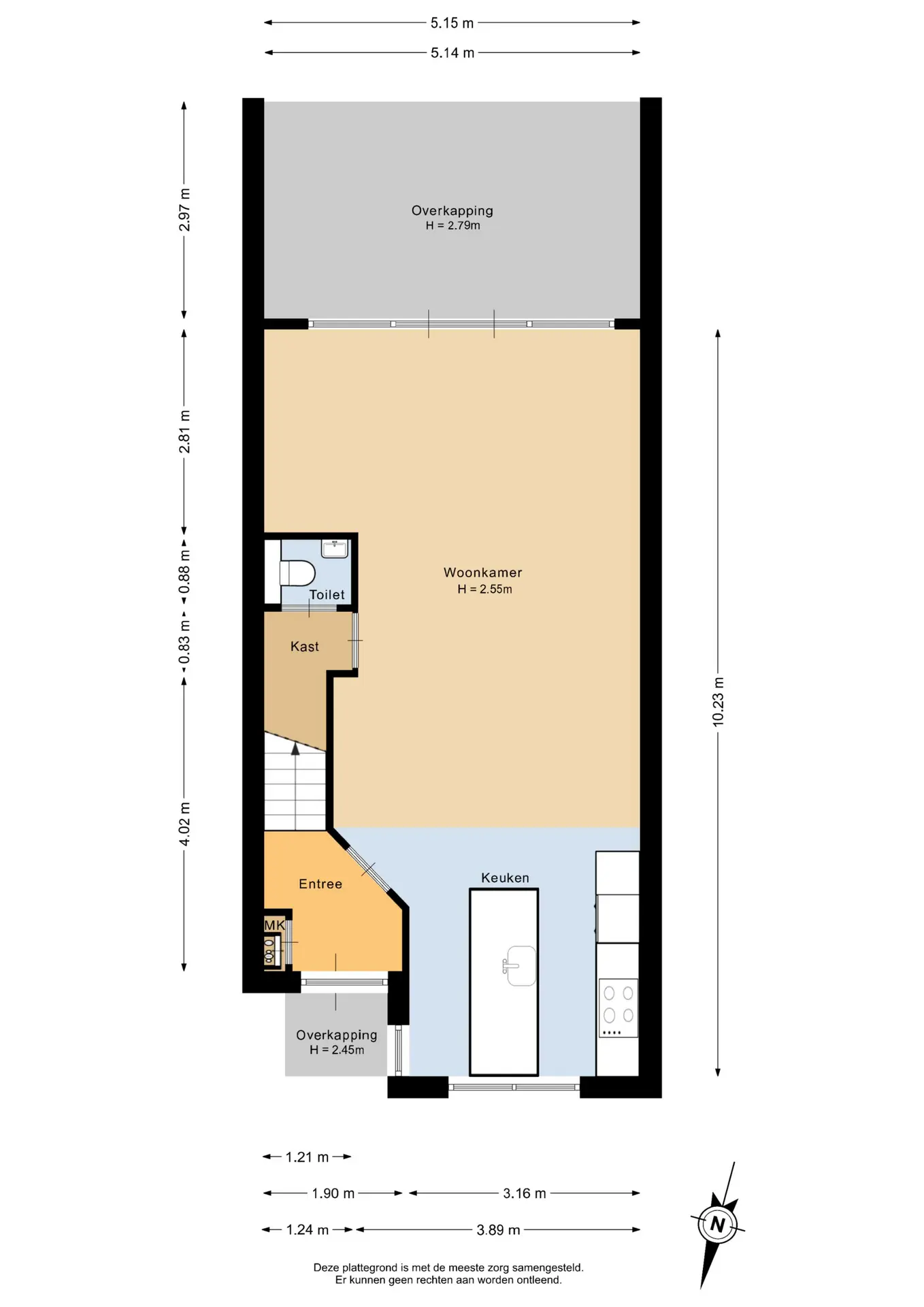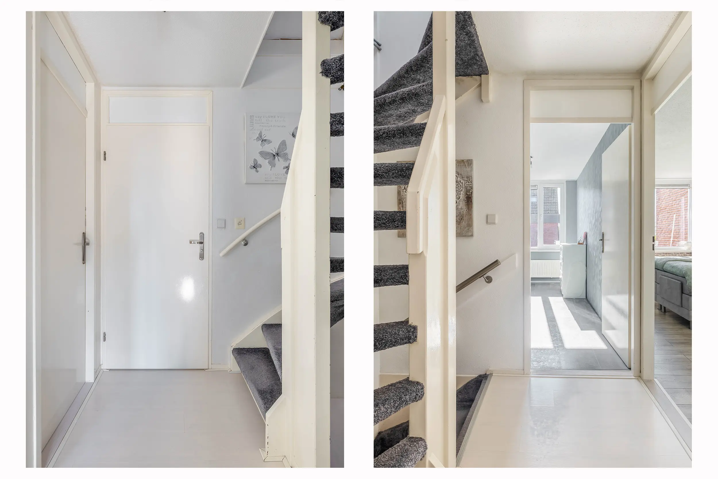 In de entree/hal bevinden zich de meterkast en de trapopgang naar de eerste verdieping.