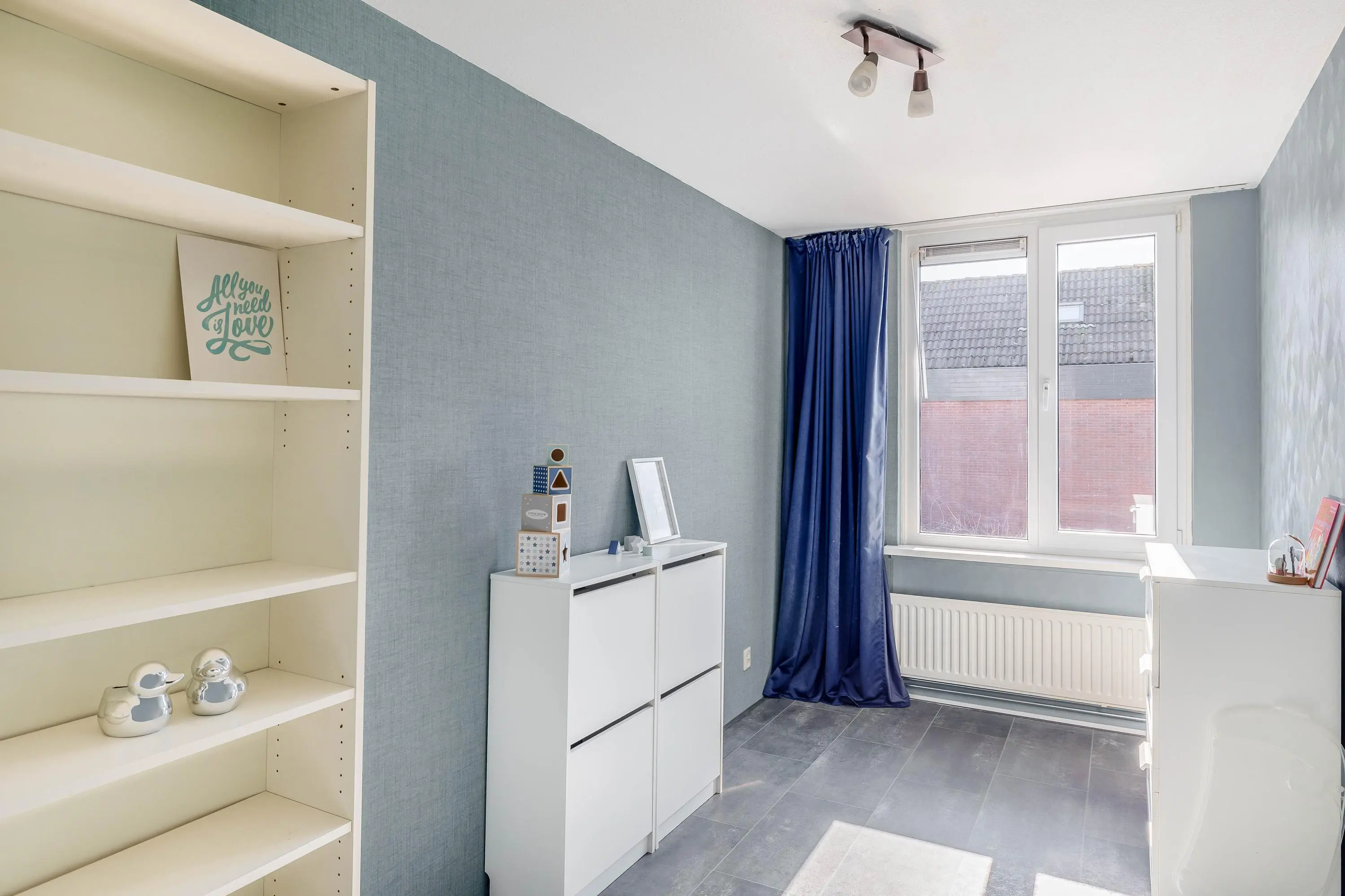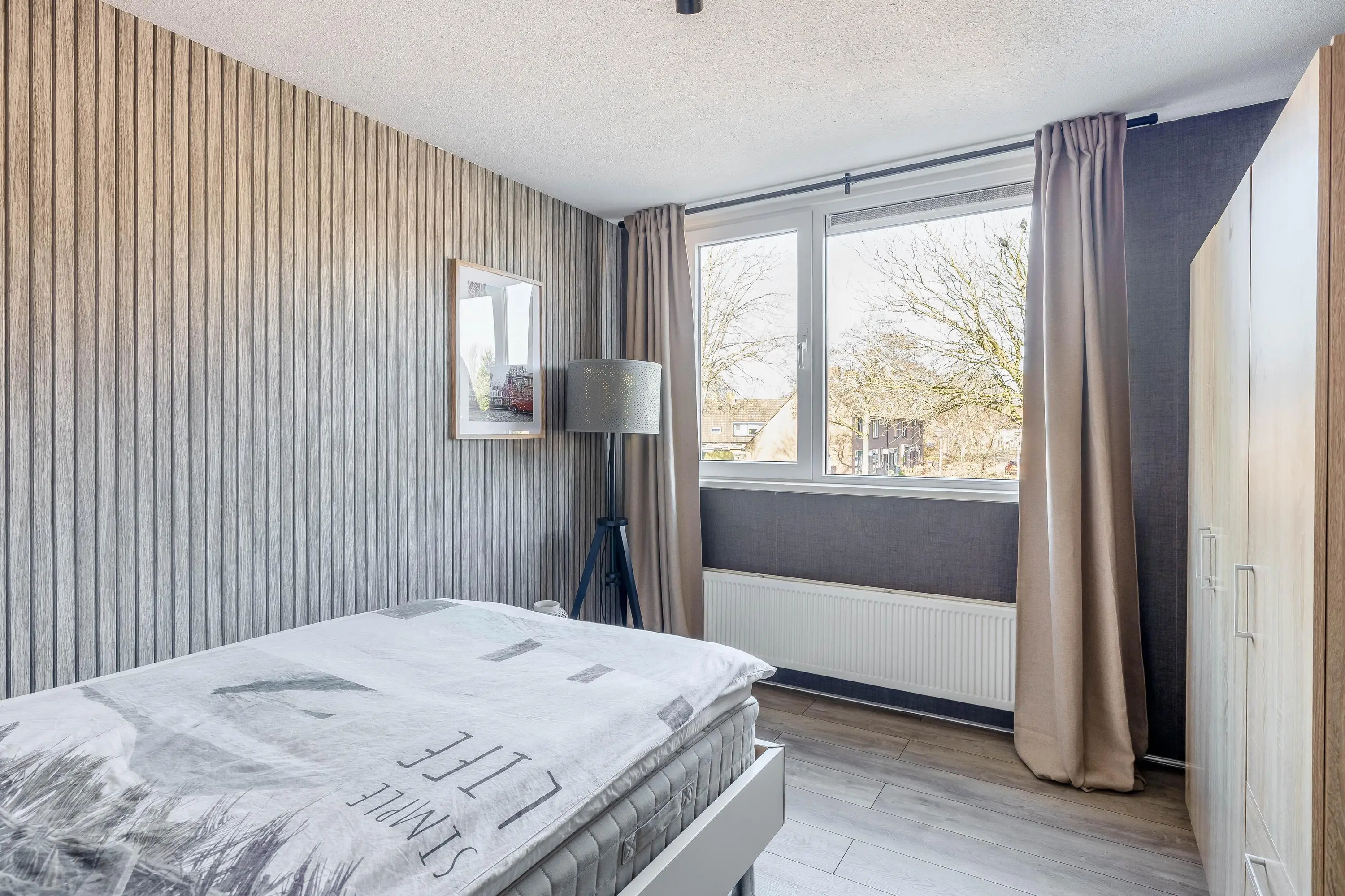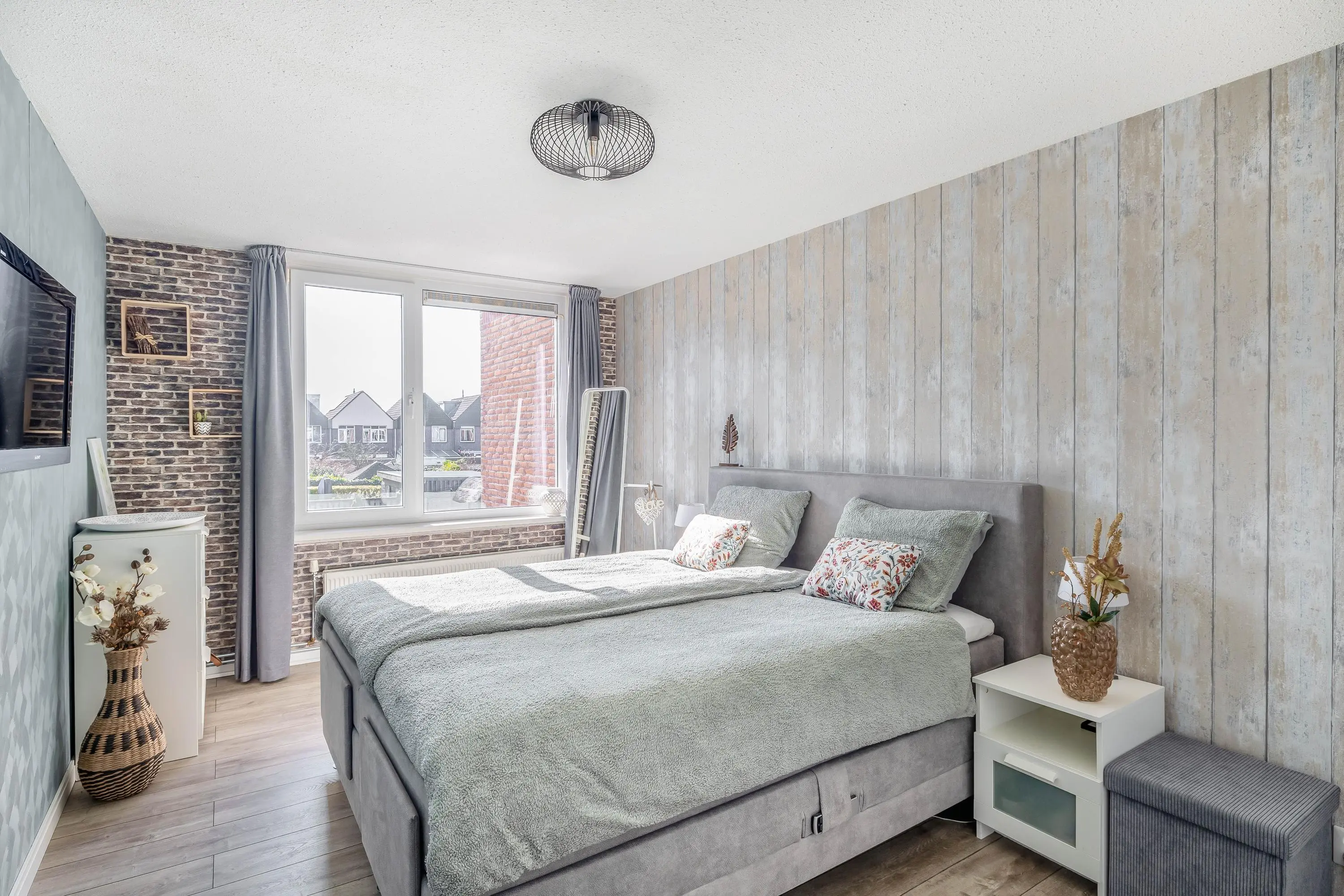 De slaapkamer is afgewerkt met dezelfde laminaatvloer als de overloop, wat zorgt voor een uniforme uitstraling. Met een oppervlakte van circa 12m² is dit een fijne ruimte. De kamer is verder afgewerkt met behangwanden en voorzien van een dakraam.