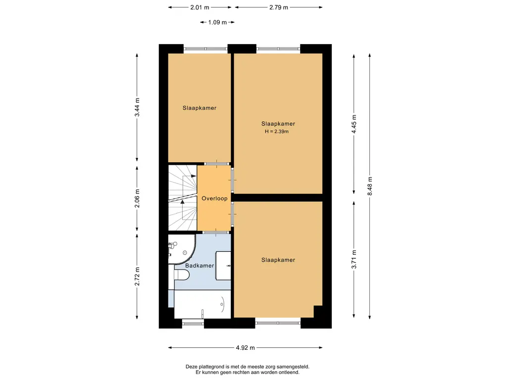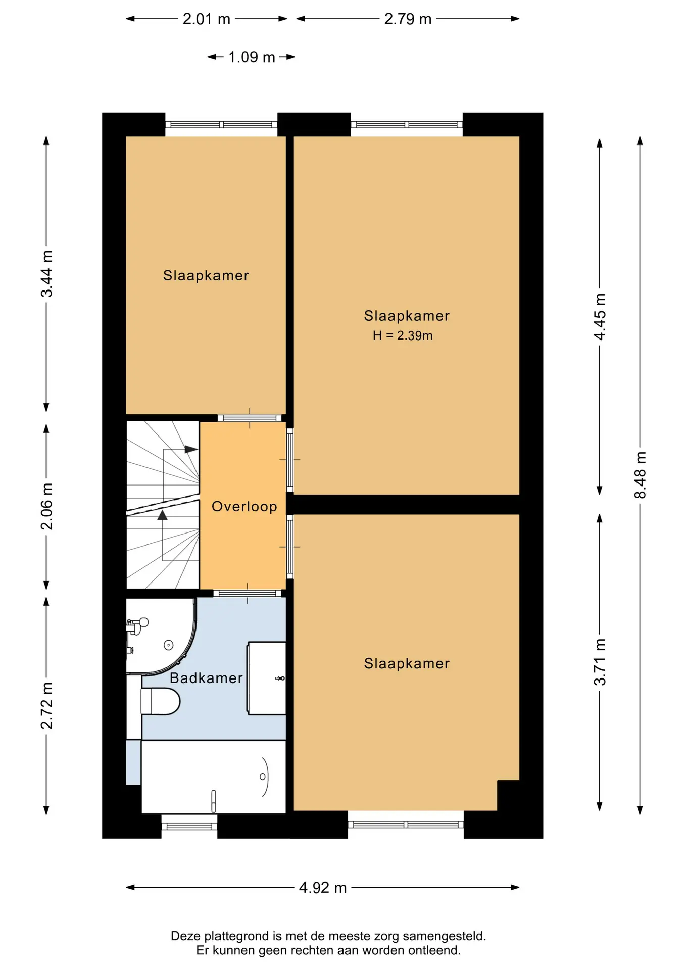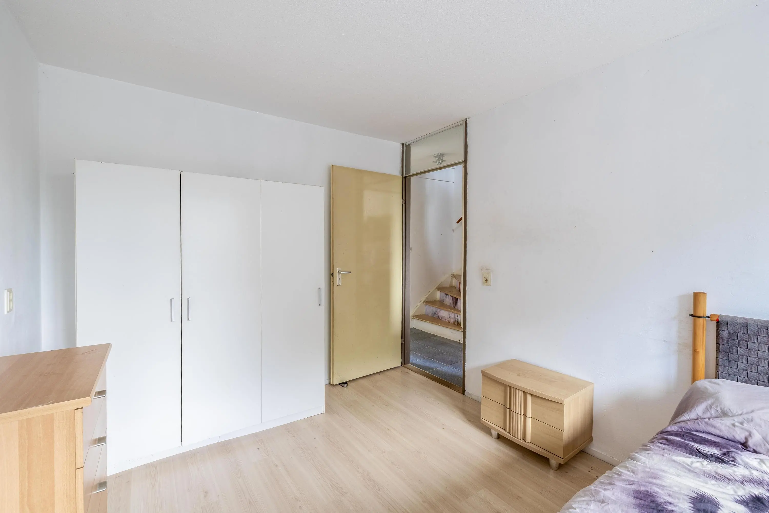 De woning beschikt over drie slaapkamers, die allemaal zijn afgewerkt met een nette laminaatvloer. De grootste slaapkamer, met een oppervlakte van circa 12,5m², is gelegen aan de achterzijde van de woning. Aan de voorzijde bevindt zich de tweede slaapkamer, die ongeveer 10,5m² meet. De derde slaapkamer ligt naast de grootste kamer aan de achterzijde en heeft een oppervlakte van circa 7m².