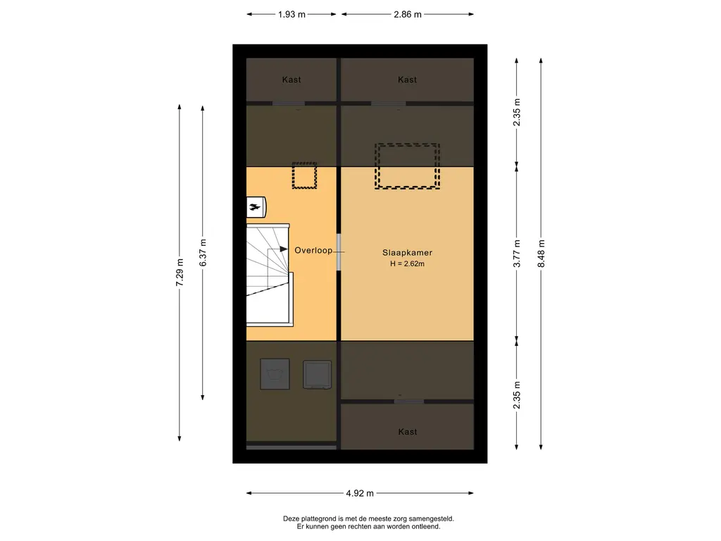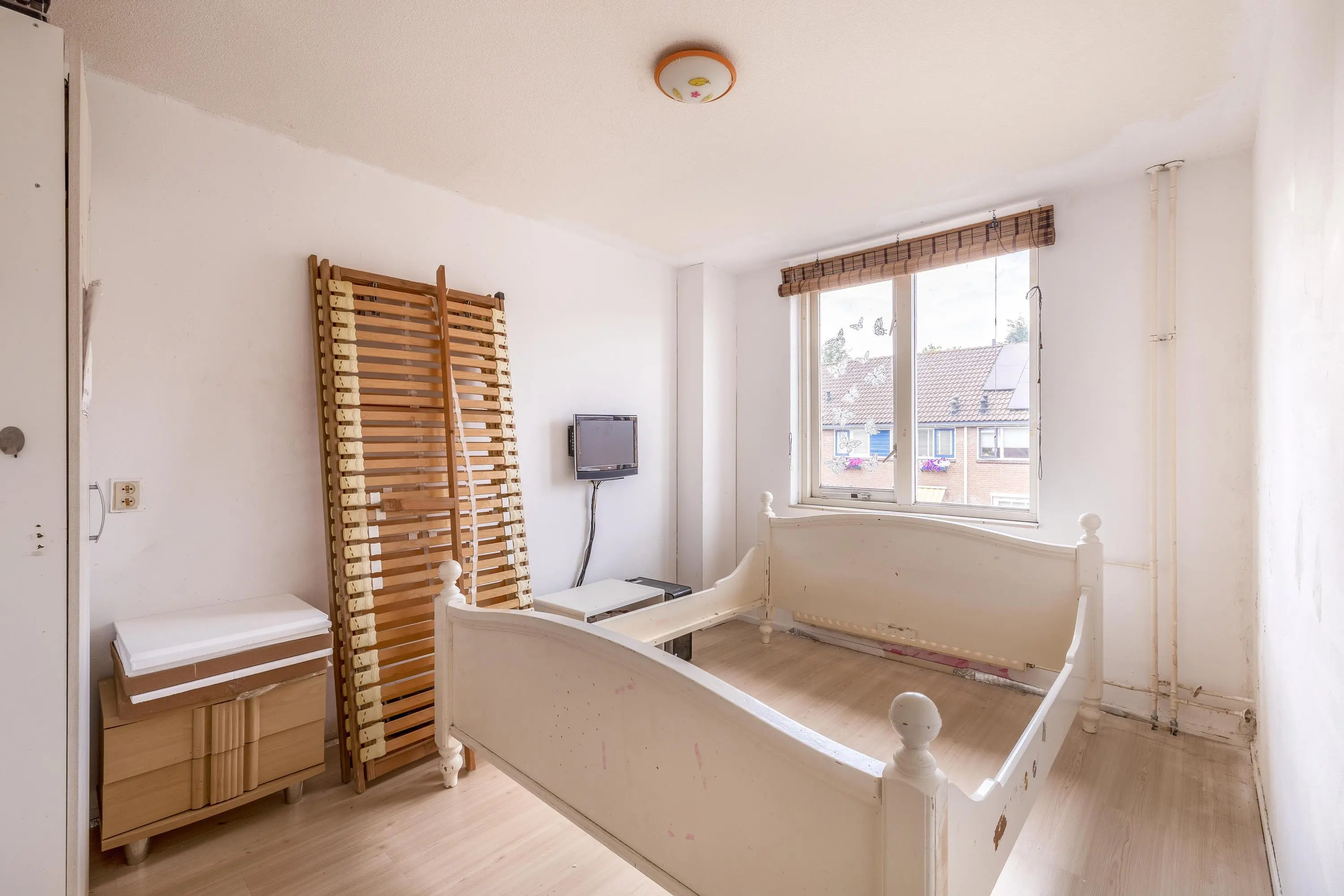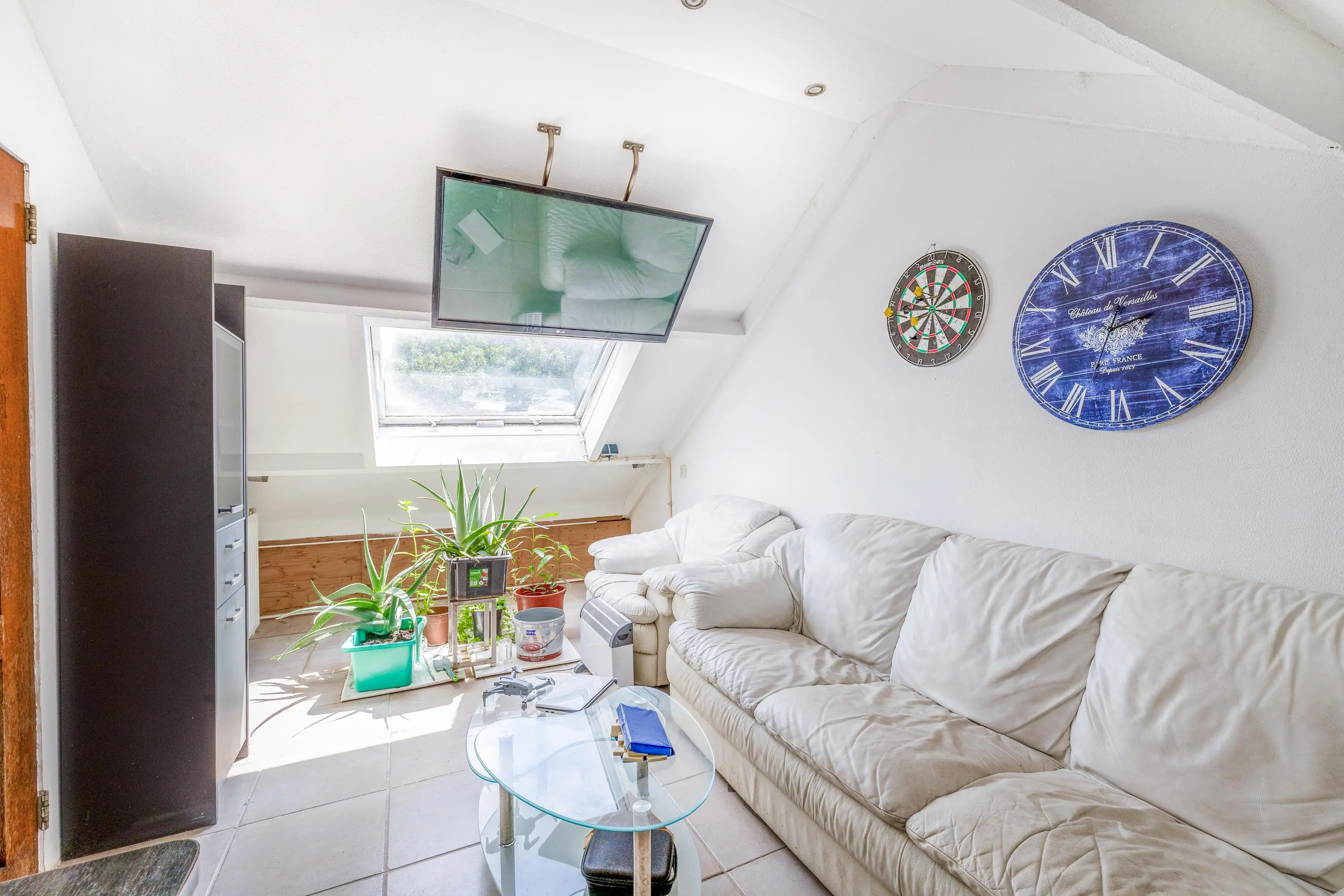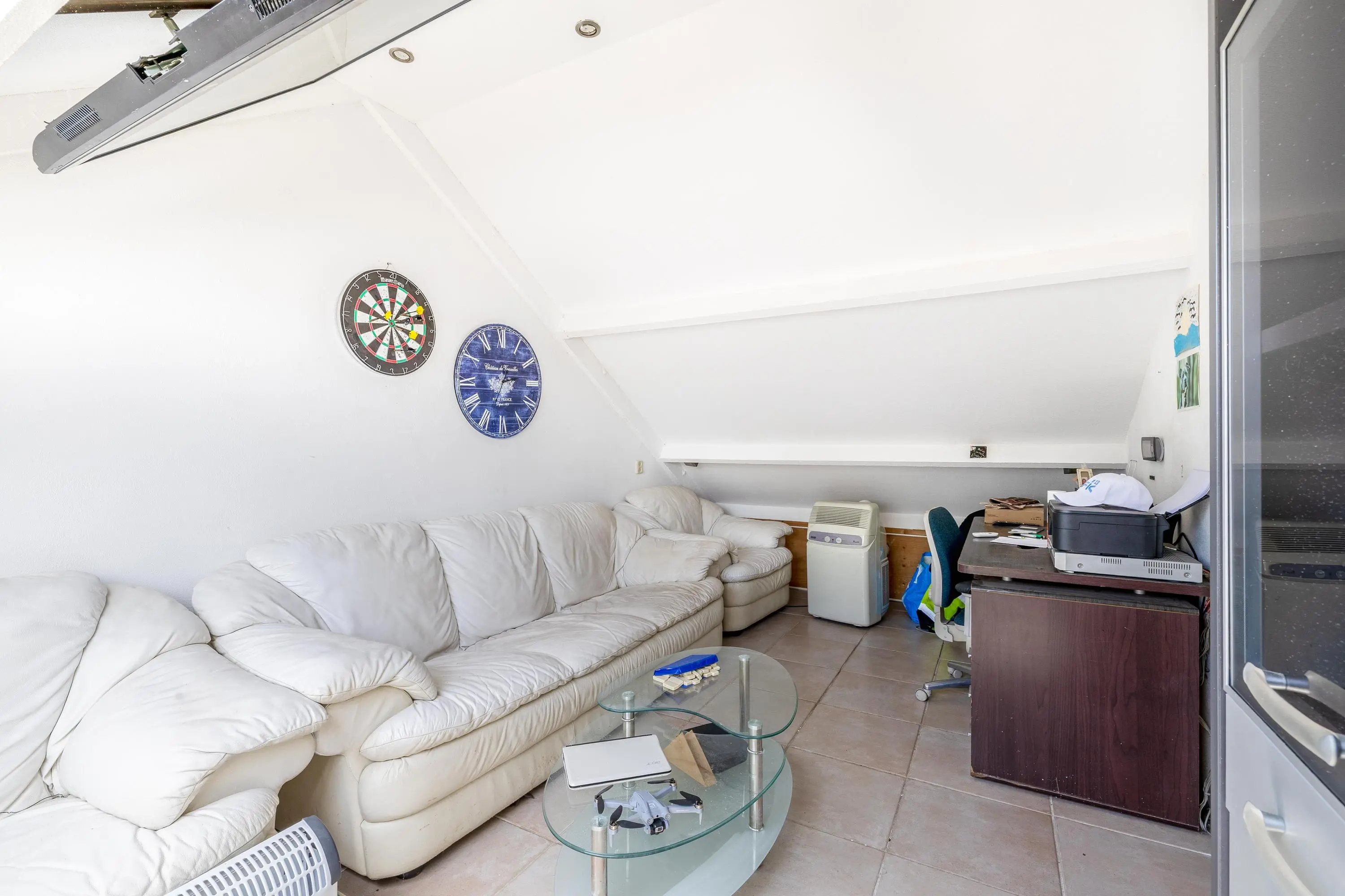 Deze vierde slaapkamer heeft een oppervlakte van circa 11m² en is eveneens voorzien van een betegelde vloer. De kamer beschikt over een dakraam voor natuurlijke lichtinval en biedt daarnaast aan weerszijden extra bergruimte onder het schuine dak.