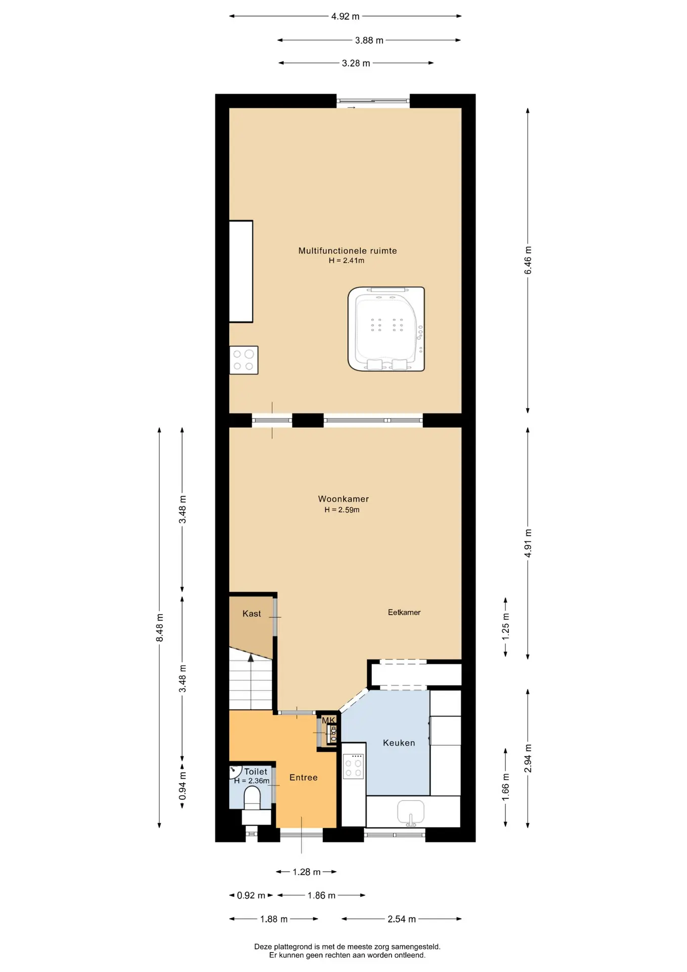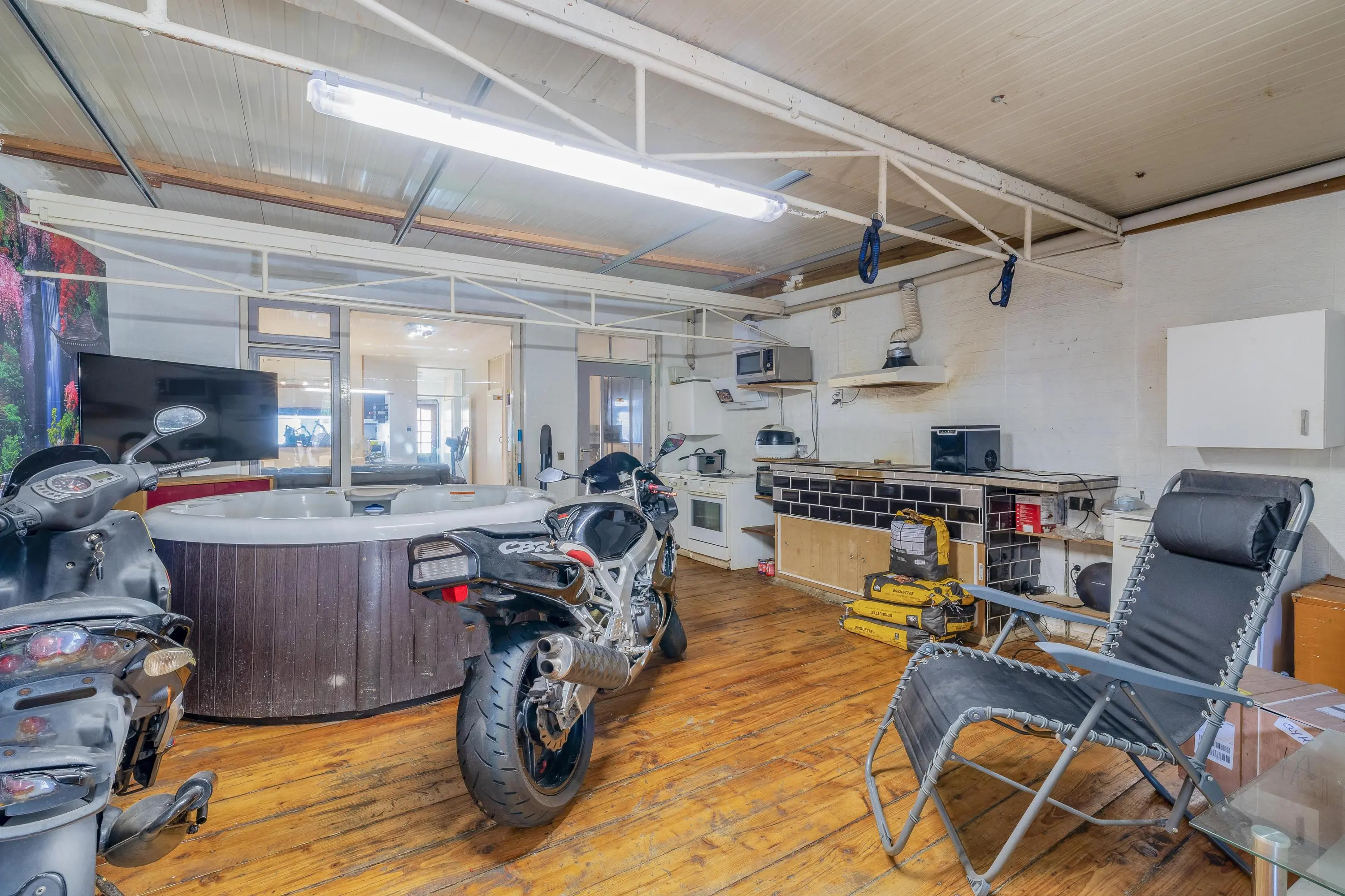 De multifunctionele ruimte heeft een oppervlakte van circa 31,5m² en is afgewerkt met een houten vloer. In deze ruimte is een bijkeuken gerealiseerd, waar ook een aansluiting voor een fornuis aanwezig is. De ruimte biedt volop mogelijkheden en is geheel naar eigen smaak en gebruik in te richten, bijvoorbeeld als extra leefruimte, werkplek of hobbyruimte. Via een schuifpui heeft u direct toegang tot de achtertuin.