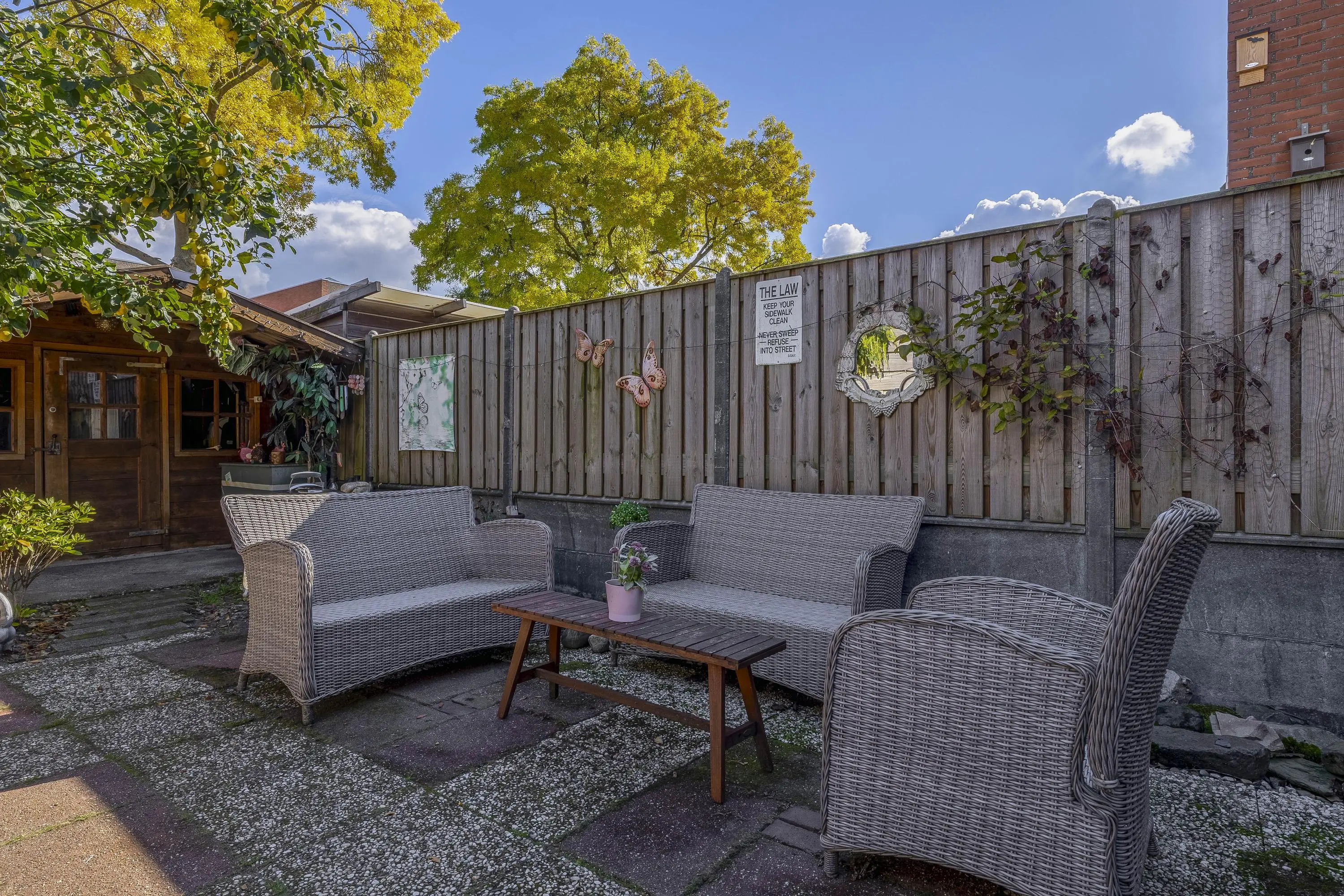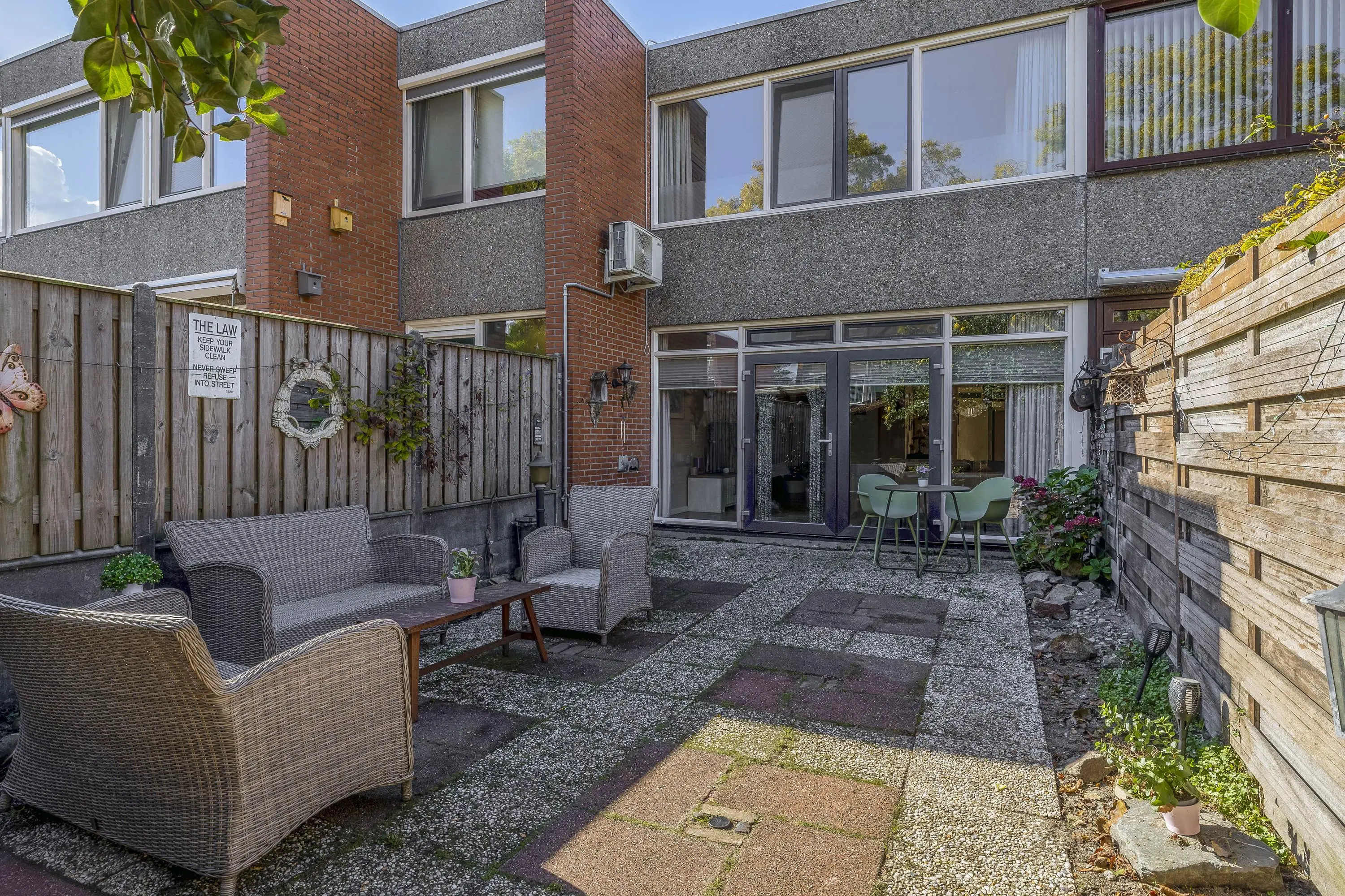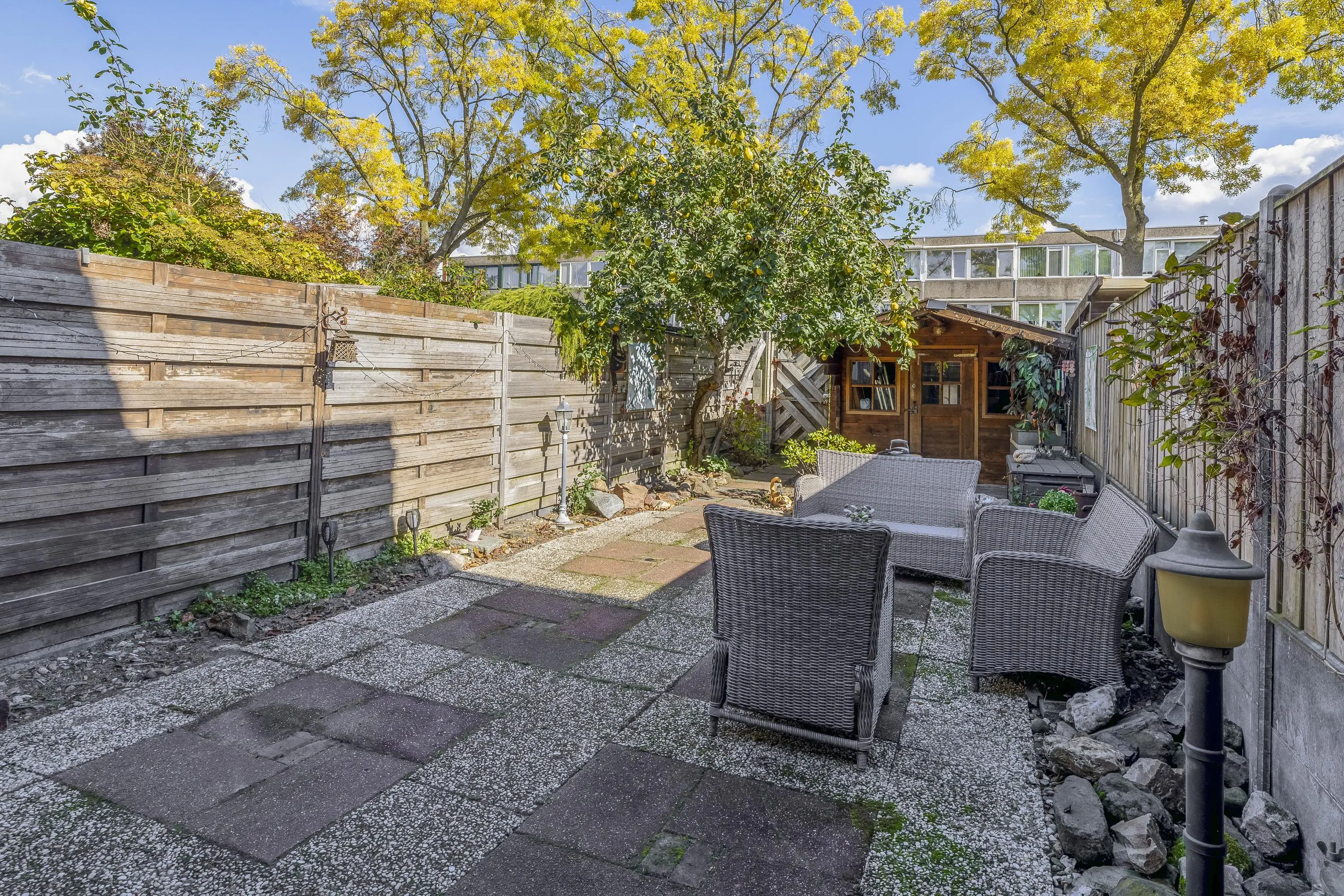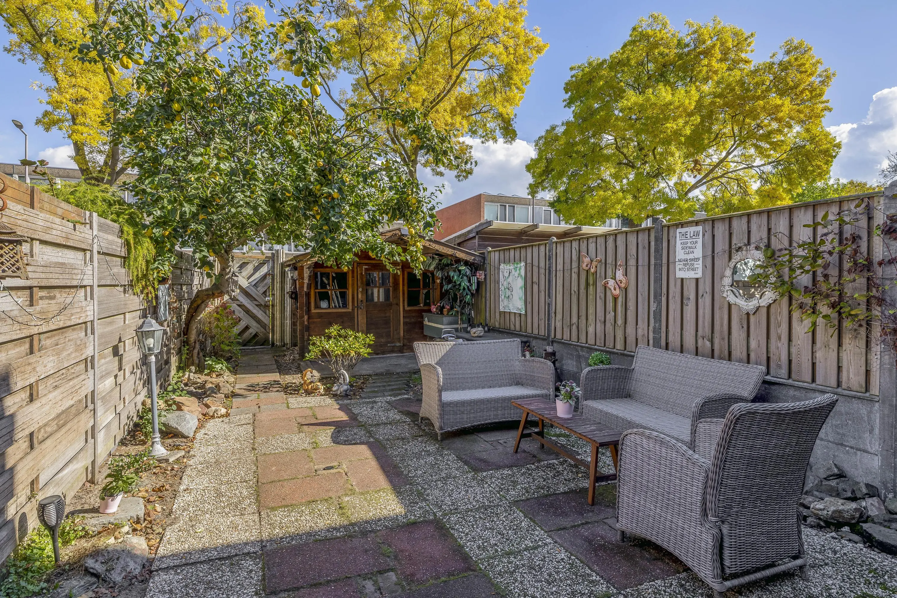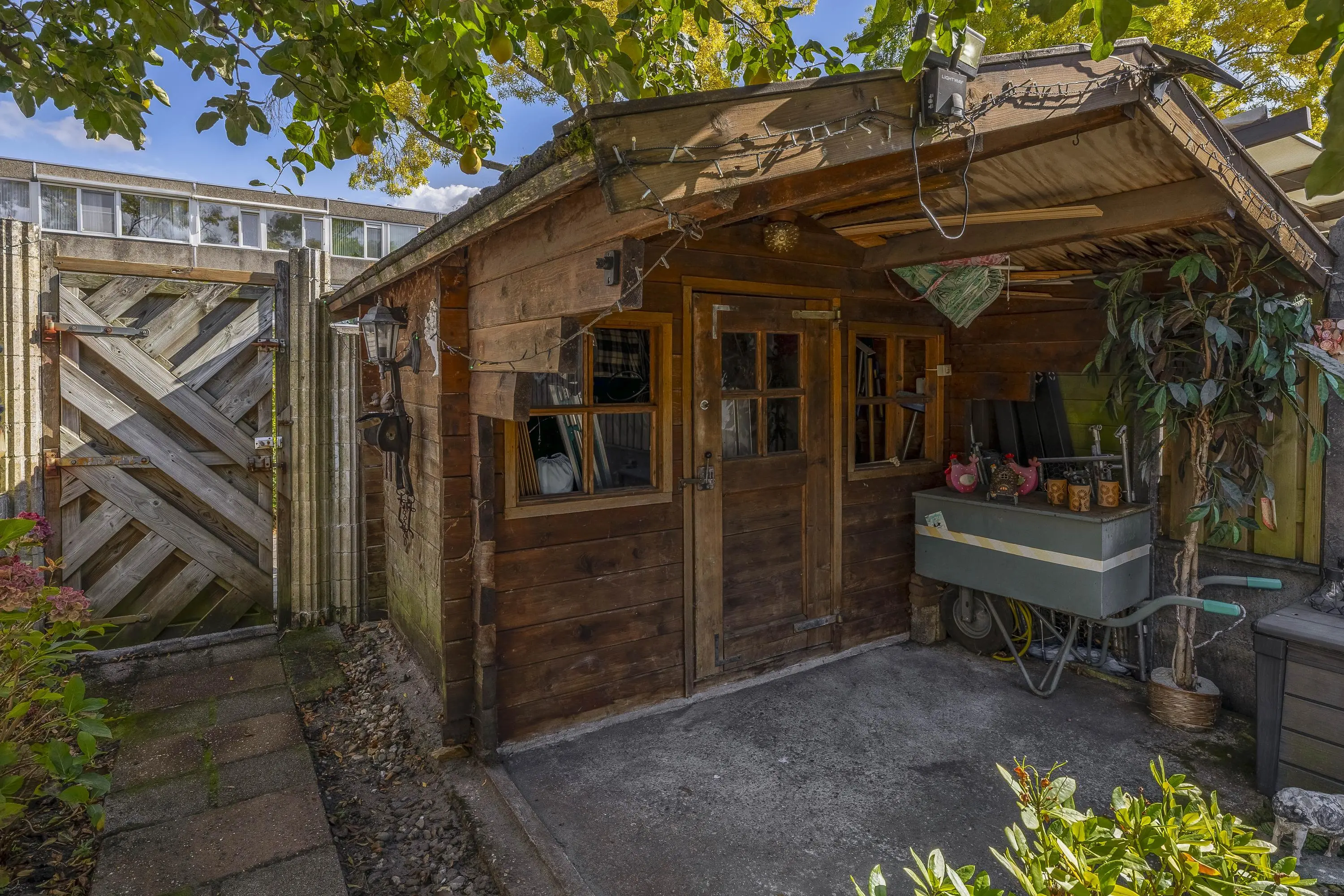 Via een compacte en goed onderhouden voortuin geeft de toegang tot de woning. Direct bij de entree wordt je al omgeven door groen. De achtertuin heeft een heerlijk oppervlakte met veel groen, een grote houten berging en een fijn stukje terras. Er zijn veel mogelijkheden voor een speelhoek voor de kinderen, nog meer planten en kleurrijke bloemen of juist een lekker stukje gras. Kortom; een royaal en groen perceel in een nog groenere wijk!