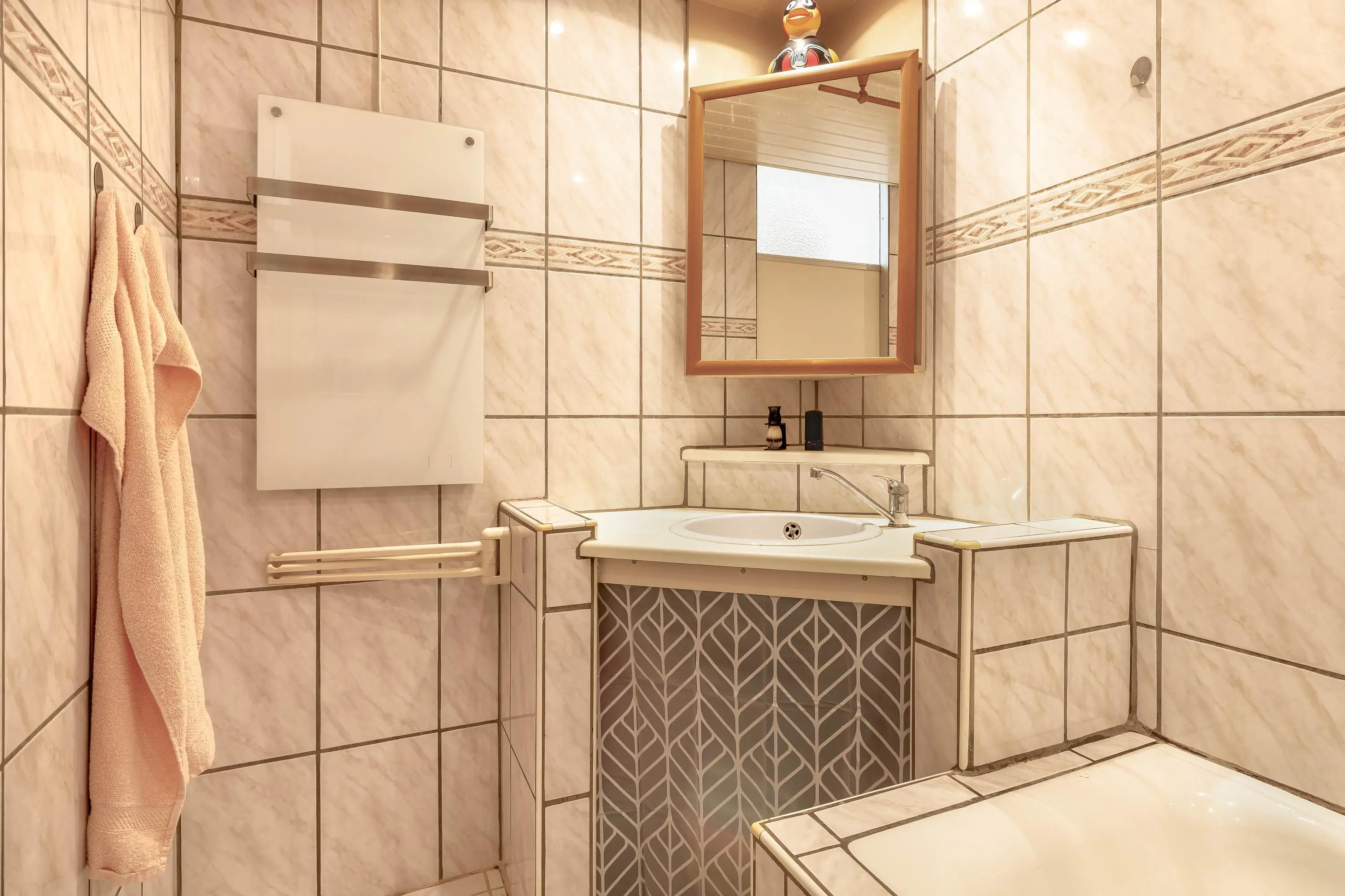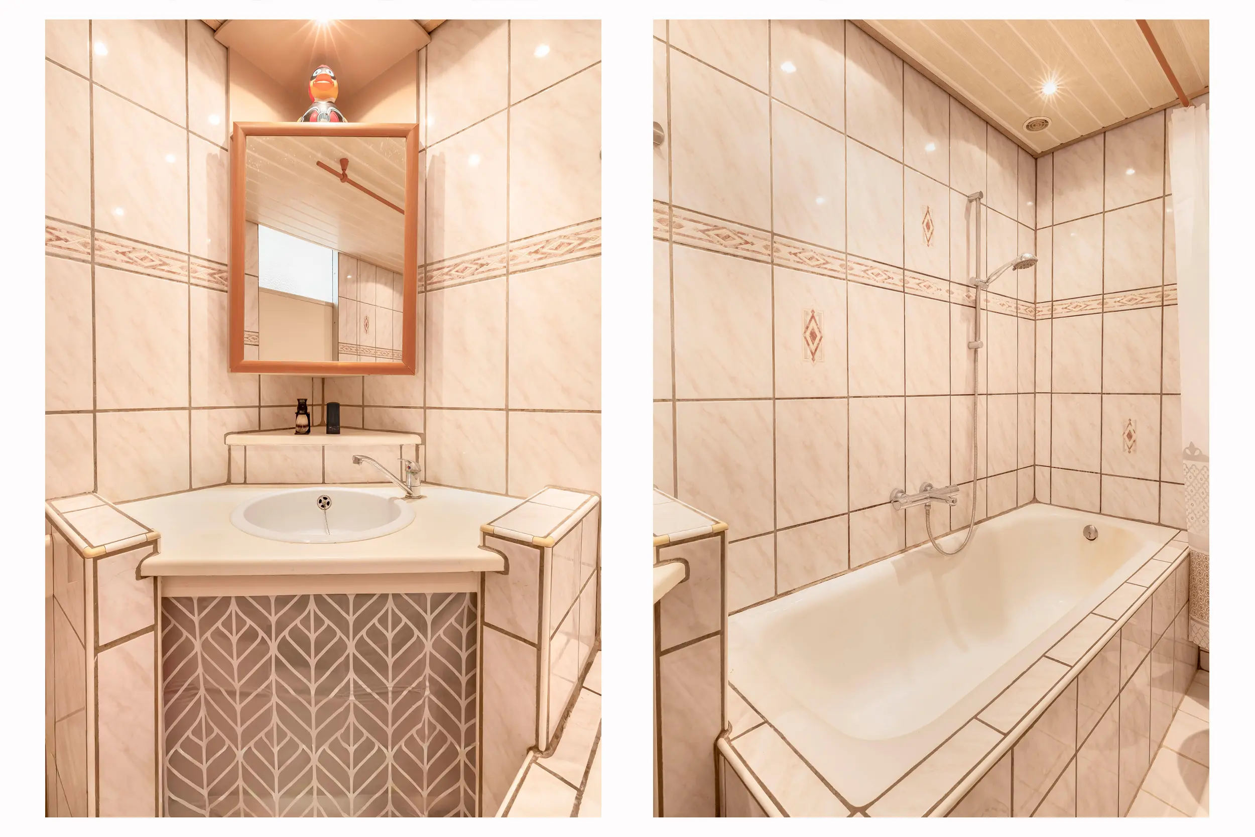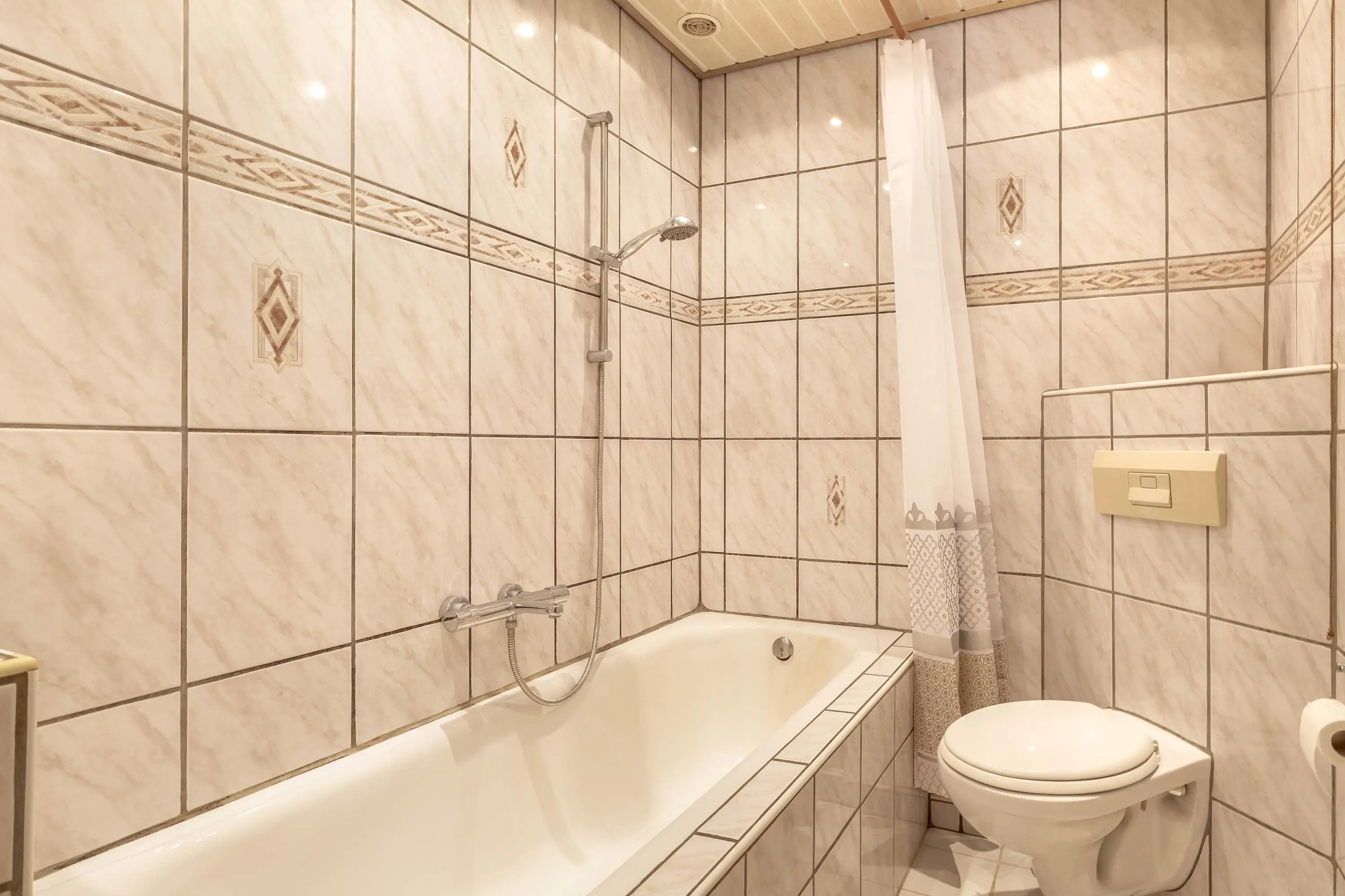 De opkomst op de eerste etage is op de overloop. Deze woonverdieping is voorzien van 2 slaapkamers, de badkamer en een kast met daarin de C.V.-ketel opstelling. De slaapkamers zijn voorzien van grote raampartijen en zorgen daardoor voor veel natuurlijk licht. De badkamer is heeft als sanitaire voorzieningen een wastafel met een meubel, toilet, designradiator en een ligbad met douche functie. Wat een compleet huis!