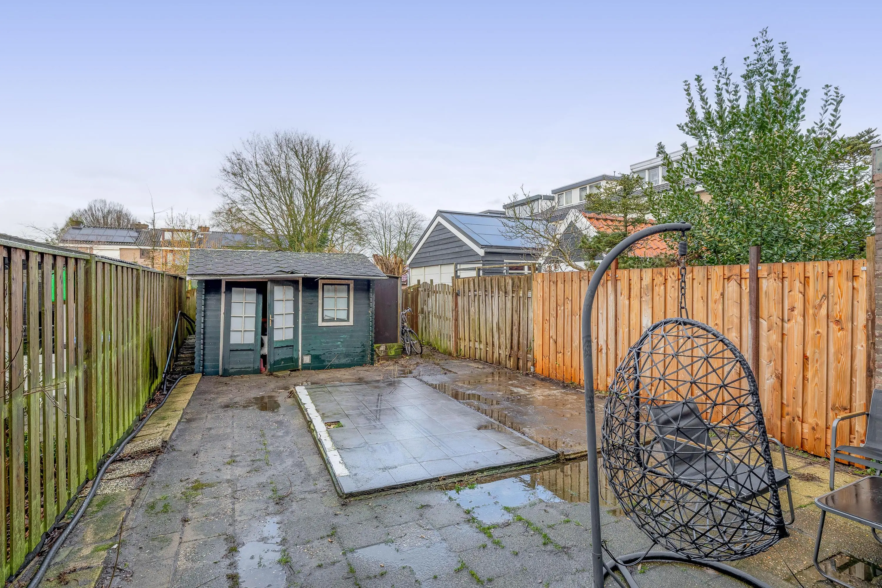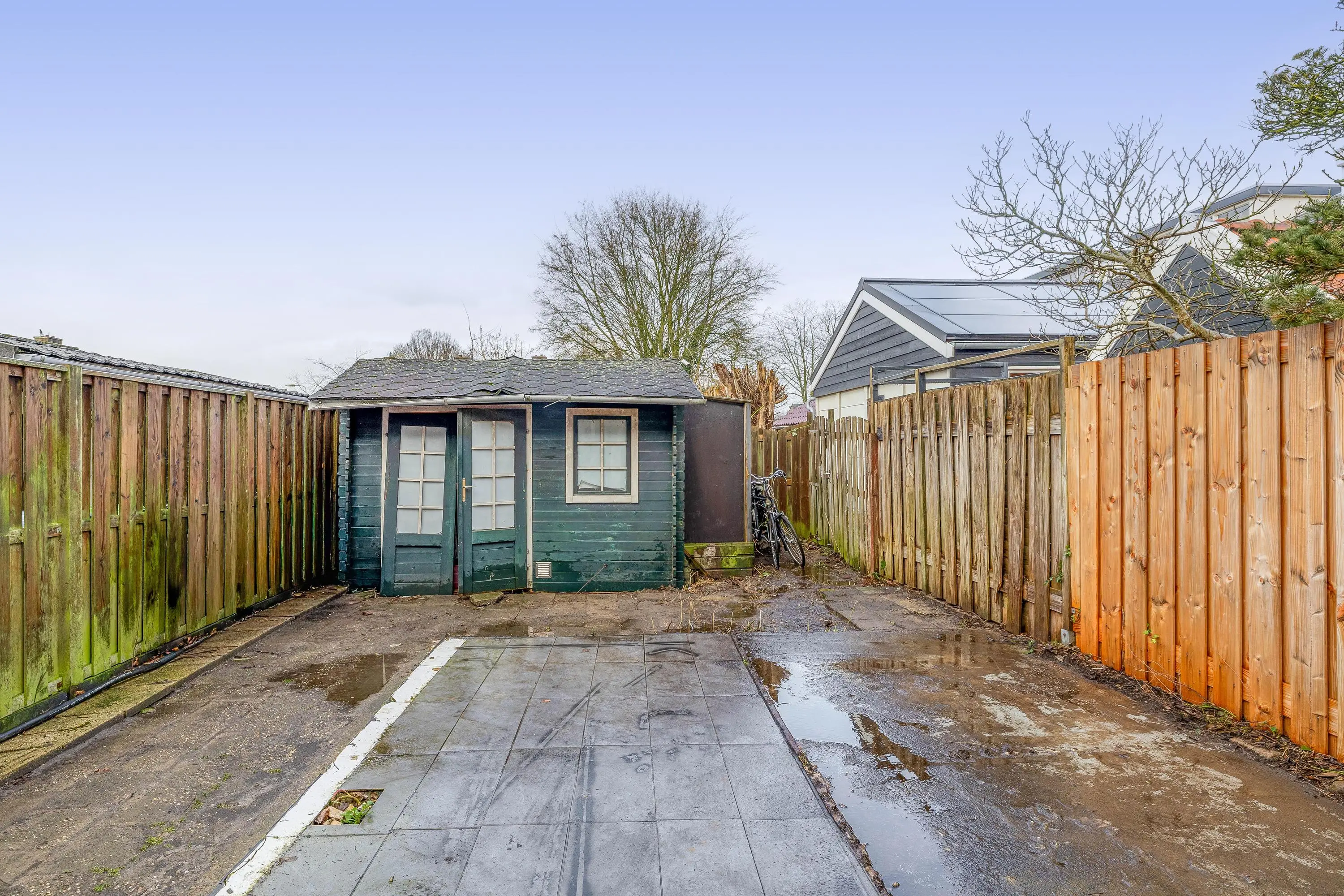 De ruime achtertuin van circa 85m² is gunstig gelegen op het westen, waardoor u hier volop van de middag- en avondzon kunt genieten. Dankzij de royale afmetingen is de tuin geheel naar eigen wens in te richten. Achterin de tuin bevindt zich een houten berging van circa 7m². De tuin is bereikbaar via een achterom.