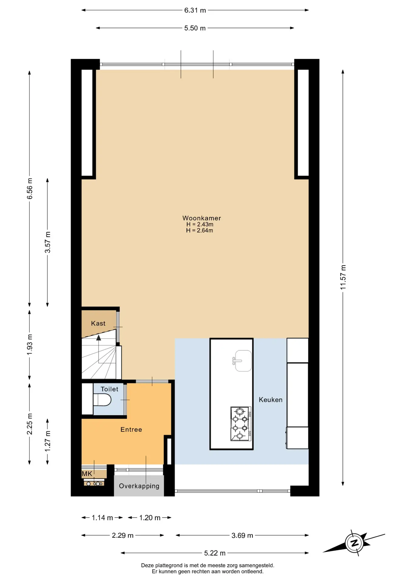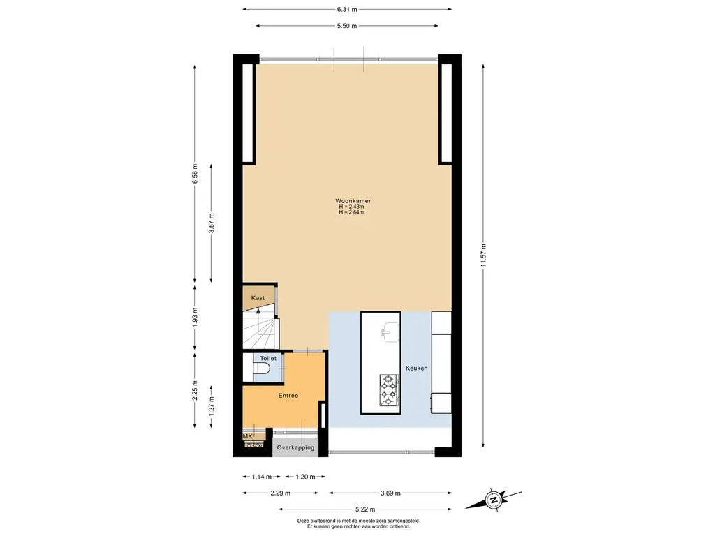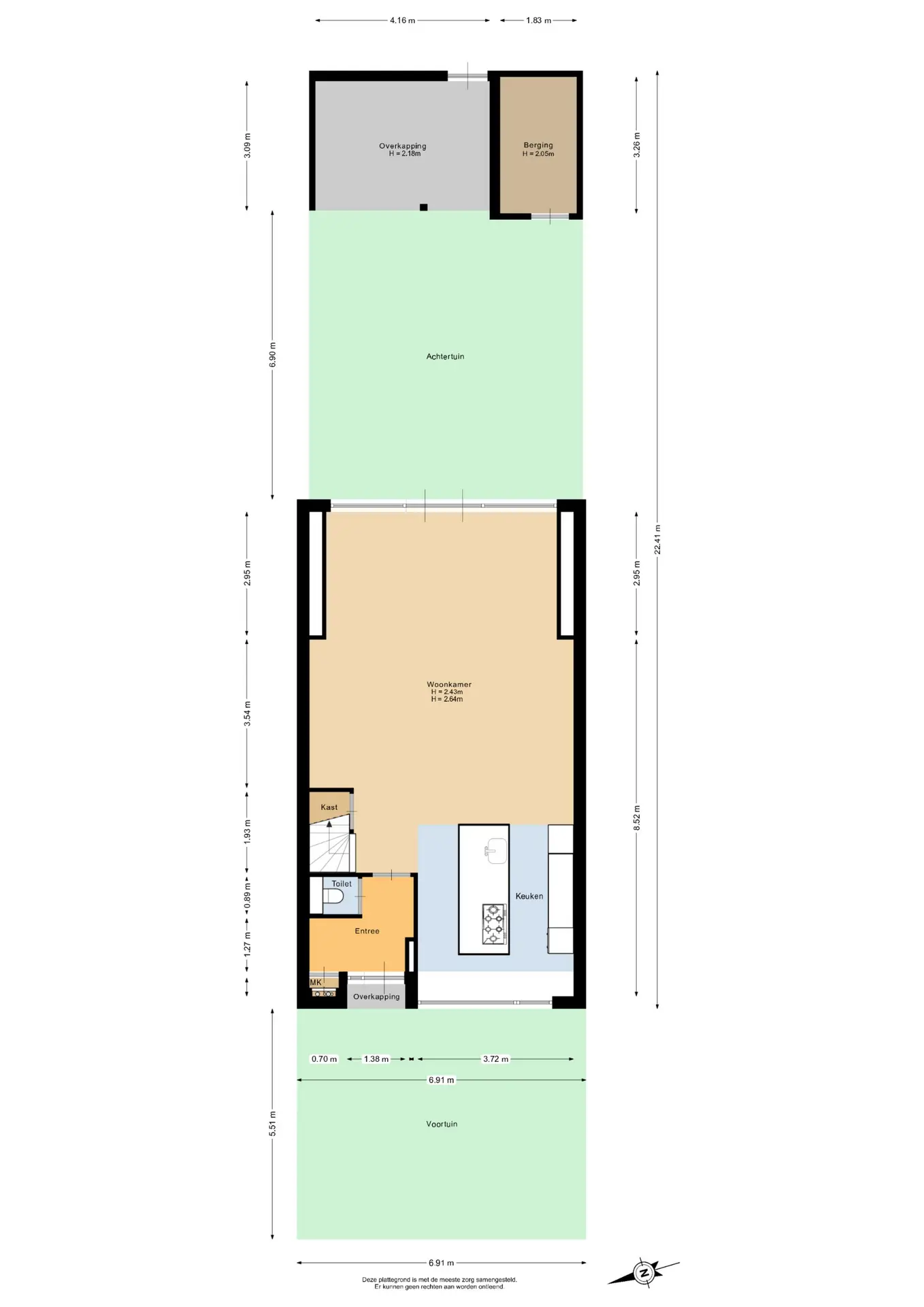 Bij binnenkomst treft u een strak afgewerkte hal met een meterkast en een moderne toiletruimte. Een eyecatcher in de hal is de zwarte stalen taatsdeur met glas, die toegang biedt tot de living en direct voor een ruimtelijk effect zorgt. De vloer is afgewerkt met een plavuizen vloer voorzien van vloerverwarming, welke doorloopt over de gehele begane grond.