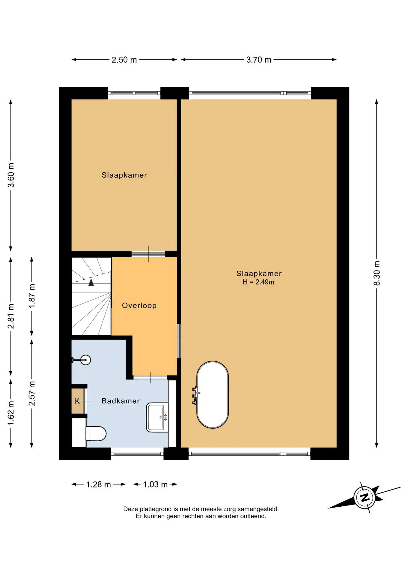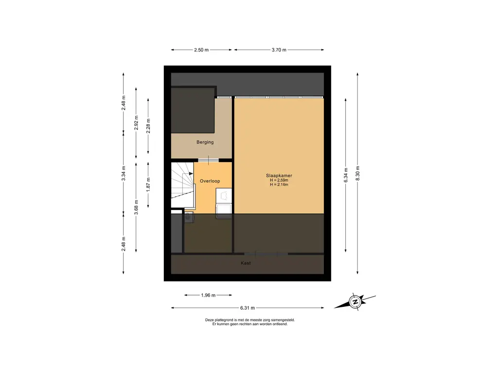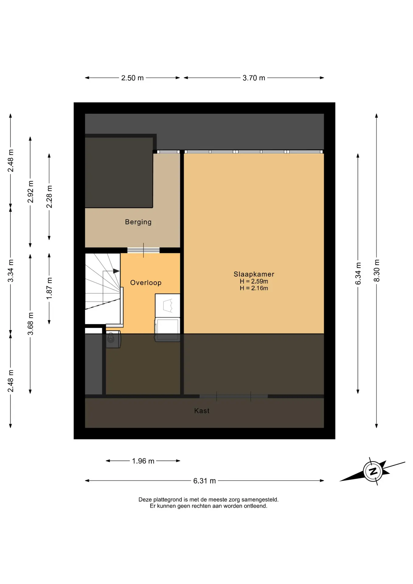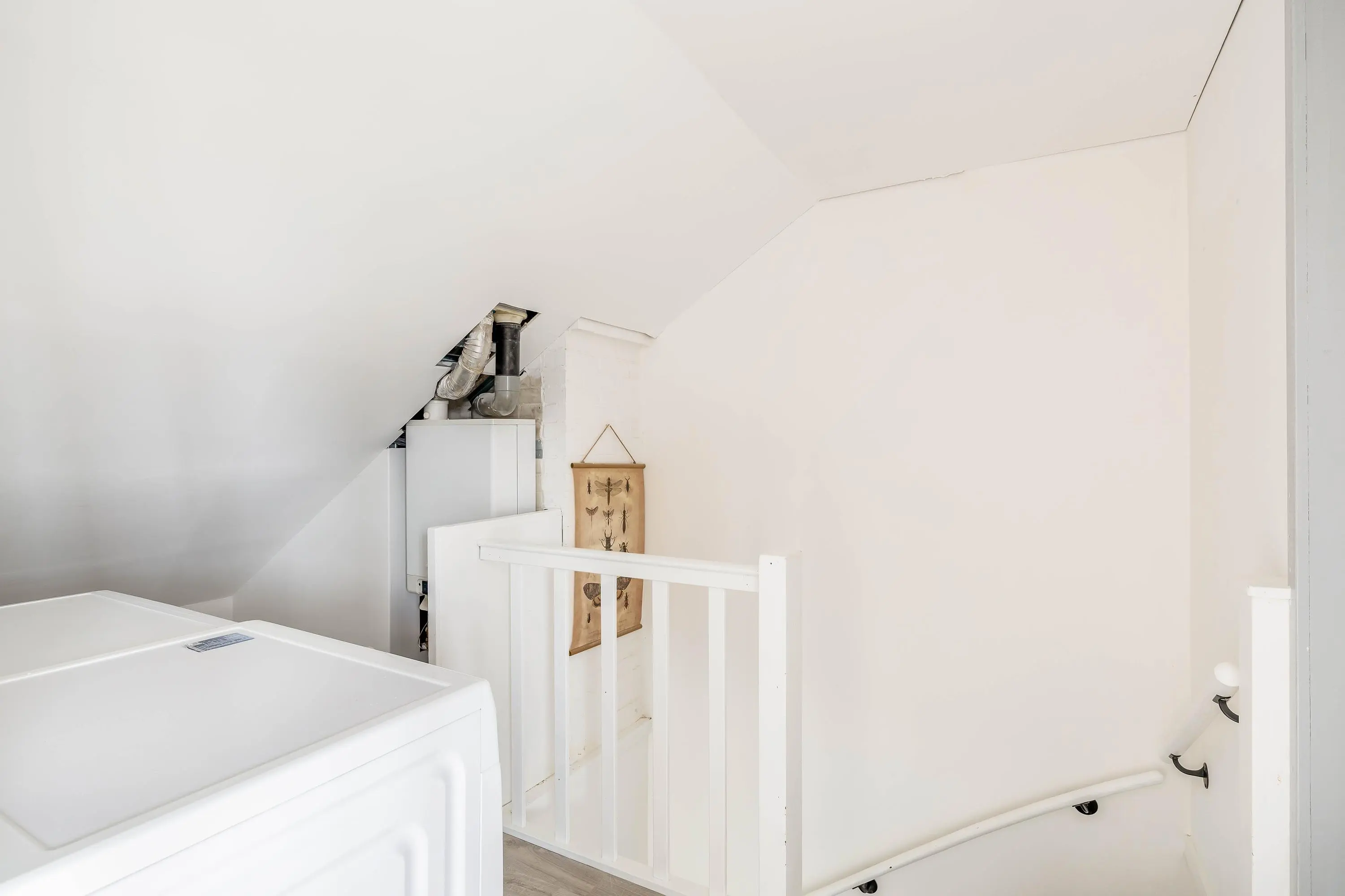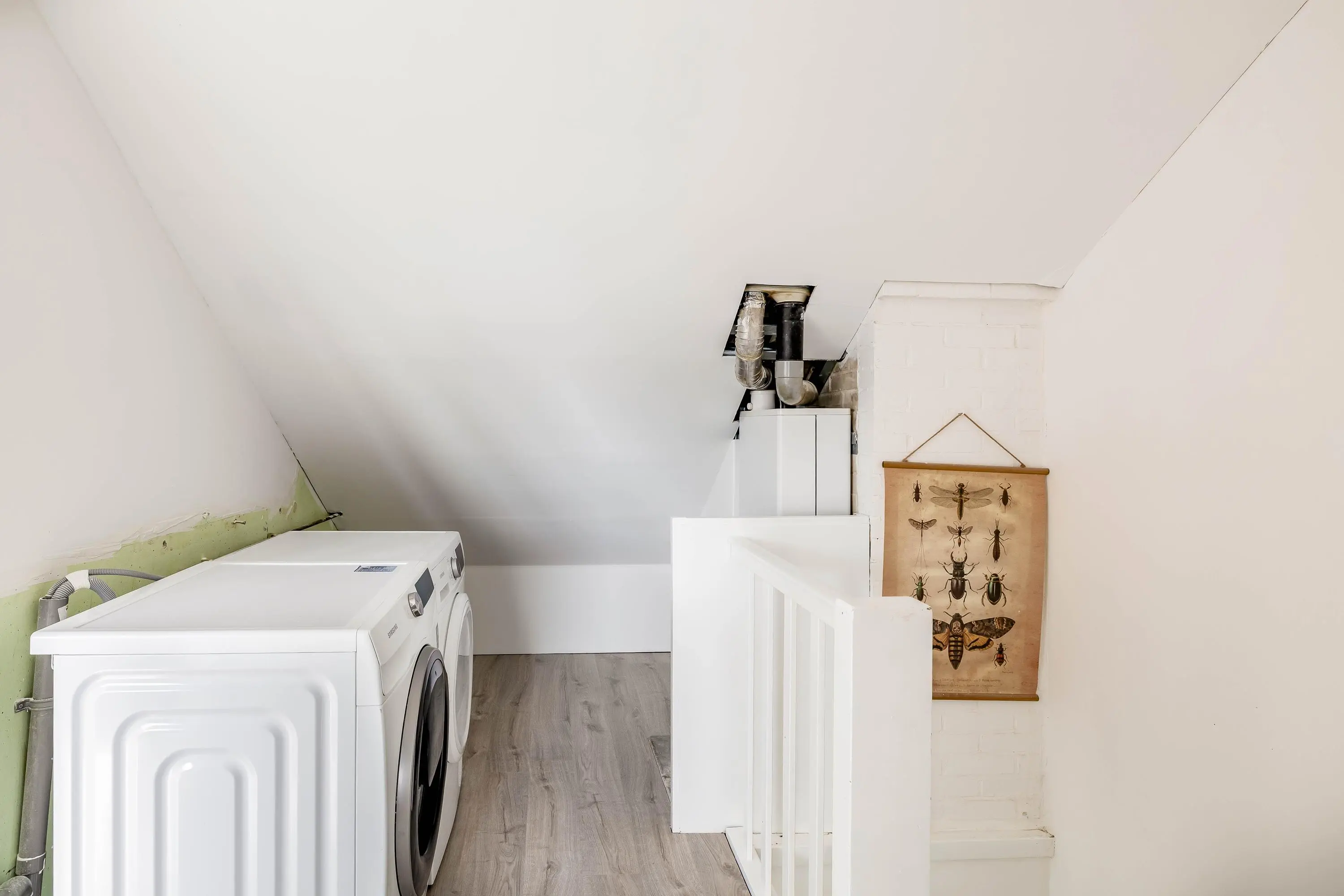 De voorzolder is praktisch ingericht met de opstelling voor de cv-ketel en de aansluitingen voor de wasmachine-/droger, en is voorzien van dezelfde laminaatvloer als op de eerste verdieping, die doorloopt in de slaapkamer. Daarnaast biedt de voorzolder extra bergruimte.