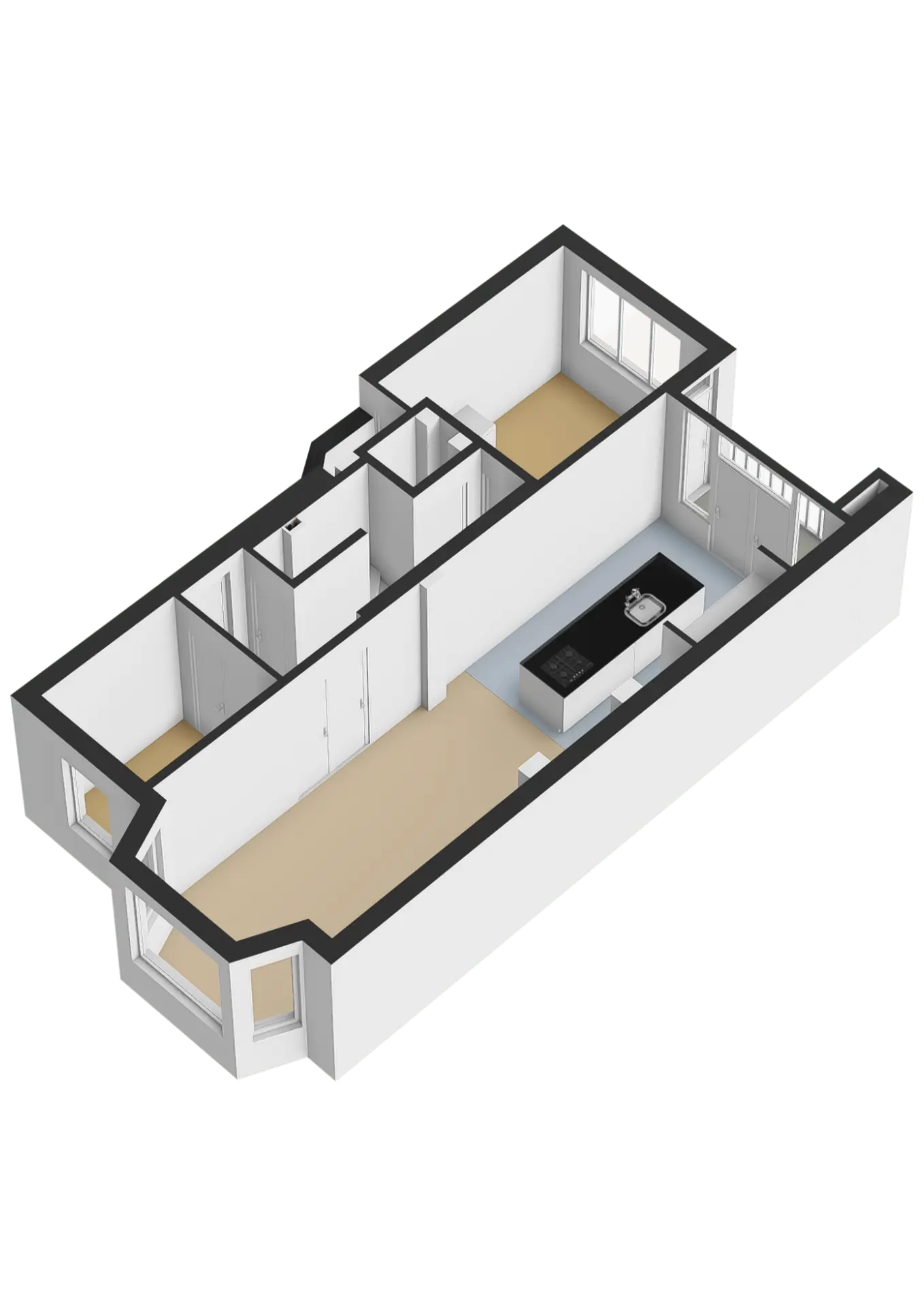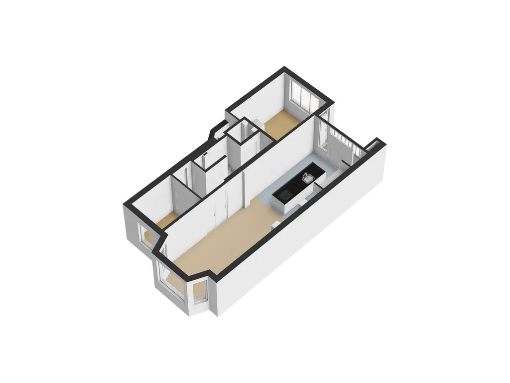 De entree naar de woning is via het open portiek met het trappenhuis. De binnenkomst op de eerste verdieping is in de hal. Aan de voorzijde is de eerste slaapkamer aanwezig, deze is goed te gebruiken als studeerplek of kastenkamer. Onder de trap bevindt zich een diepe kast met daarin ook de meterkast. Tevens is er een losse toiletruimte in de hal aanwezig, deze is voorzien van een wandcloset en fonteintje. Aan de achterzijde is ook de grote slaapkamer van deze etage te vinden. Goed van formaat, een praktische vaste kast aanwezig en door de grote raampartij komt er veel natuurlijk daglicht naar binnen. Het balkon op het zuidwesten is via deze slaapkamer en via de keuken bereikbaar. Echt een heerlijke plek om te genieten! Middels de mooie openslaande deuren in de hal is de doorgang naar de woonruimte. Een royale living aan de voorzijde en luxe woonkeuken met kookeiland aan de achterzijde. De erker aan de voorzijde geeft veel sfeer en door het grote oppervlakte is er een mooie verdeling mogelijk tussen een gezellige zithoek en eetgedeelte. In de keuken bevinden zich ook openslaande deuren naar het balkon. De keuken is uitgevoerd in hoogglans wit met een natuurstenen aanrechtblad. Het eiland is voorzien van een spoelbak, vaatwasser, gaskookplaat en schouw, welke bevestigd is aan de fraai verlaagde koof met inbouwspots. Daarnaast is er een praktische ingebouwde wandopstelling aanwezig, welke voorzien is van een magnetron, oven en koel/-vriescombinatie. De droom van iedere (t)huis kok....
