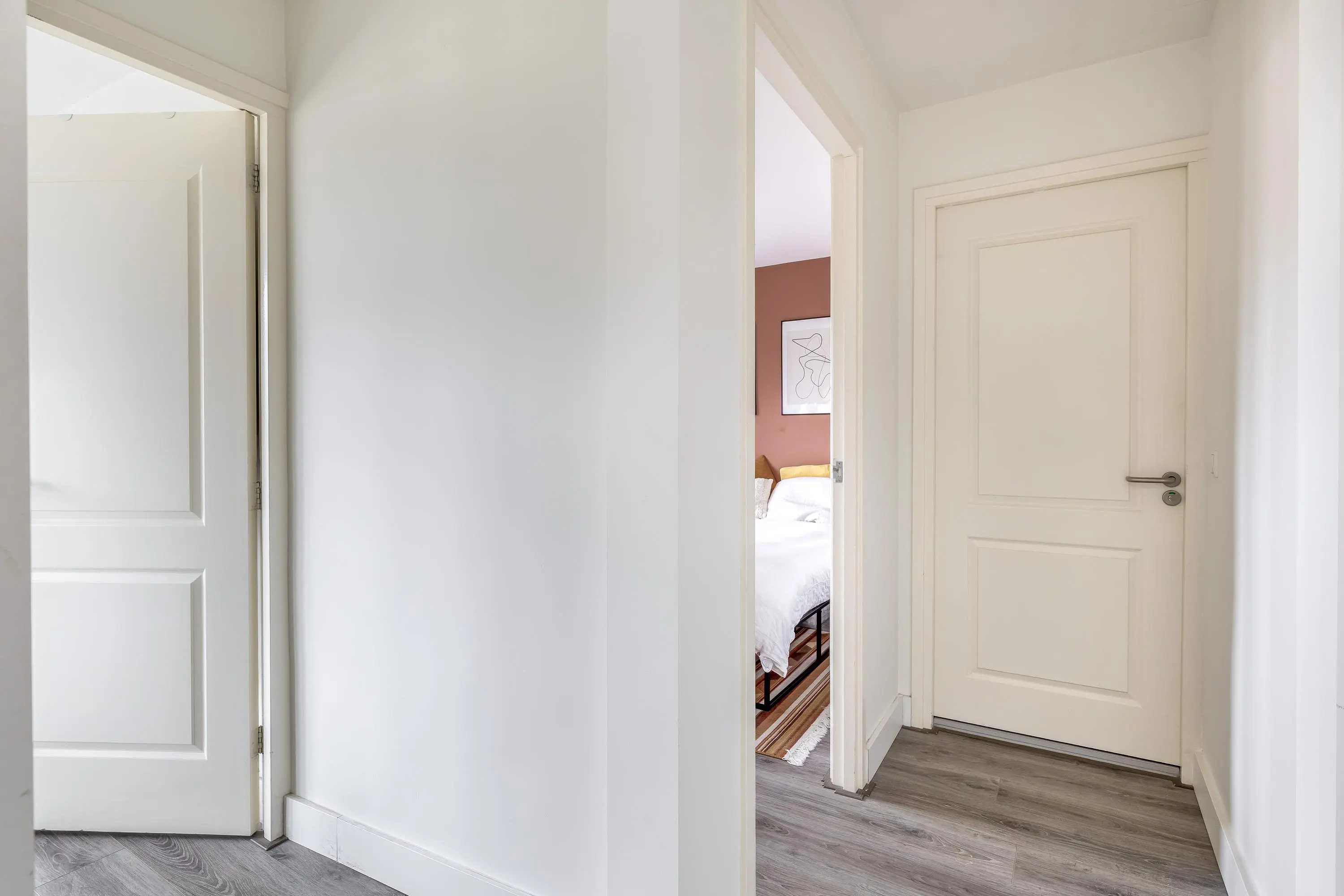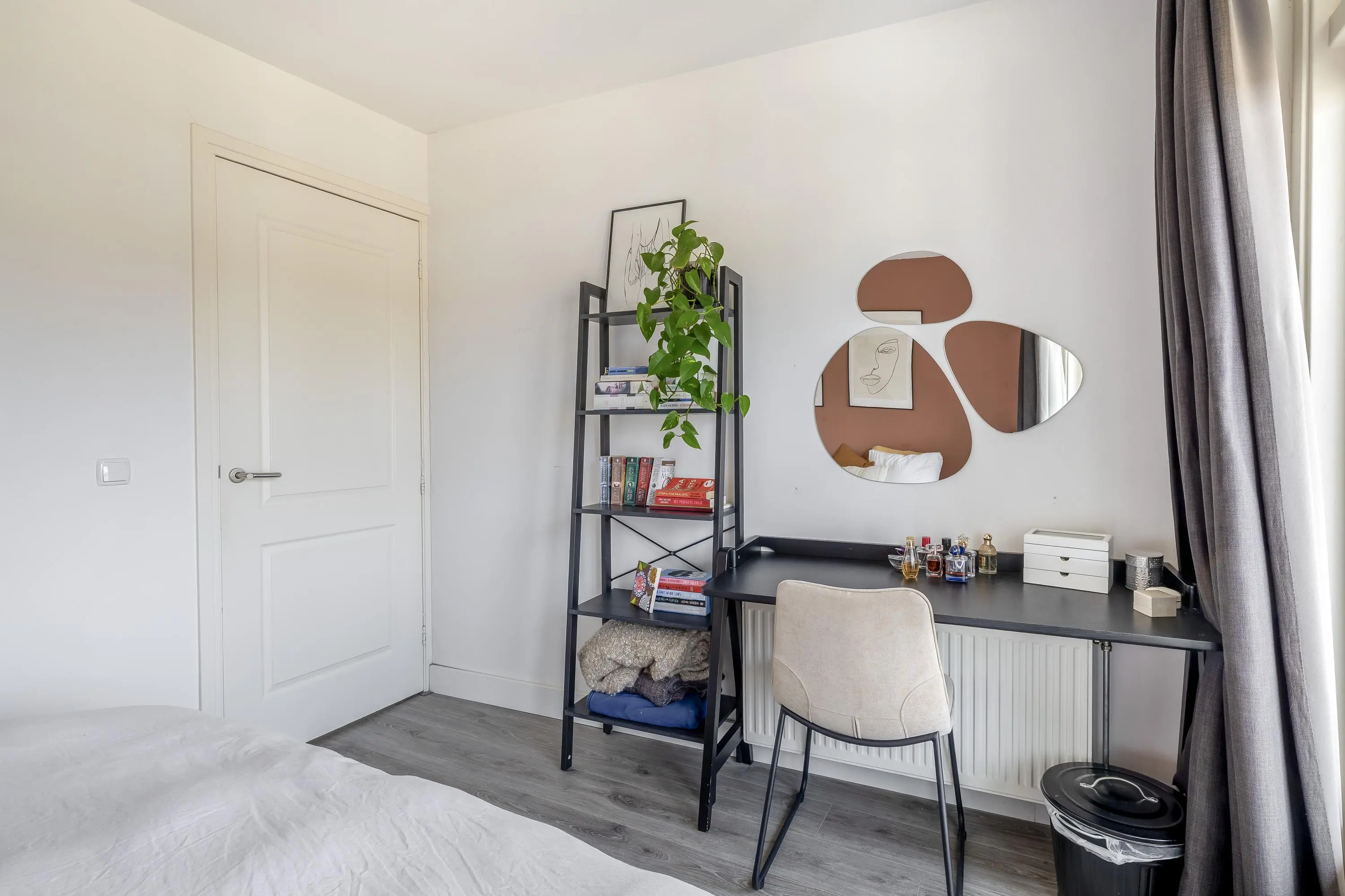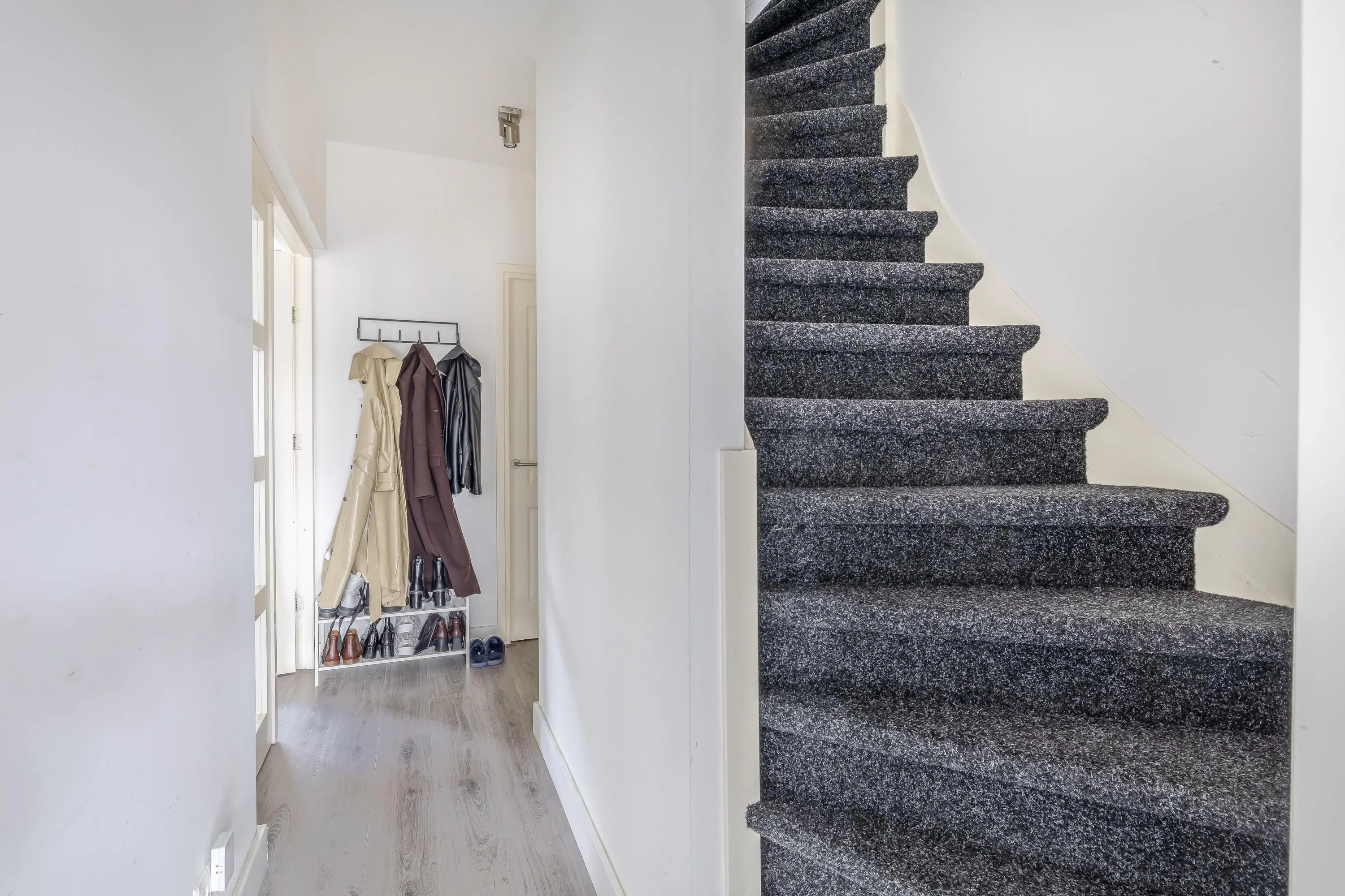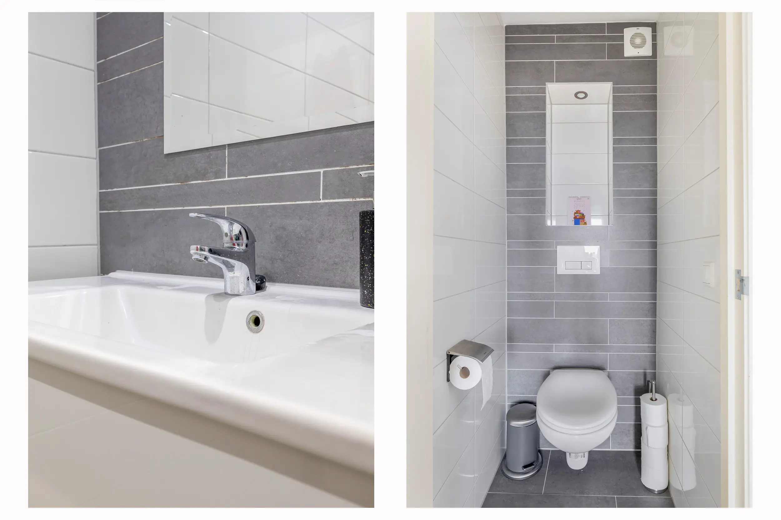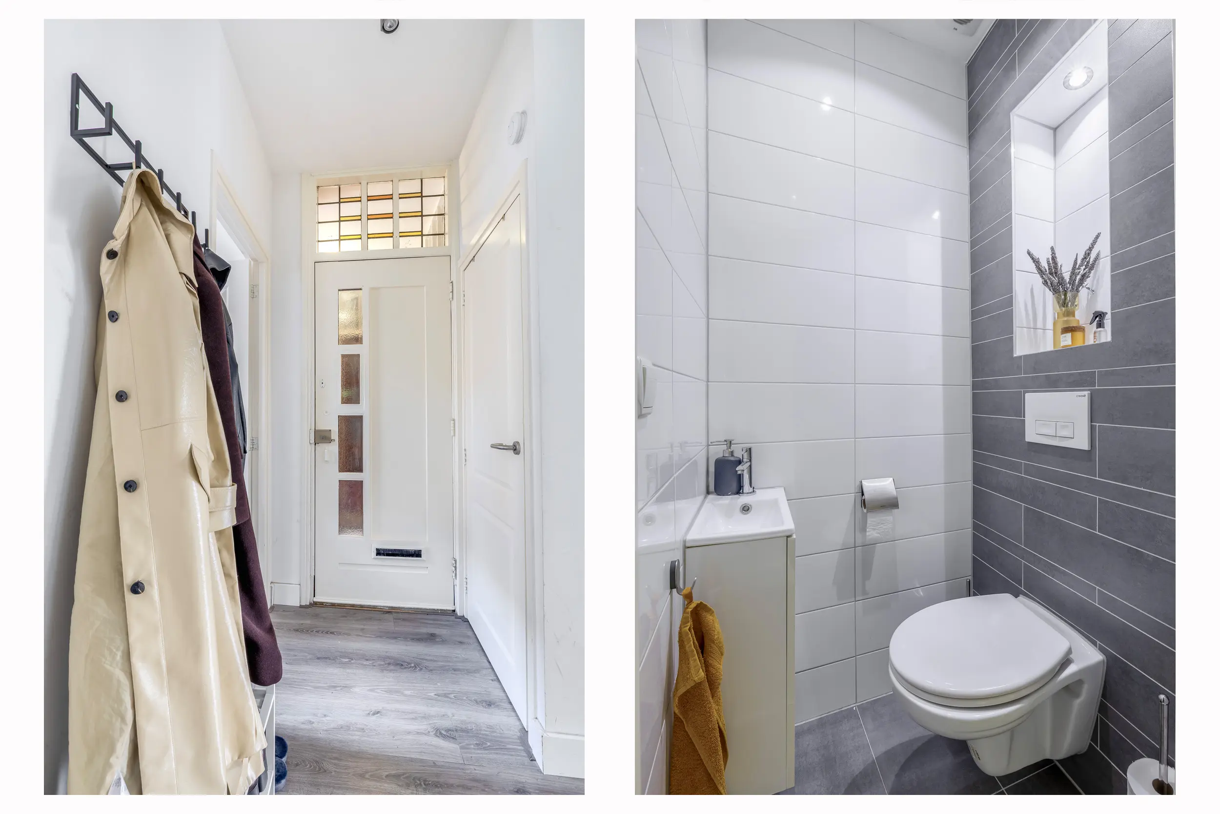 De opkomst op de derde etage is op de overloop. Hier is een losse toiletruimte te vinden welke is voorzien van een wandcloset. Dan volgt de luxe badkamer. Deze heeft als sanitaire voorzieningen een ruime inloopdouche, wastafel met meubel en een designradiator. Aan de achterzijde zijn de twee slaapkamers van deze etage te vinden. De beide kamers geven toegang tot het balkon aan de achterzijde. Door de ligging op het zuidwesten kan je hier tot laat genieten van de zon en rust aan deze kant van het huis. Verder is er een vaste kast aanwezig met daarin de C.V.-ketel opstelling en de aansluiting voor de wasmachine/droger. De gehele woning is afgewerkt met gestuukte wanden en een moderne laminaatvloer. Wat een gave kans zo in het centrum van de stad!