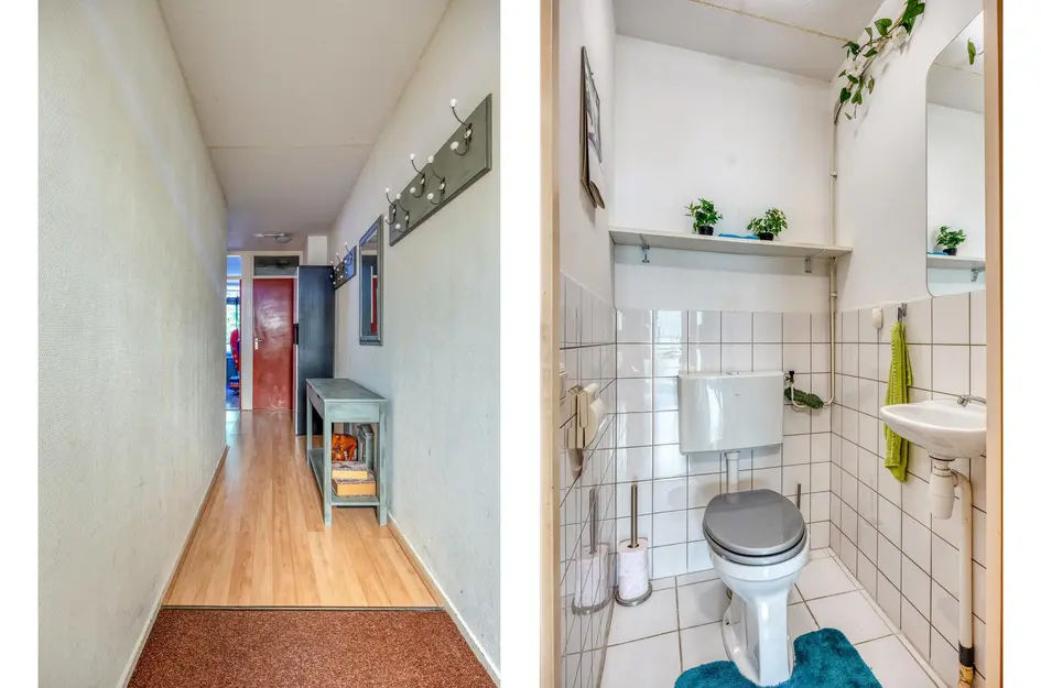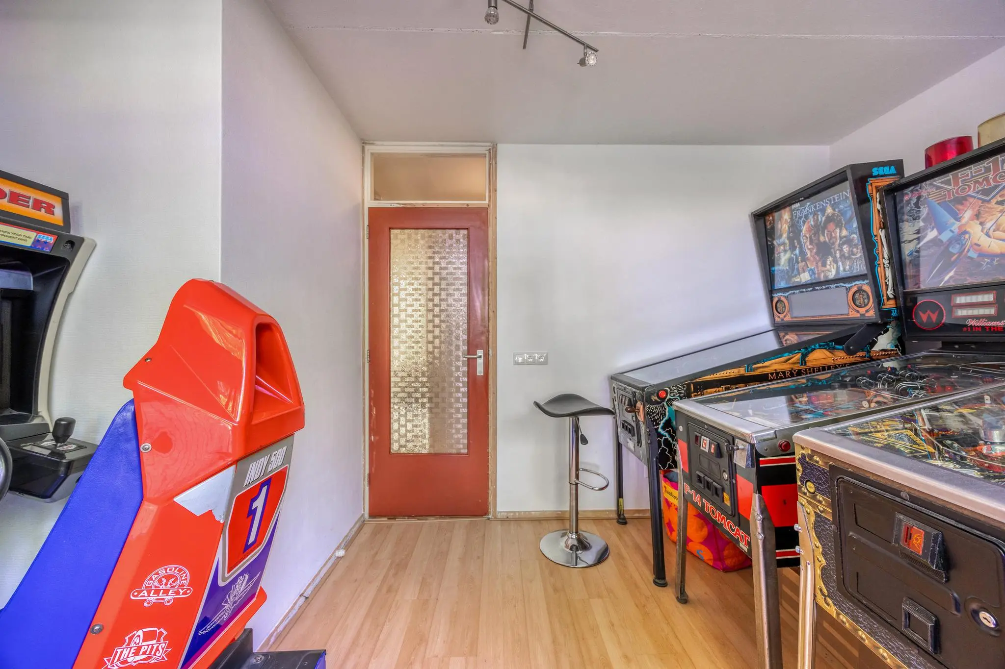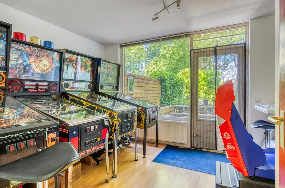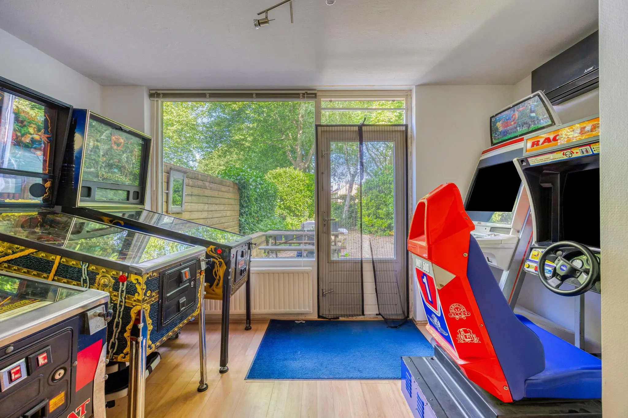 Entree/hal met het toilet met fonteintje. Verder is er toegang tot de vertrekken en de 1e verdieping. Allereerst nemen wij u mee naar de tuinkamer. Deze kamer heeft een oppervlakte van circa 11m² en is multifunctioneel te gebruiken. Bijvoorbeeld als slaapkamer, hobbyruimte of een praktijk aan huis. Deze kamer is voorzien van airconditioning en biedt toegang tot de achtertuin.
