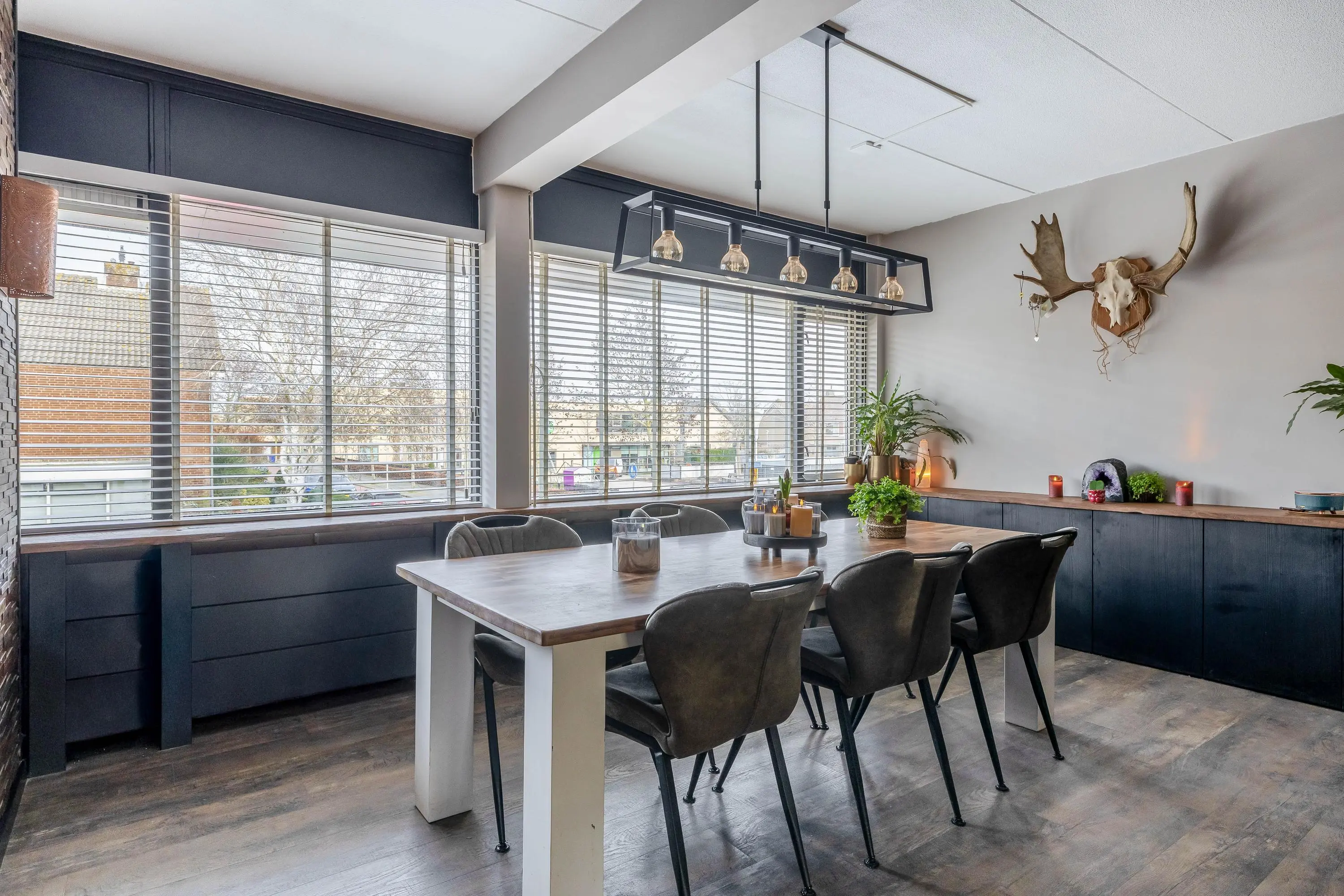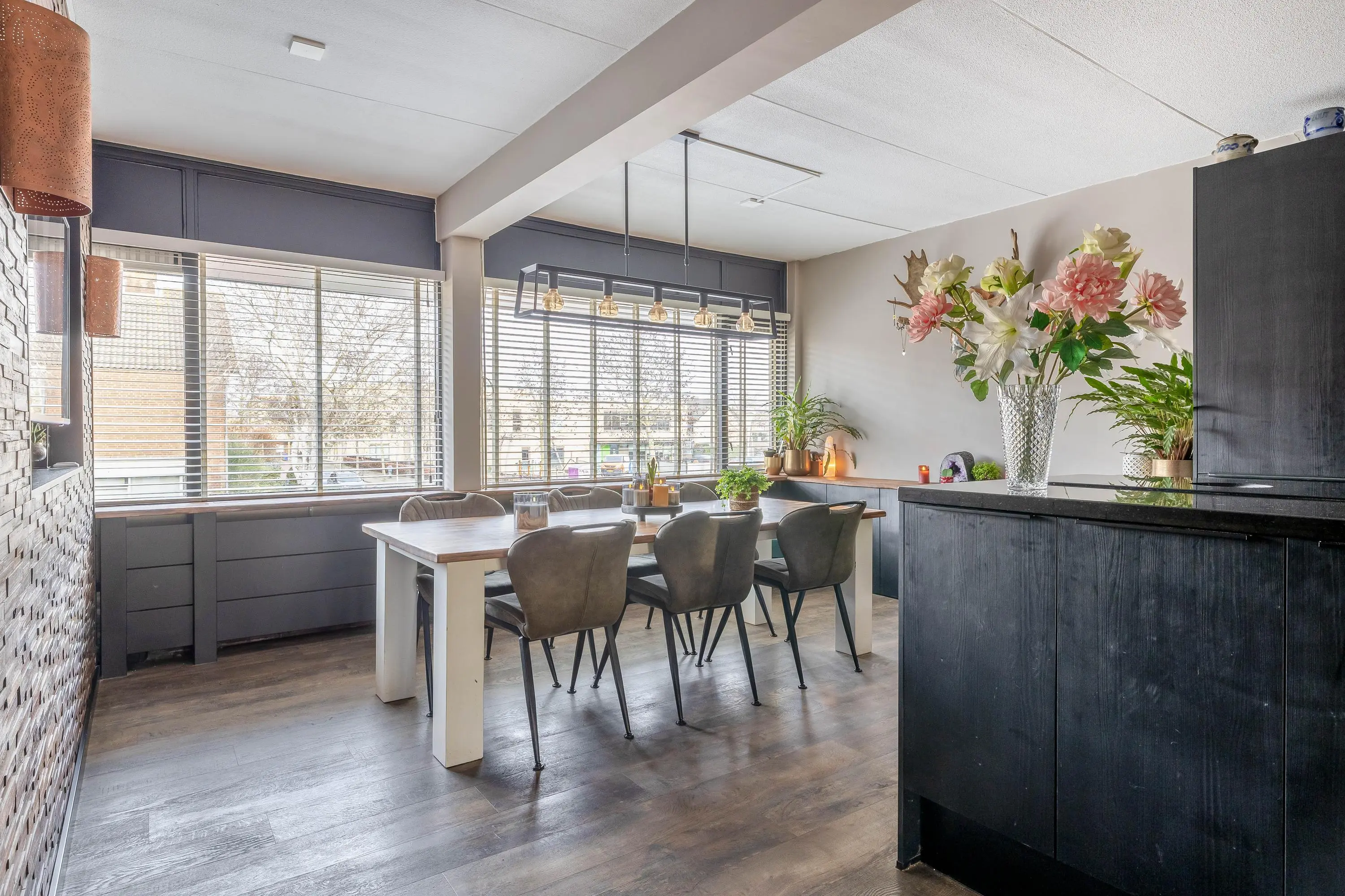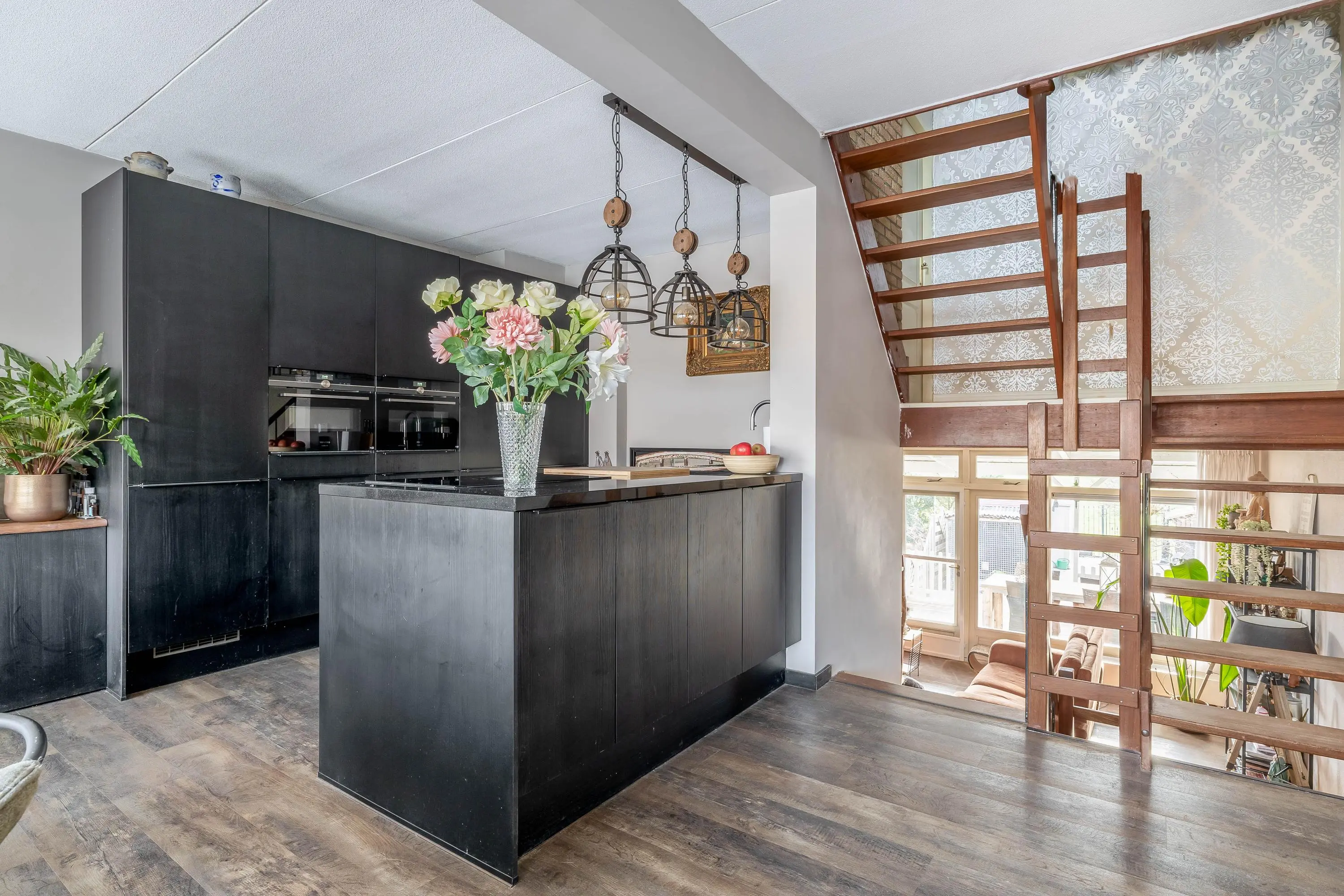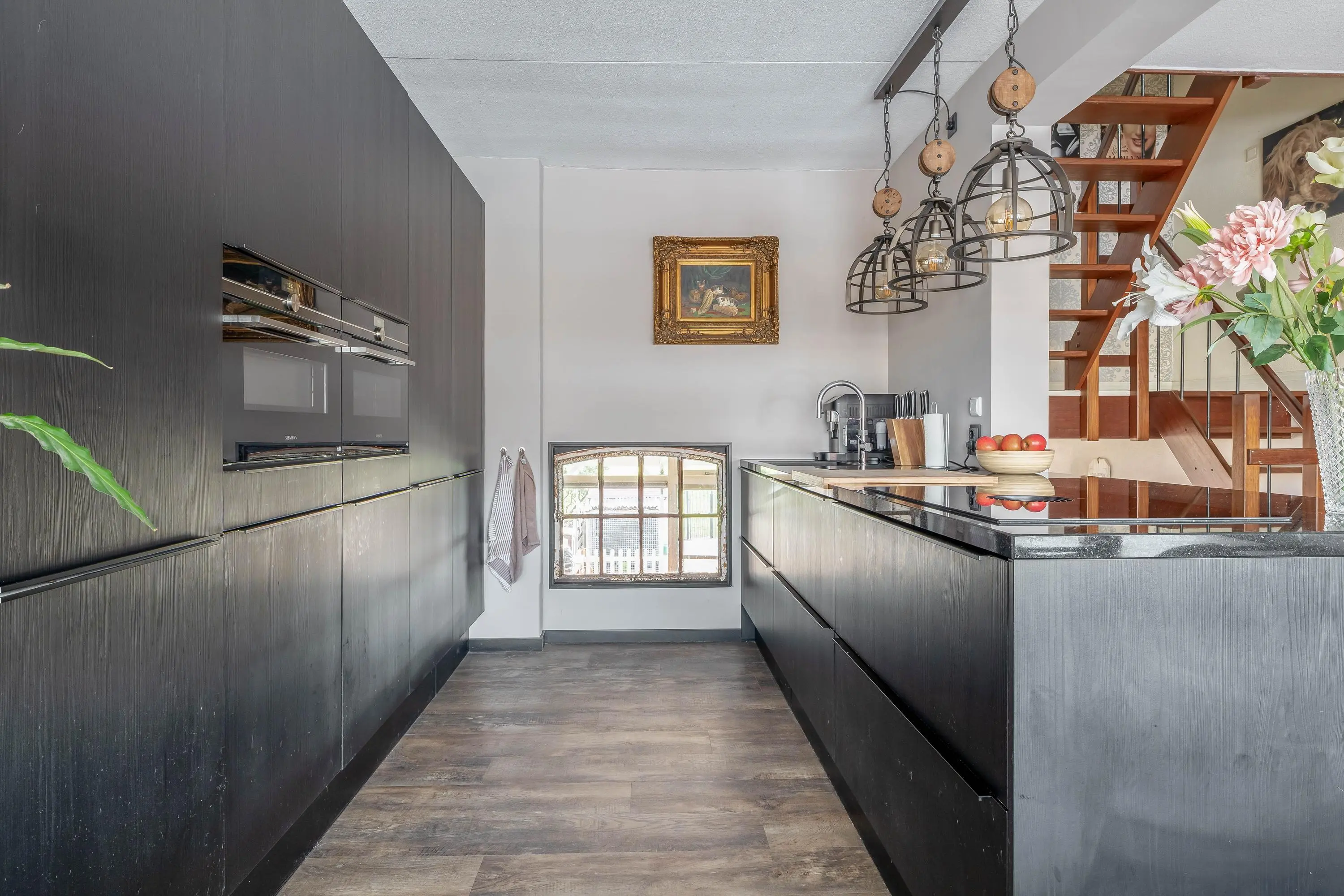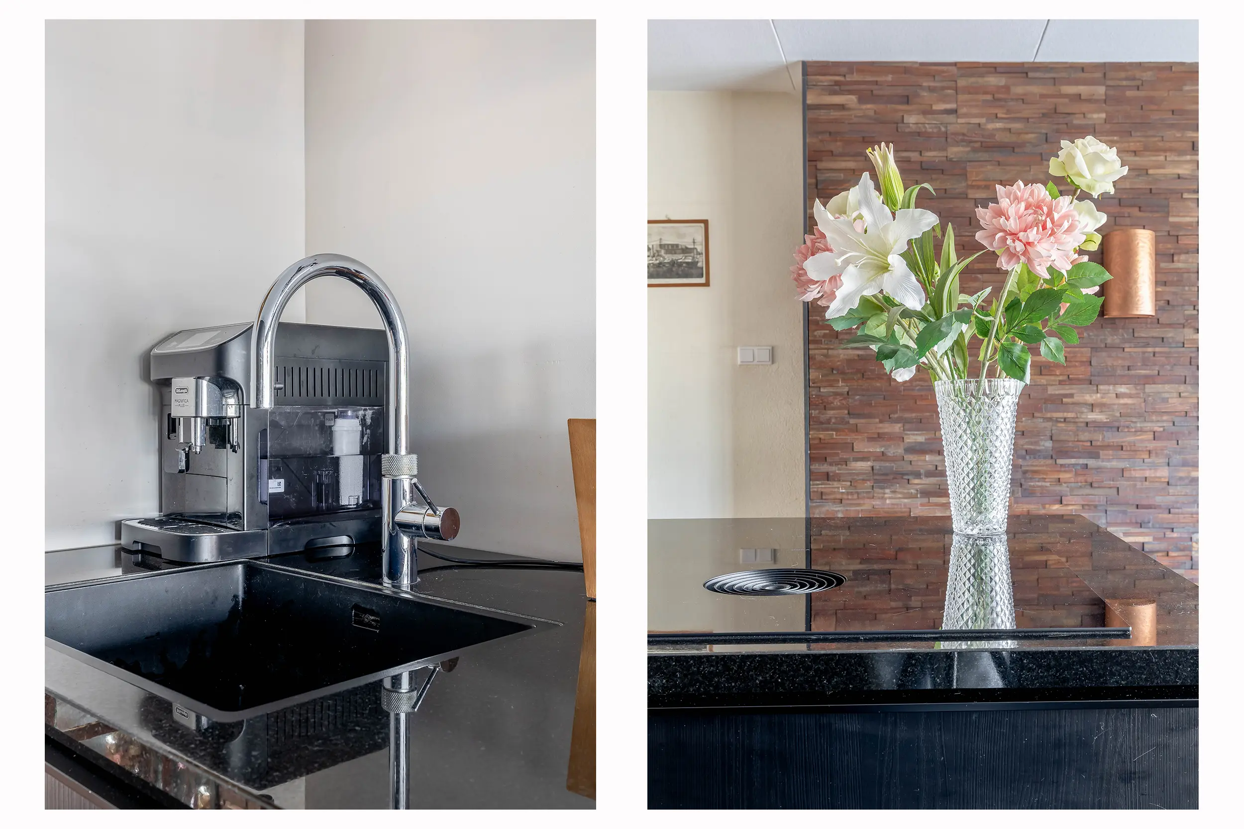 Op dit niveau treft u de moderne keuken met eethoek. De keuken is geplaatst in 2021 en is van alle gemakken voorzien. Zo beschikt deze over hoogwaardige inbouwapparatuur, waaronder een Bora inductiekookplaat met geïntegreerde afzuiging, een Quooker, combi-oven, stoomoven, vaatwasser en een koel-/vriescombinatie. Tevens is er een koolstoffilter aanwezig.