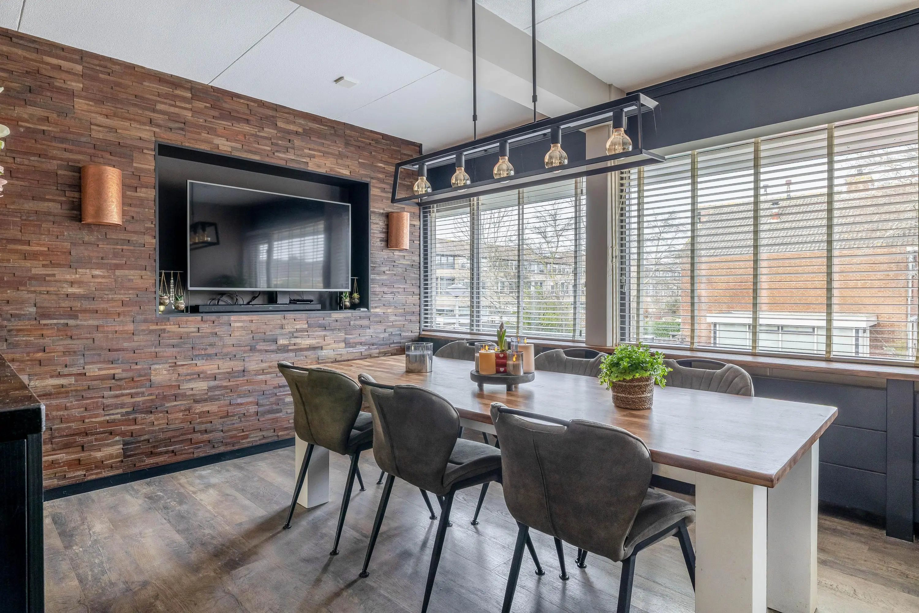 De eethoek biedt voldoende ruimte voor het plaatsen van een royale eettafel, ideaal voor gezellige diners met familie en vrienden. Daarnaast is dit niveau voorzien van een stijlvolle cinewall, wat extra sfeer en een luxe uitstraling aan de ruimte geeft.