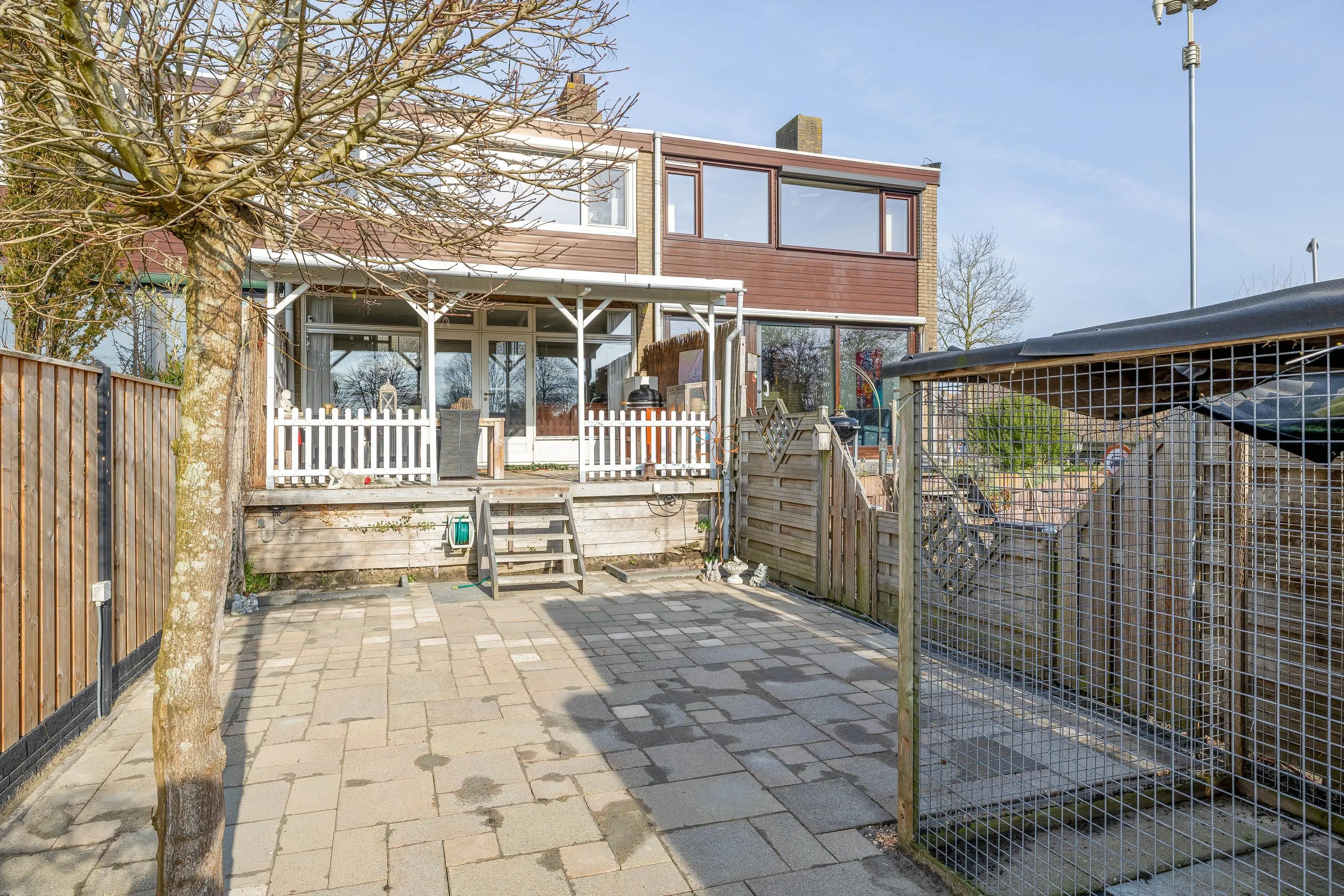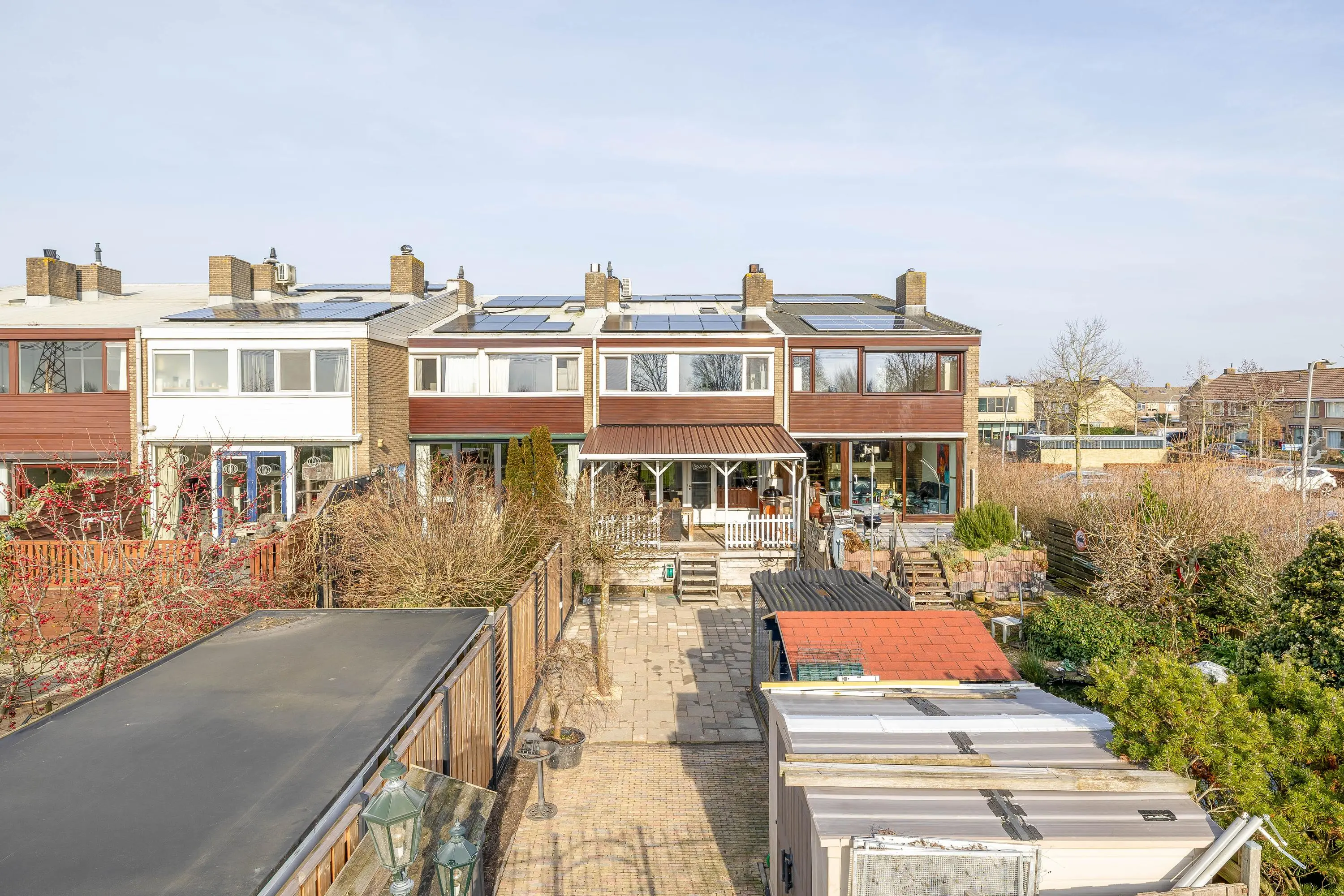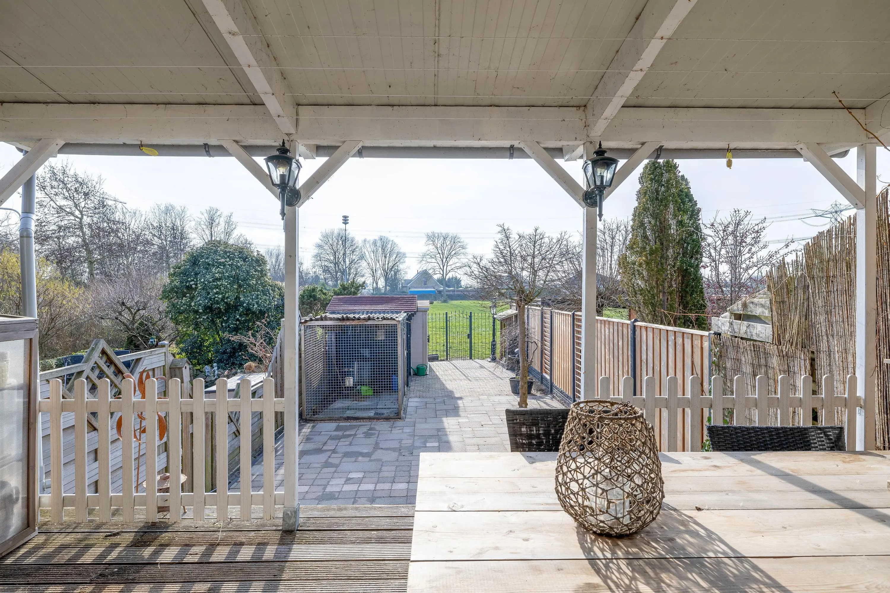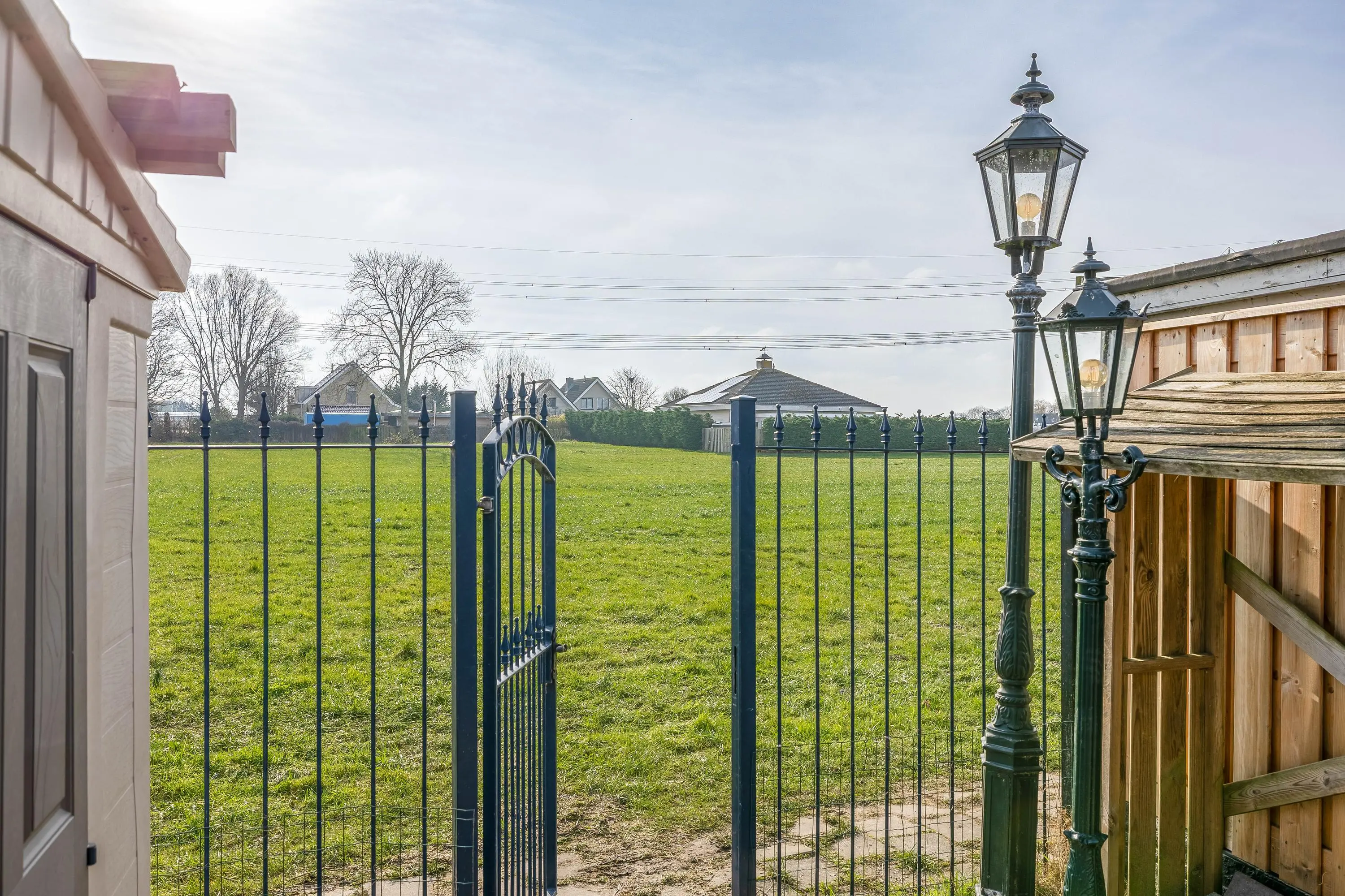De zonnige achtertuin op het zuidwesten biedt een heerlijke plek met veel privacy en een prachtig, blijvend vrij uitzicht over de achtergelegen landerijen. De tuin is onderhoudsvriendelijk aangelegd en beschikt over een verhoogd terras met een overkapping en een praktische berging. Dankzij de gunstige ligging geniet u hier de hele middag en avond van de zon. Een ideale plek voor wie houdt van rust, ruimte en buitenleven!