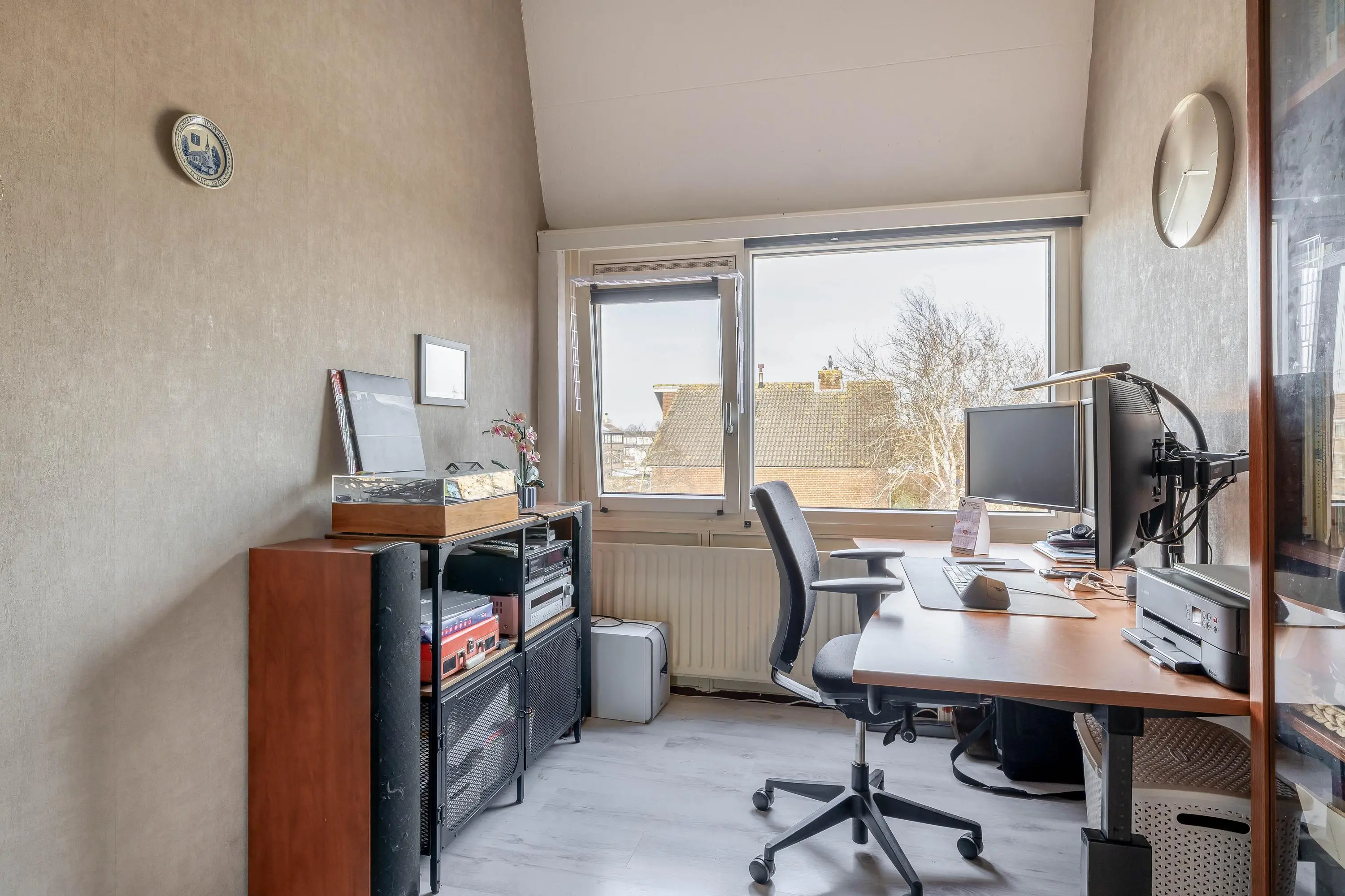 De overloop biedt toegang tot de twee overige slaapkamers, de badkamer en een praktische bergkast met daarin de Cv-opstelling.