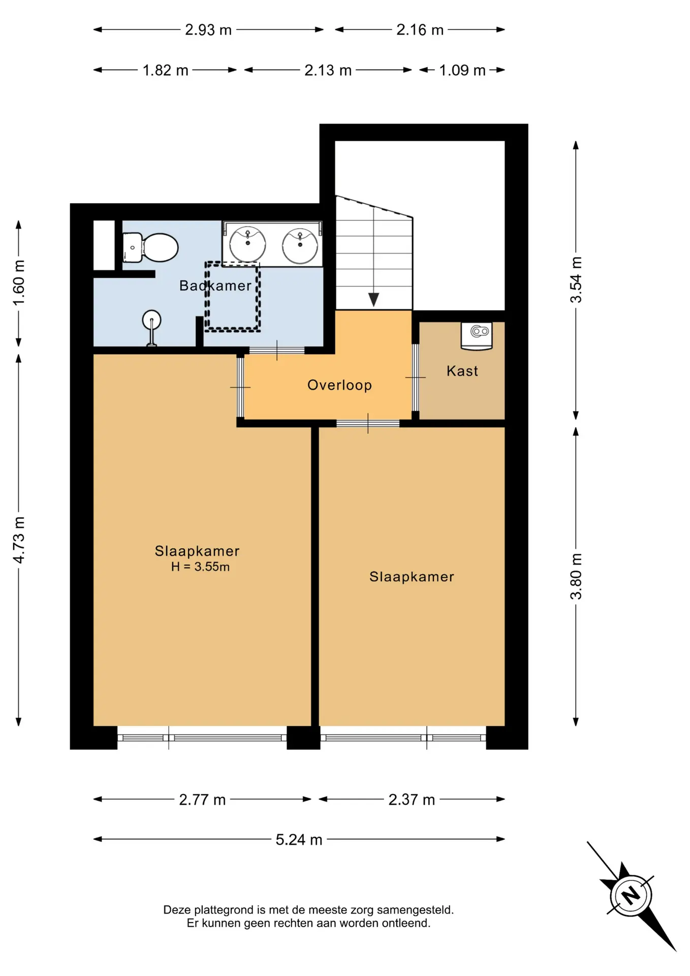 De tweede en derde slaapkamer bevinden zich aan de voorzijde van de woning en hebben een oppervlakte van respectievelijk circa 13m² en 9m². Ook deze kamers genieten van prettig daglicht.
