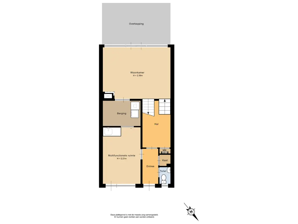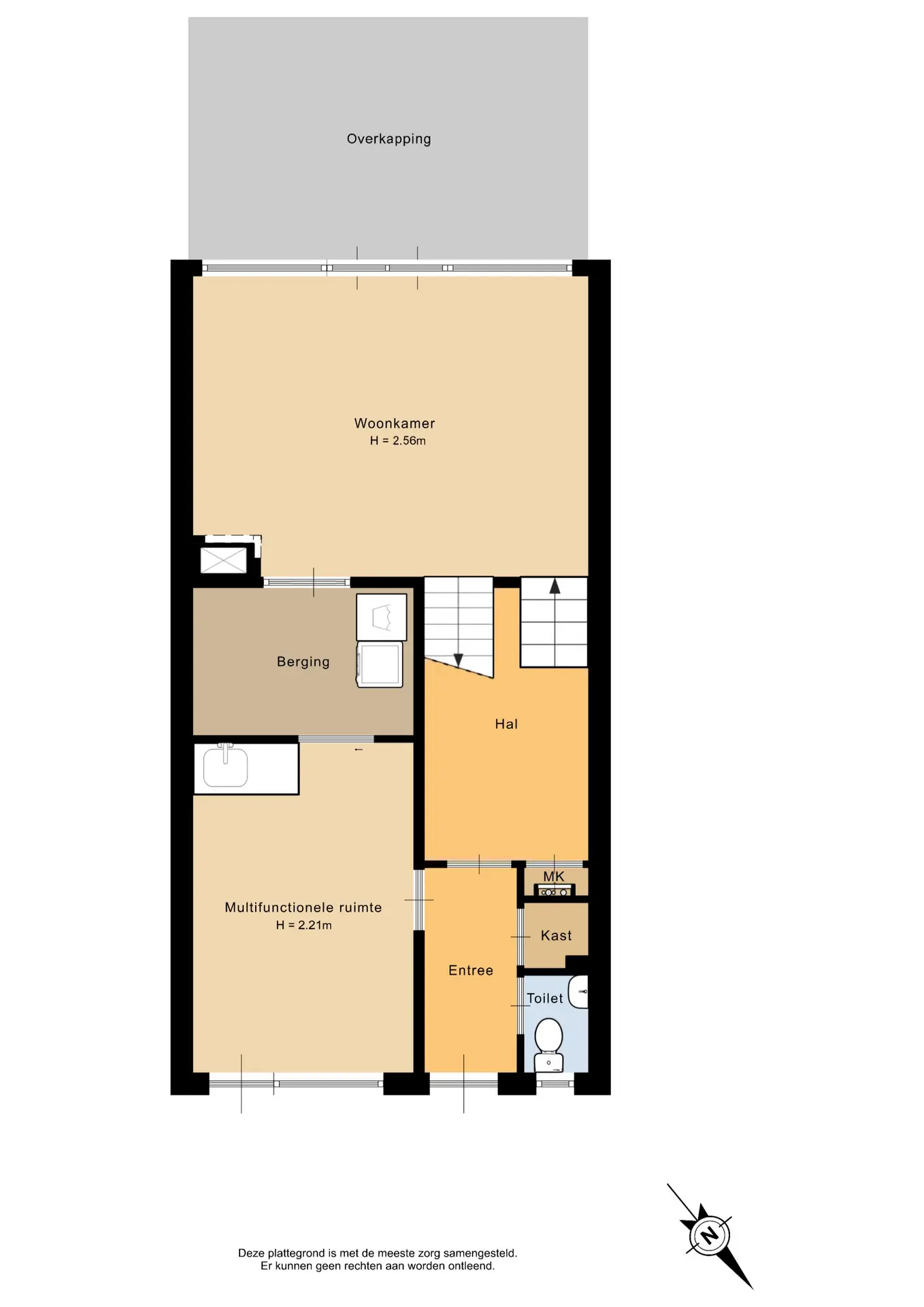 De multifunctionele ruimte heeft een oppervlakte van circa 12,5m² en is voorzien van een spoelbak. Vanuit deze ruimte is tevens de inpandige berging bereikbaar, waar zich de aansluitingen voor de wasmachine en droger bevinden. Dankzij deze voorzieningen is de ruimte uitermate praktisch in gebruik en geschikt voor diverse doeleinden, zoals een werk-, hobby- of praktijkruimte. De ruimte is netjes afgewerkt met een PVC-vloer.
