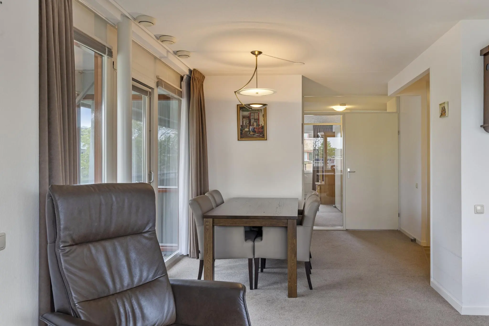 De woonkamer van circa 30m² is goed op te delen in een zit- en eetgedeelte. Vanwege de meerdere raampartijen is de living aangenaam licht en is er toegang tot het balkon met fijne ligging op het westen. Perfect om tot in de avond van de zon te genieten. Bovendien is het balkon uitgerust met zonwering.