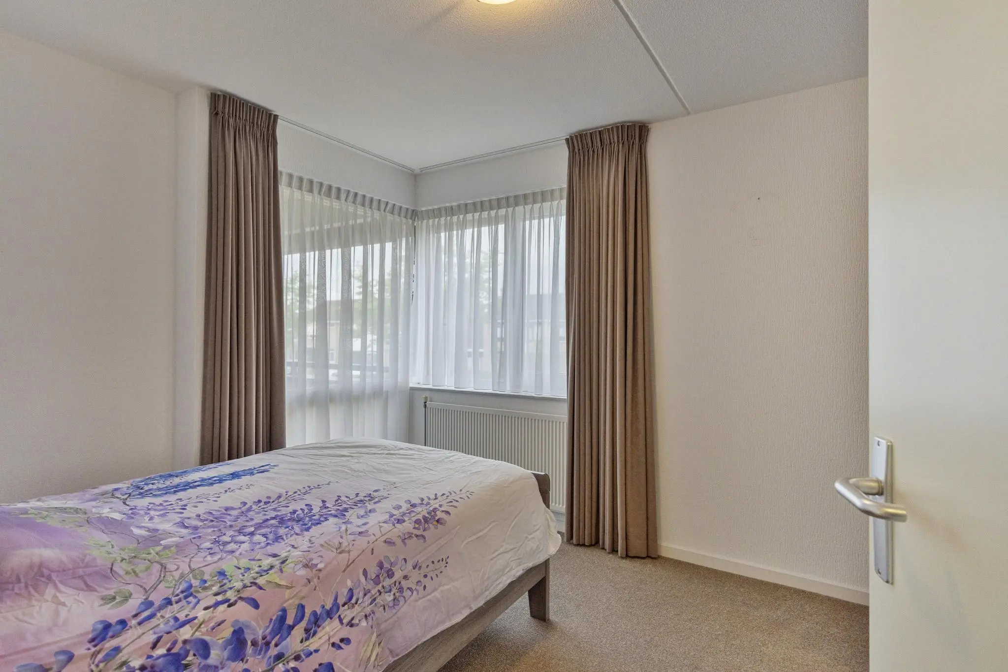 Bij binnenkomst stapt u de hal in, waar een tapijtvloer ligt die is doorgelegd in de hele woning, met uitzondering van de keuken. Vanuit de hal heeft u toegang tot alle vertrekken en hier vindt u de videofoon. Aan de rechterzijde bevinden zich het separate toilet, de badkamer en de eerste slaapkamer van circa 13m². Vanuit de hal is er dus ook toegang tot de tweede slaapkamer met een oppervlakte van ongeveer 11m².