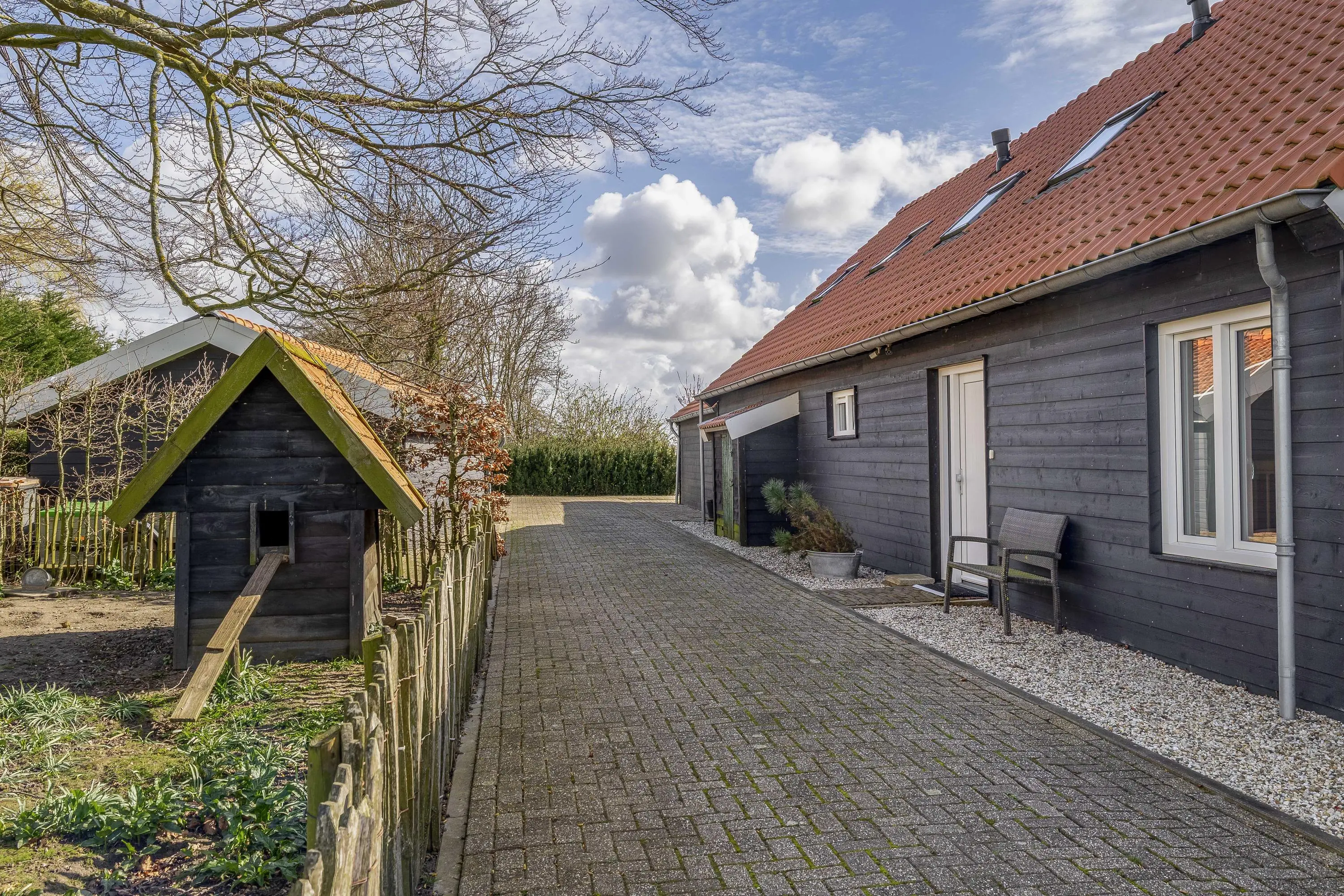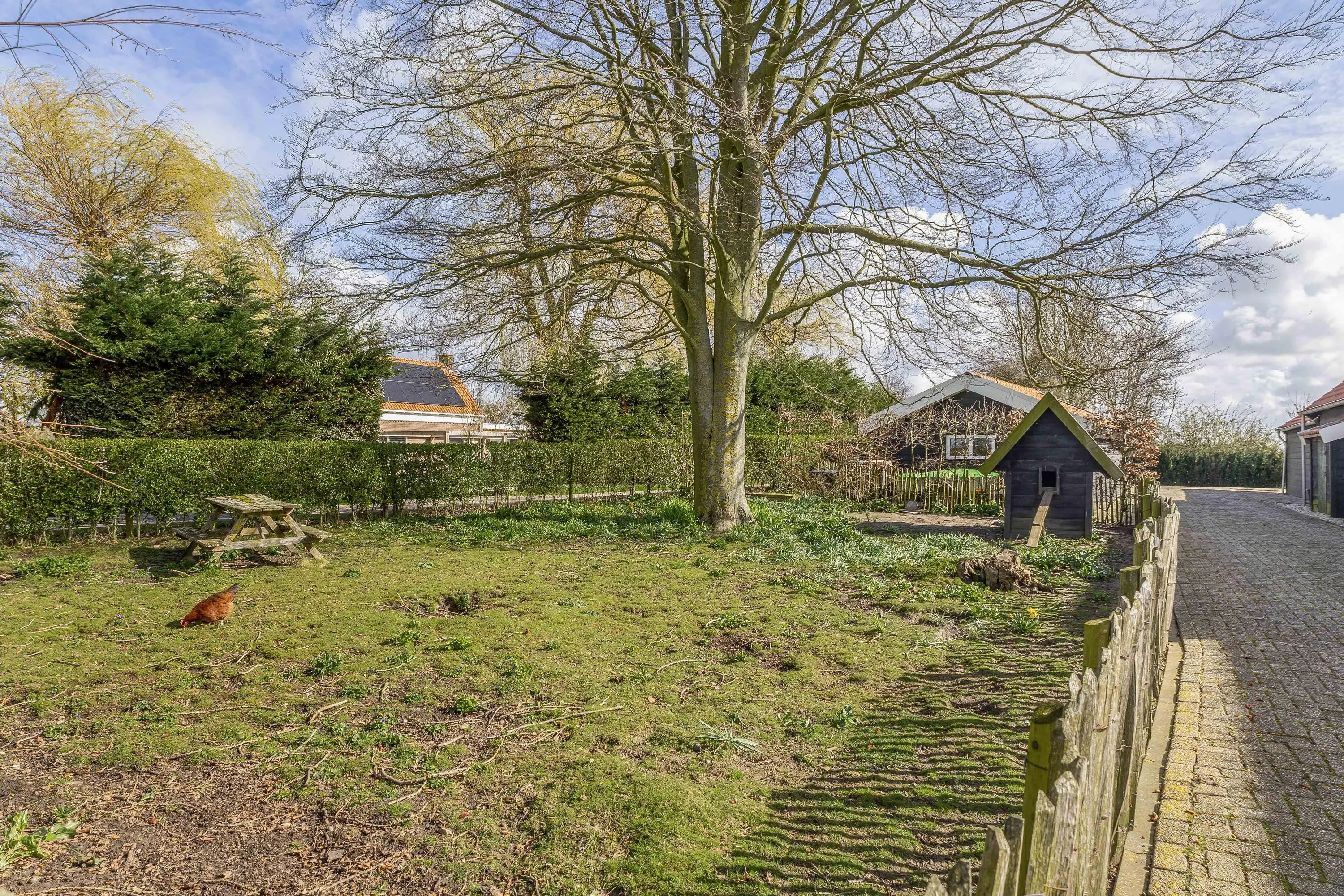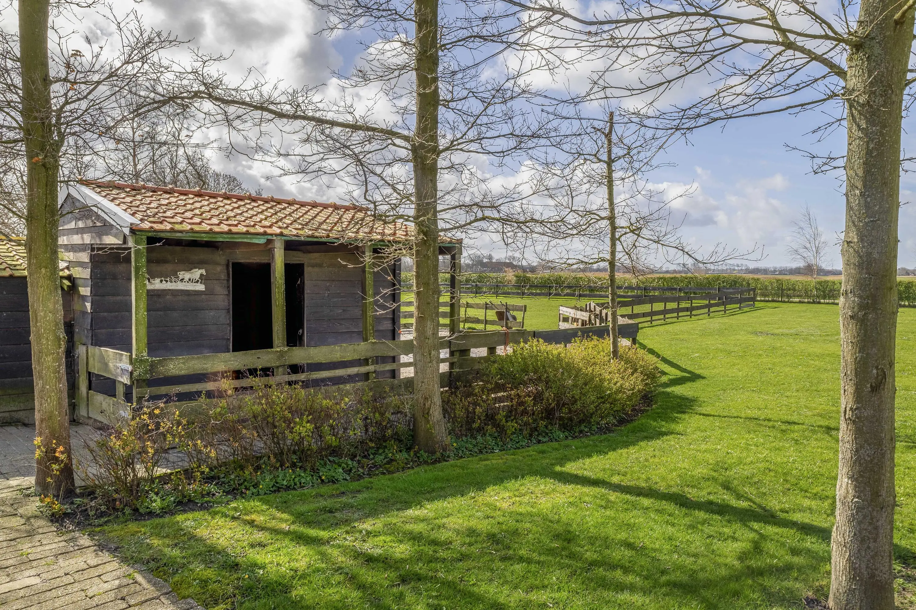 Voor de paarden- of kleindierliefhebber is dit een absolute droomlocatie. Het perceel beschikt over een keurig omheinde paddock met aangrenzende houten stalruimte, waardoor het houden van dieren aan huis direct mogelijk is. Daarnaast is er een charmant, apart omheind gedeelte met een houten nachthok aanwezig.