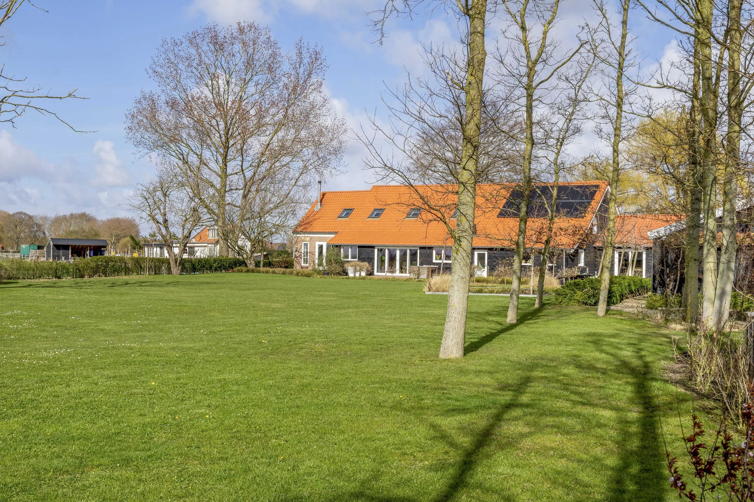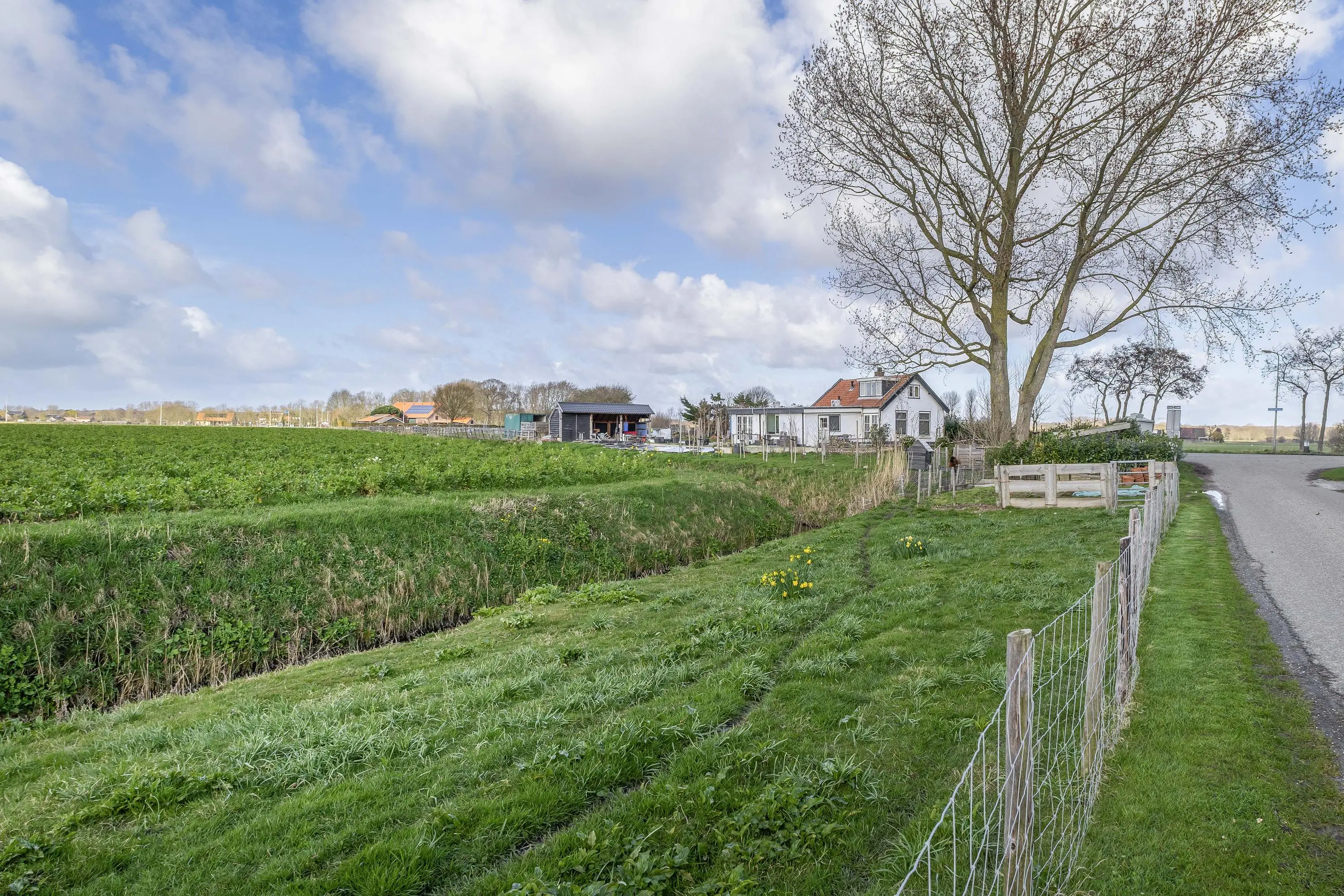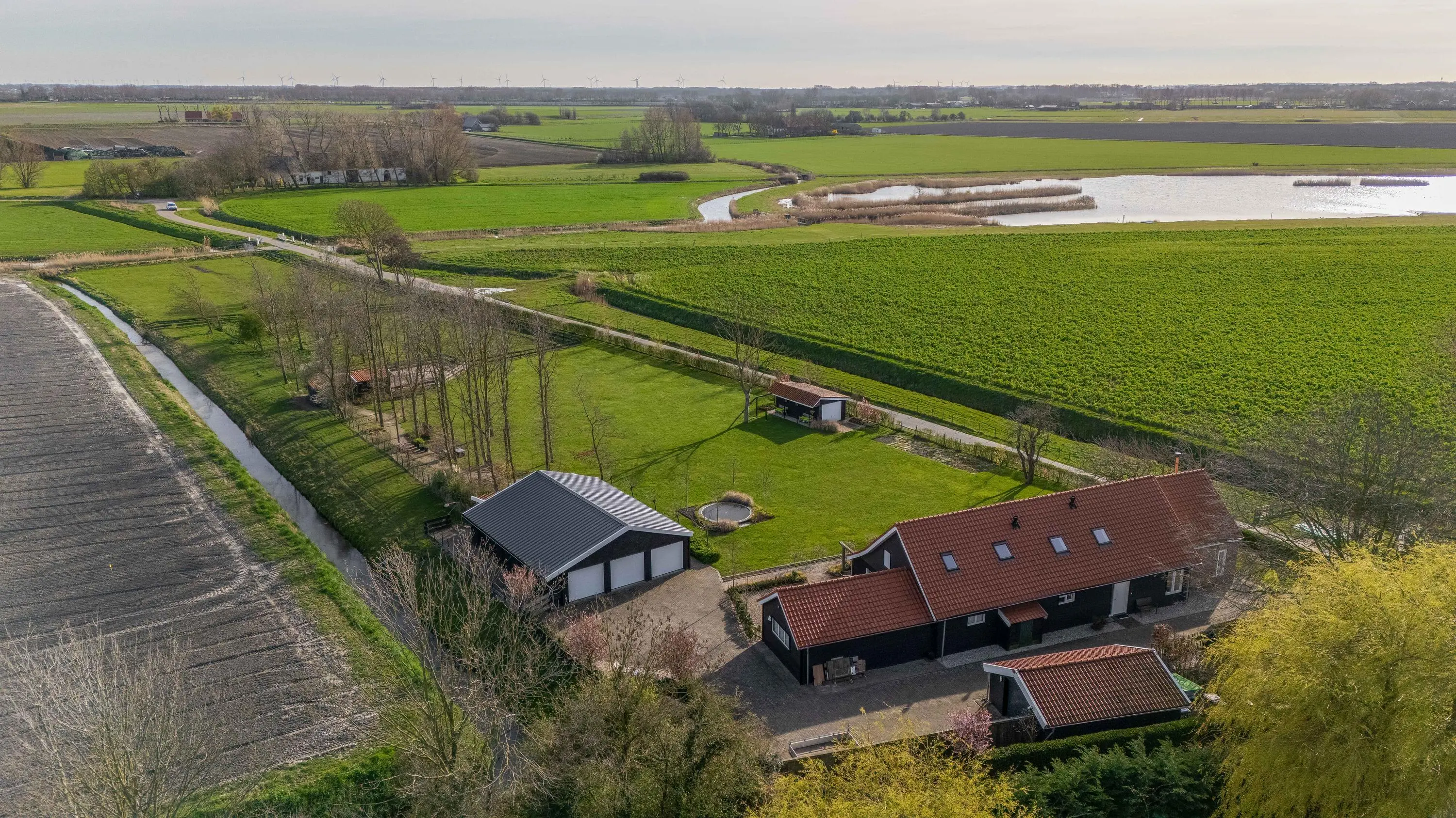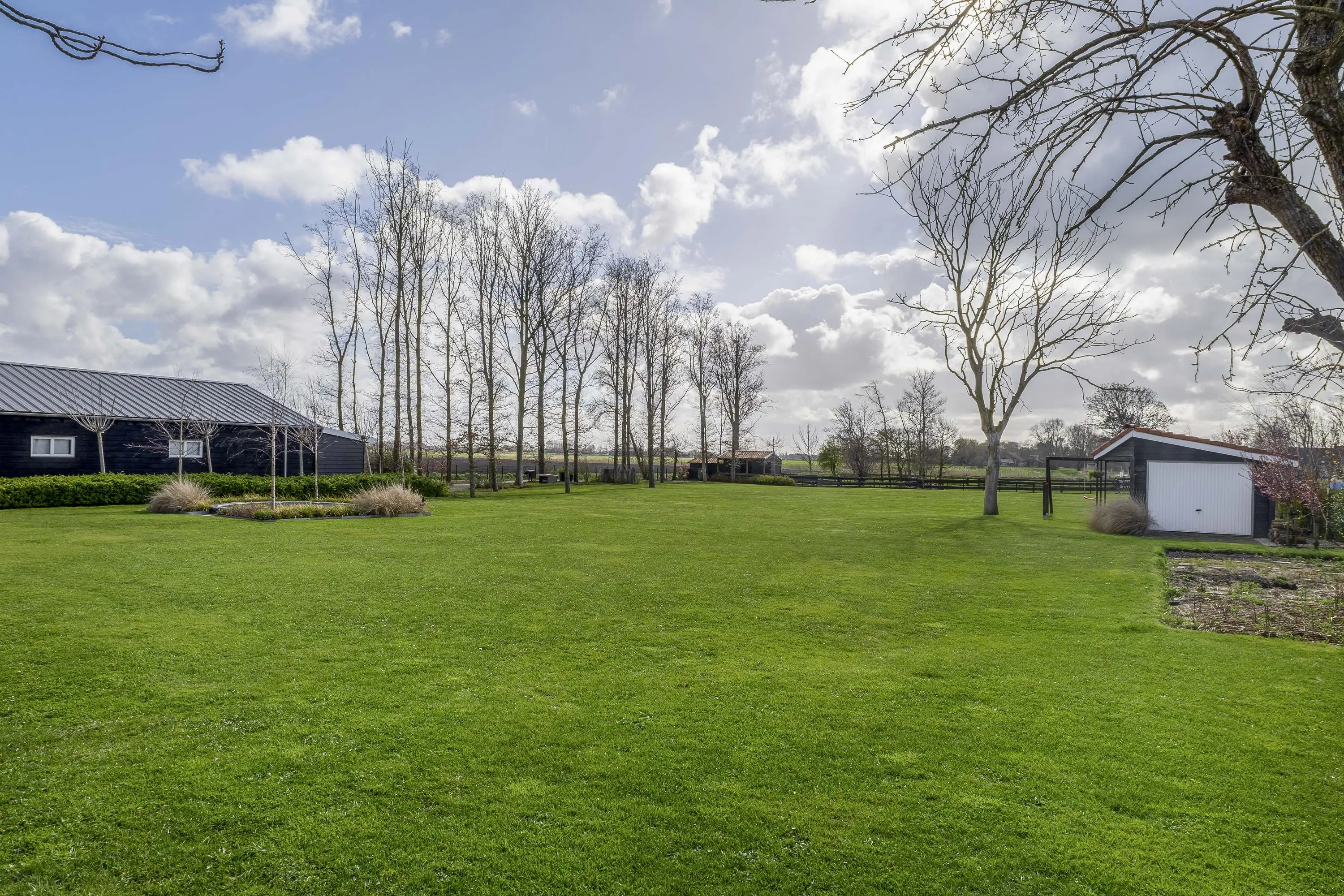 De buitenruimte biedt een unieke beleving; een zeldzame mate van vrijheid en privacy. Het gehele perceel van maar liefst 10.085m² is met zorg en oog voor detail aangelegd, waardoor er een rustgevende sfeer is ontstaan die naadloos overvloeit in het polderlandschap.