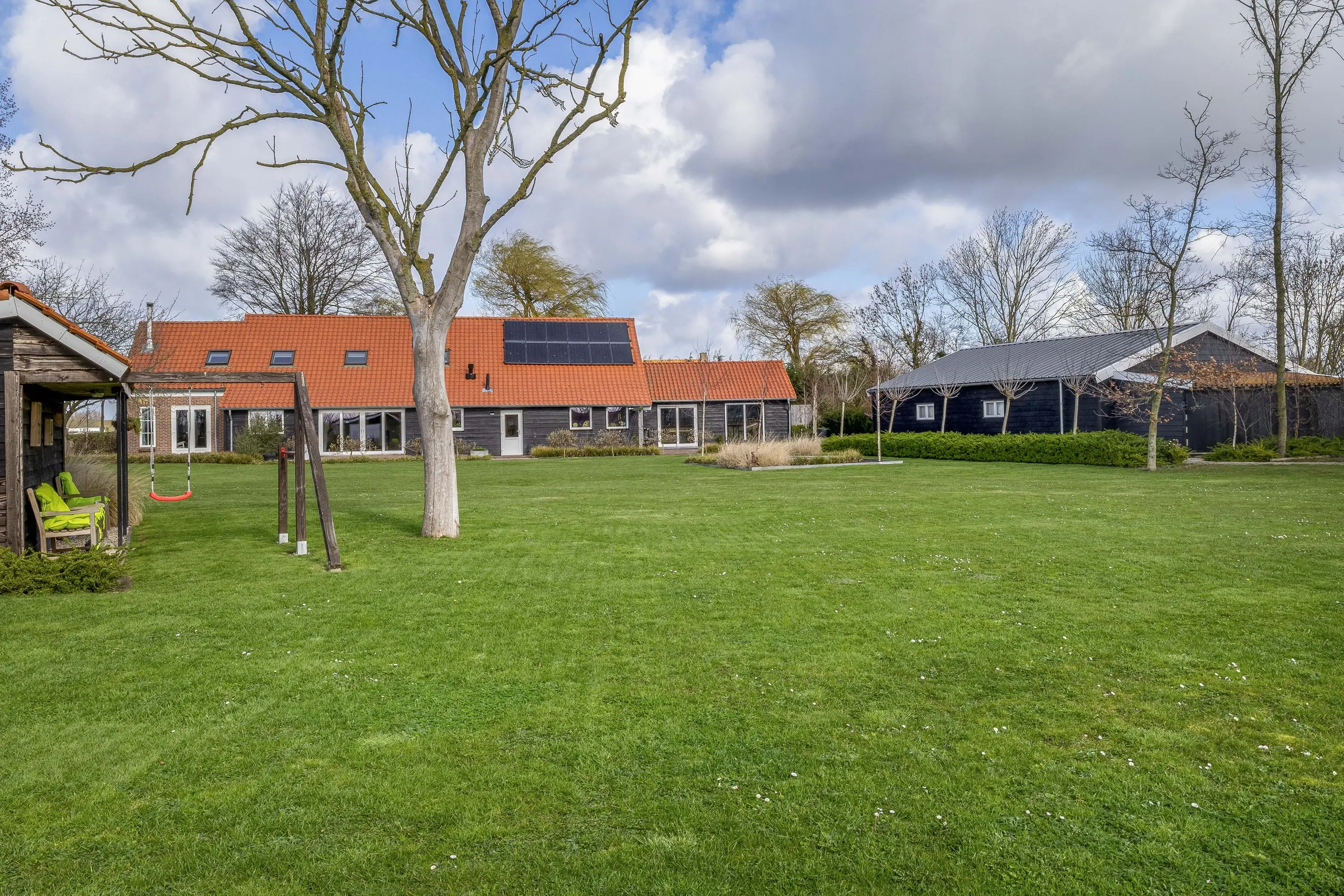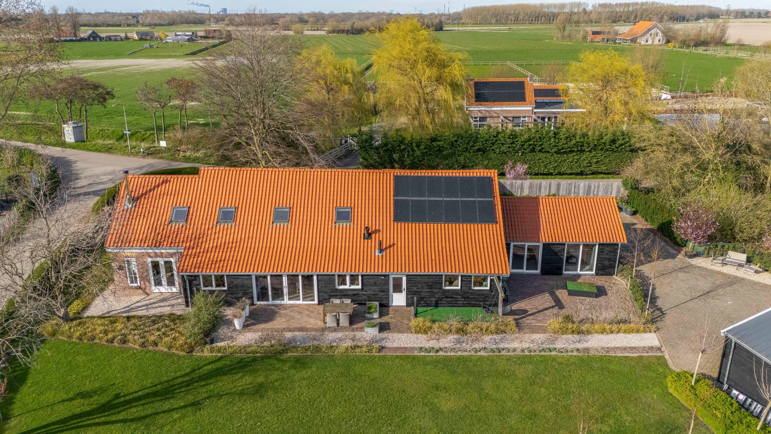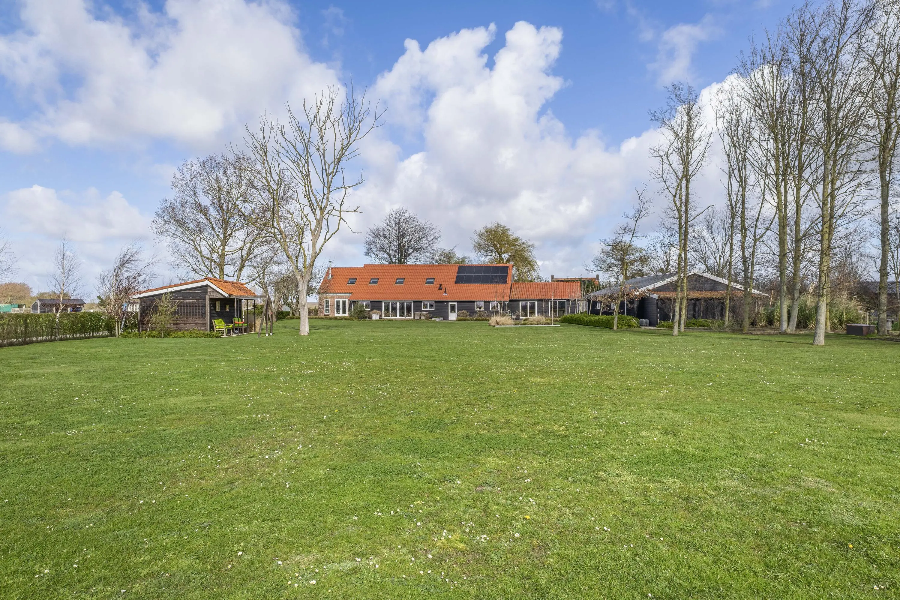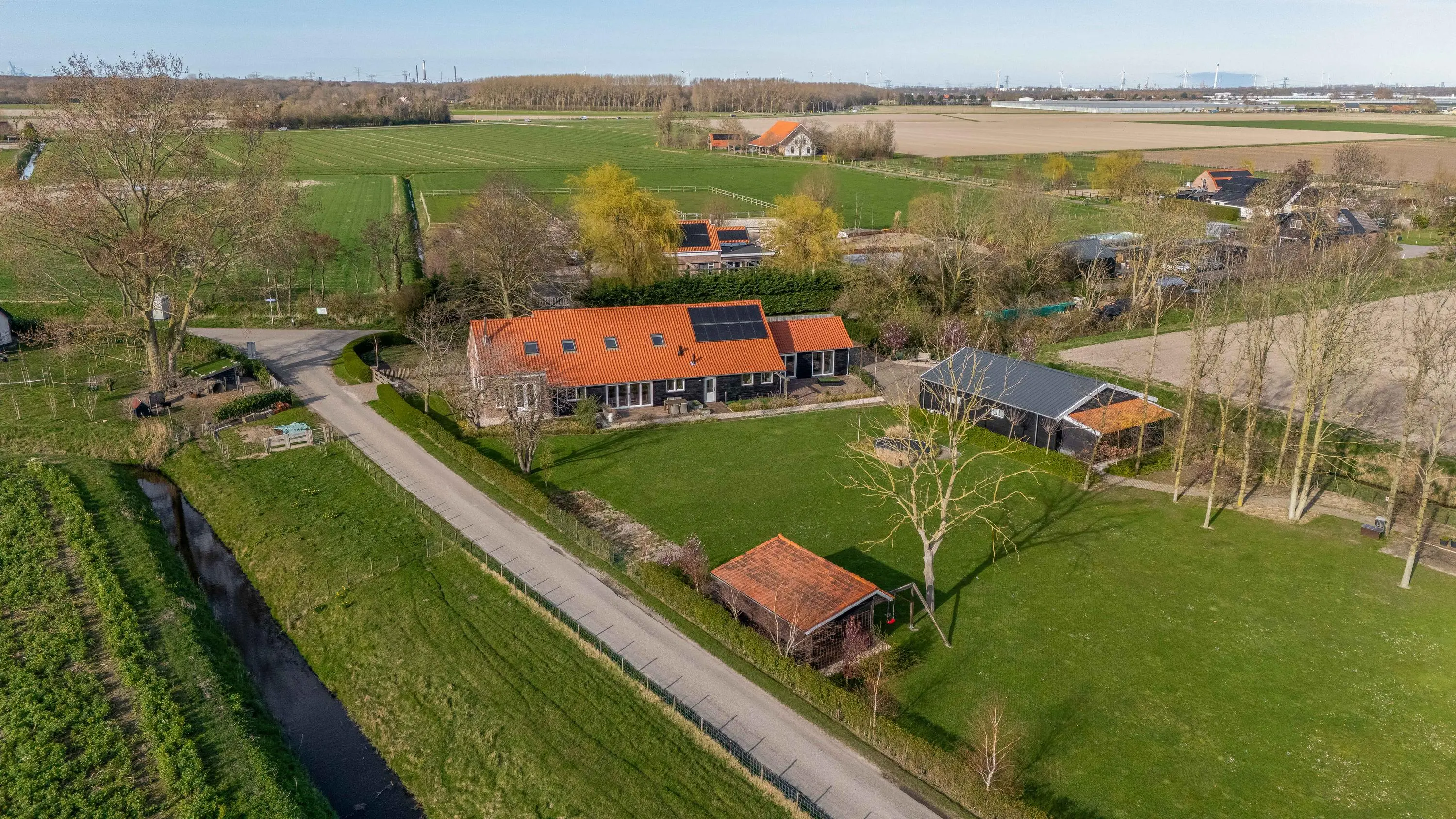 De buitenruimte biedt een unieke beleving; een zeldzame mate van vrijheid en privacy. Het gehele perceel van maar liefst 10.085m² is met zorg en oog voor detail aangelegd, waardoor er een rustgevende sfeer is ontstaan die naadloos overvloeit in het polderlandschap.