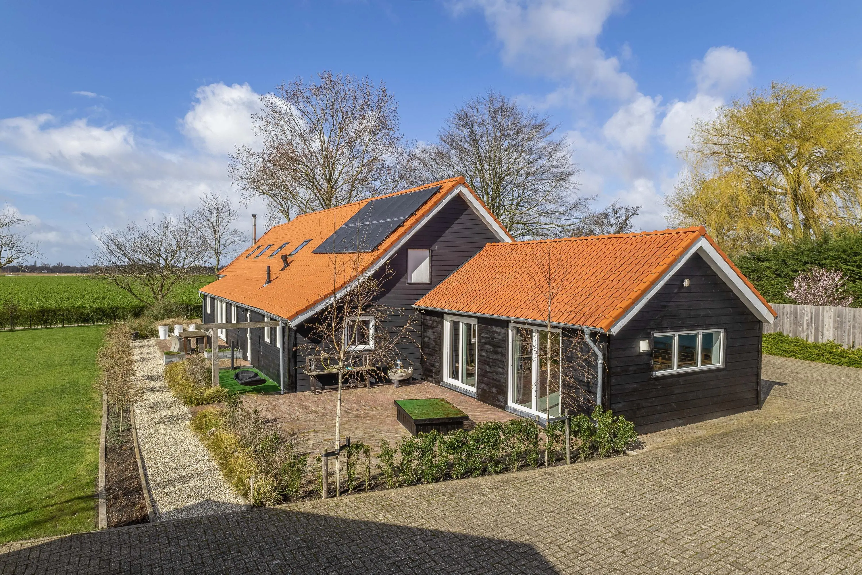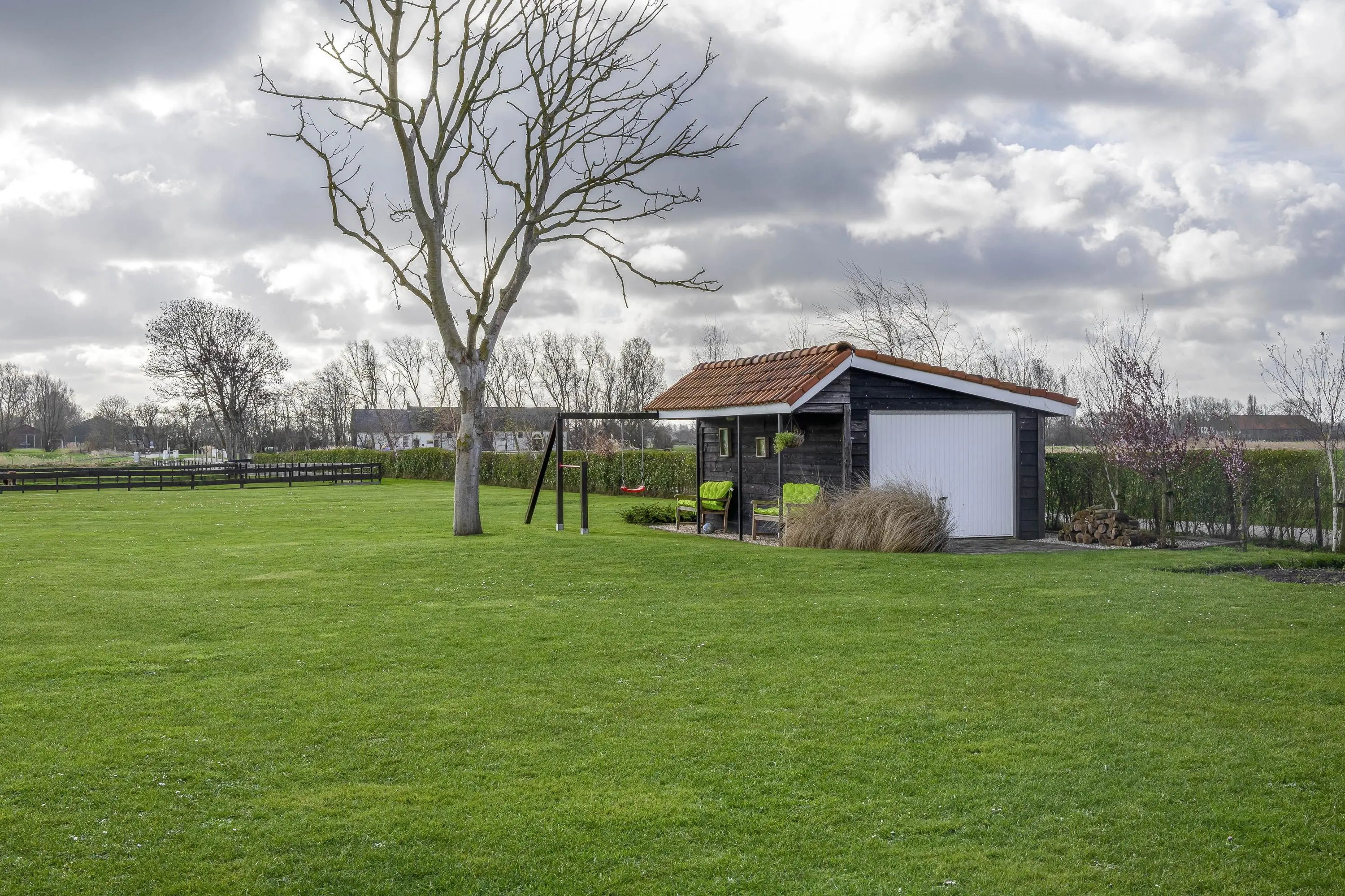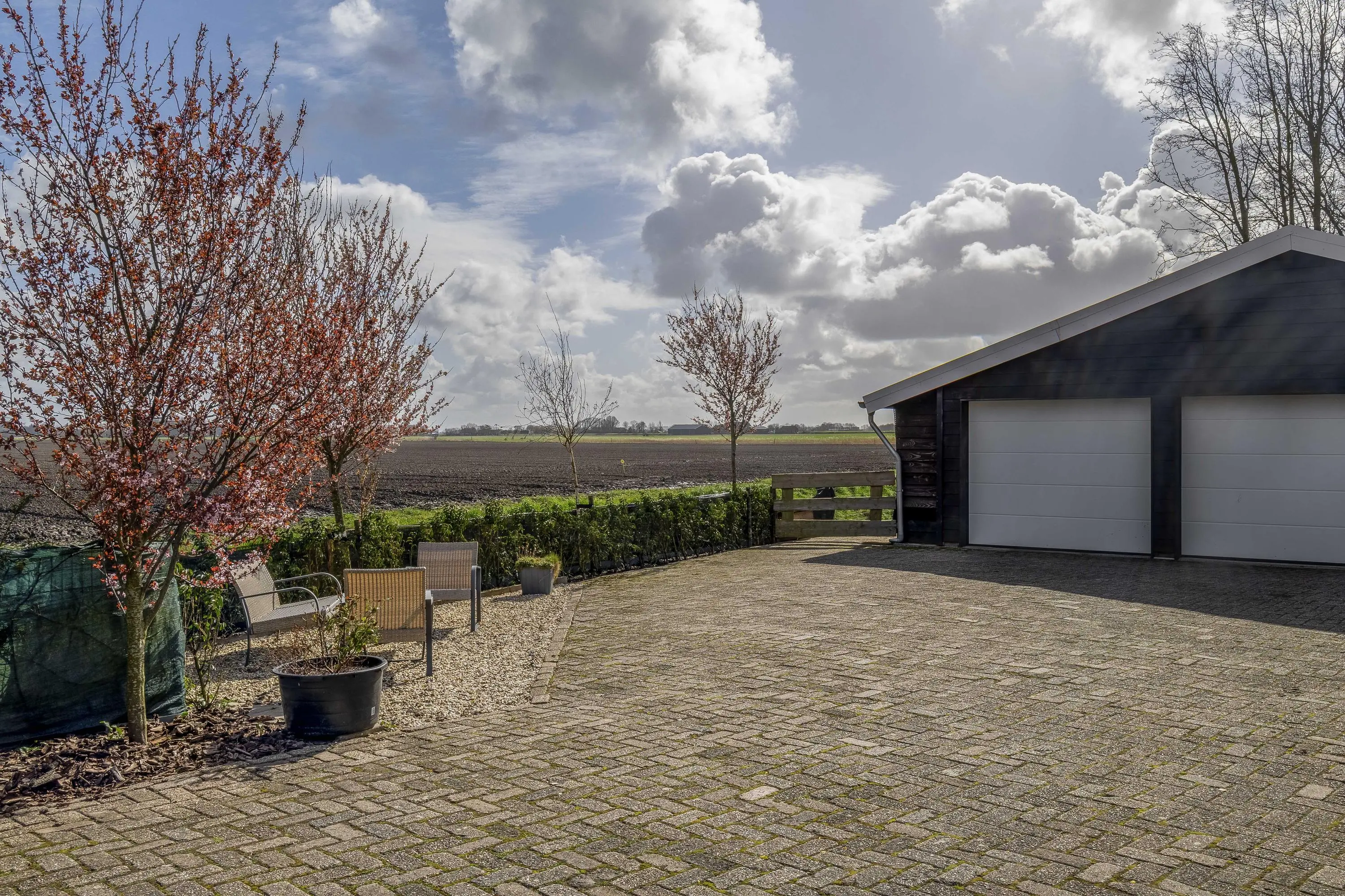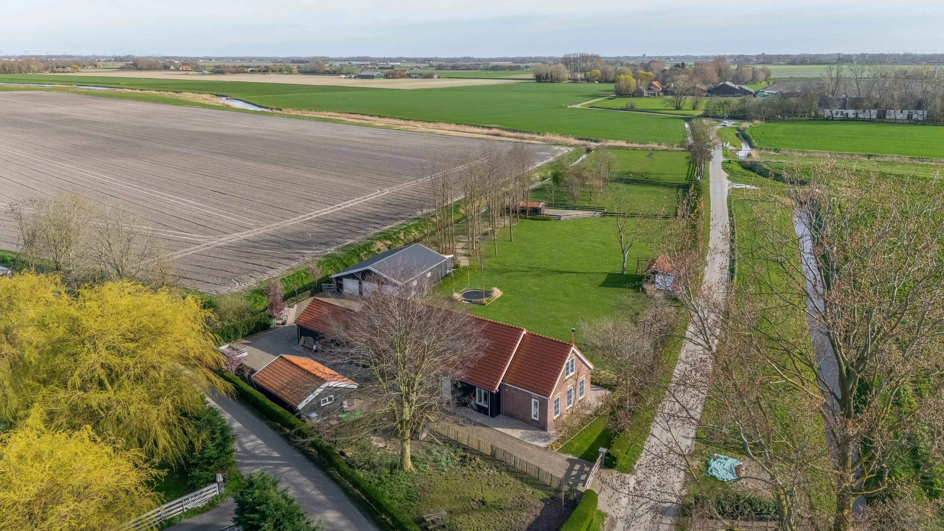 De buitenruimte biedt een unieke beleving; een zeldzame mate van vrijheid en privacy. Het gehele perceel van maar liefst 10.085m² is met zorg en oog voor detail aangelegd, waardoor er een rustgevende sfeer is ontstaan die naadloos overvloeit in het polderlandschap.