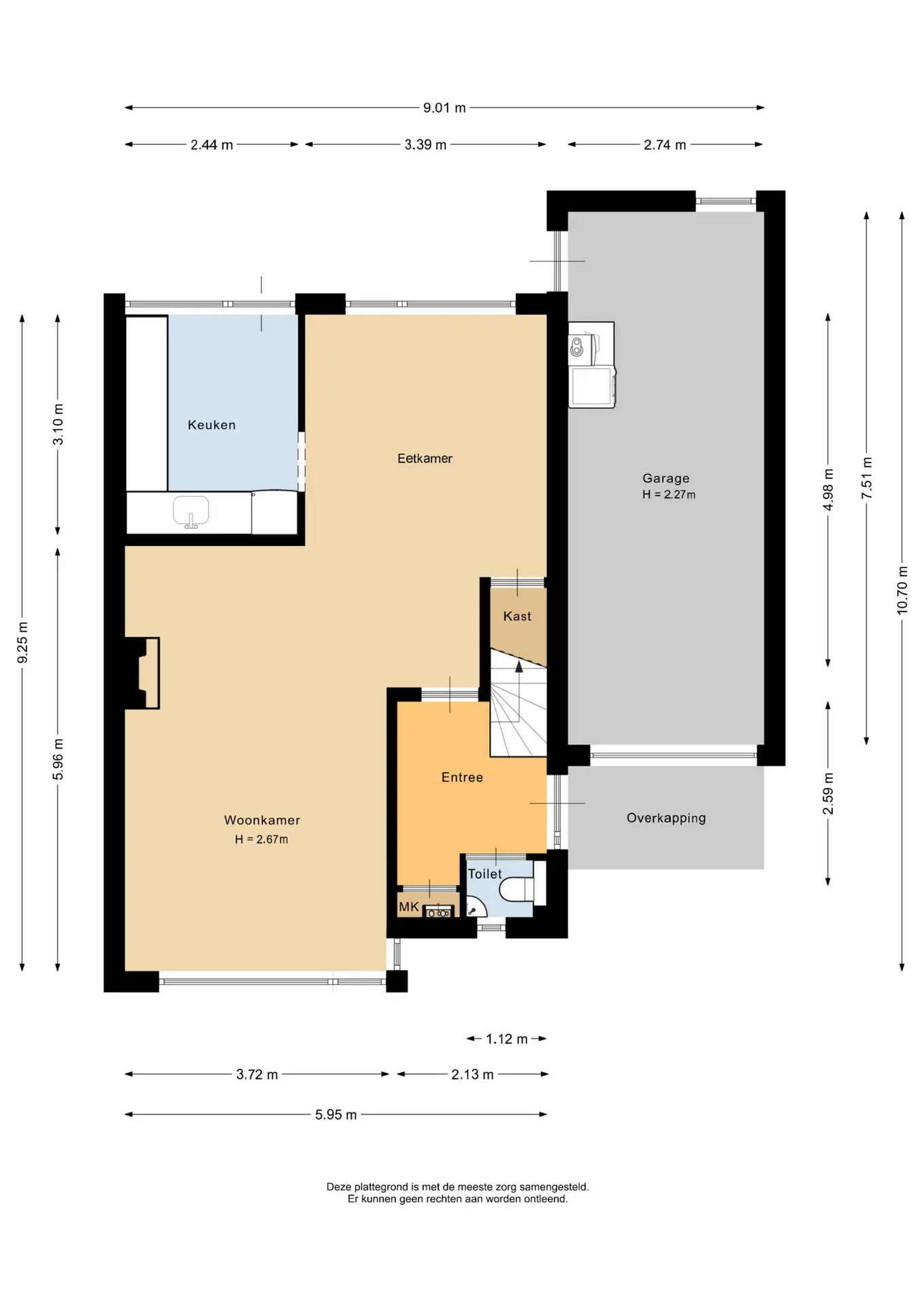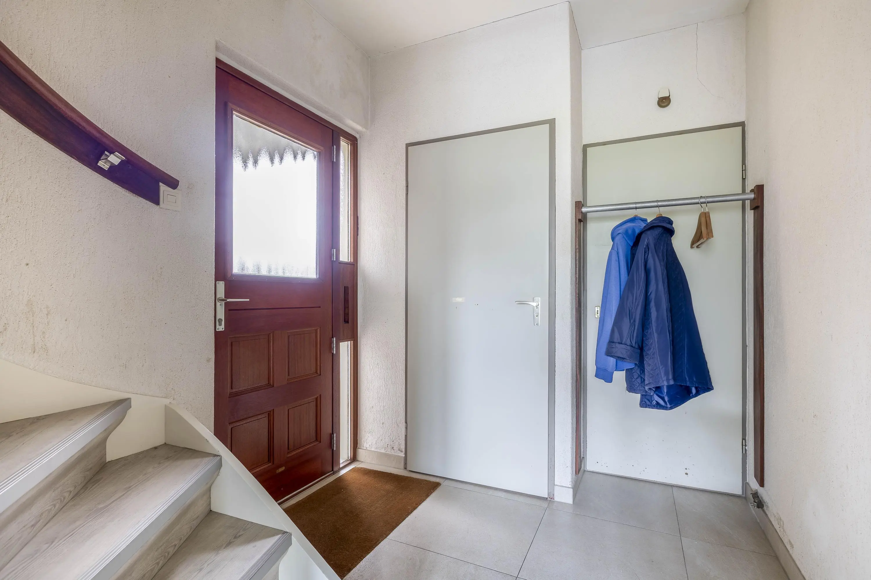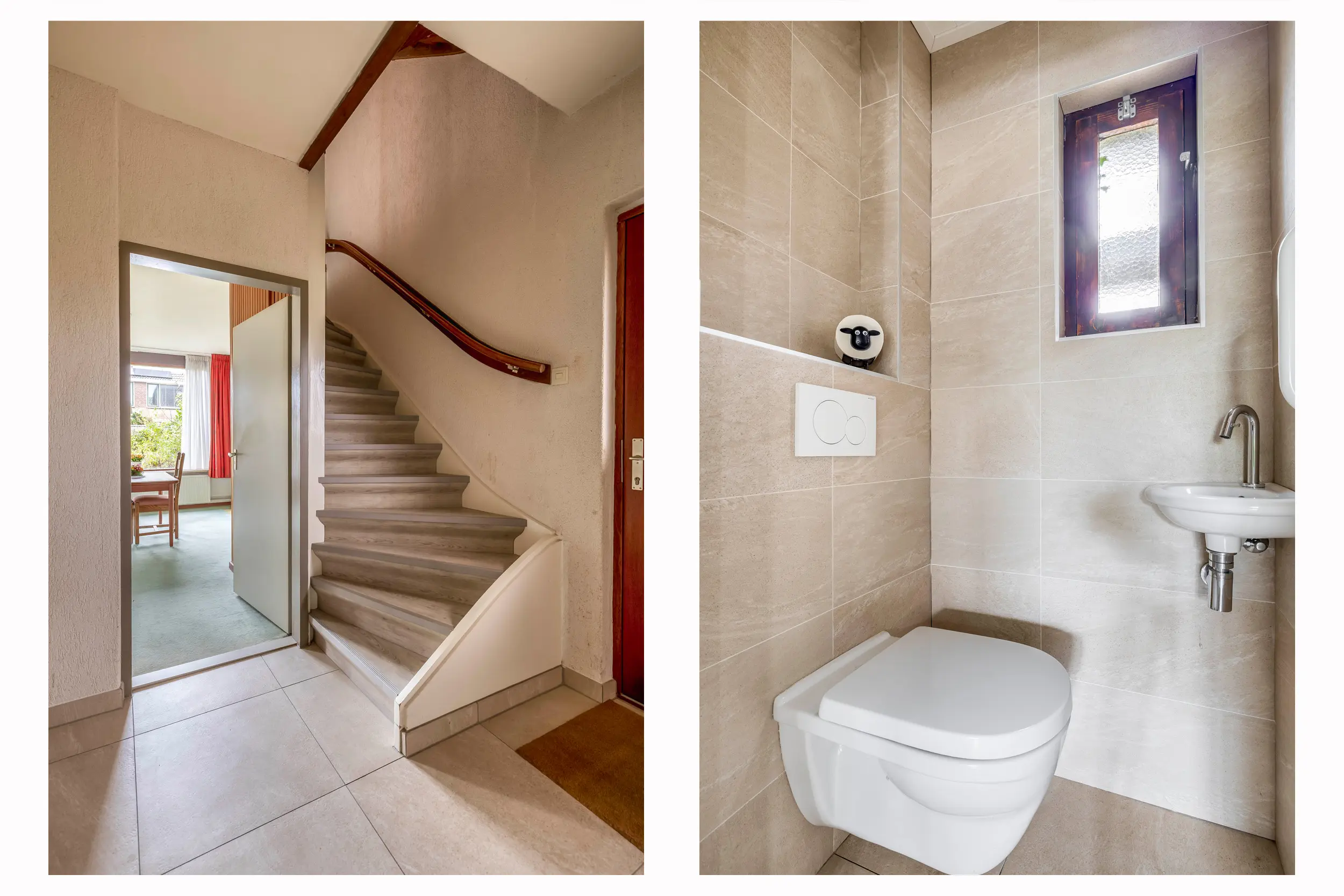 Bij binnenkomst betreedt u de hal, waar u de meterkast vindt, toegang heeft tot het separate toilet met fonteintje en de trapopgang naar de eerste verdieping. Vanuit de hal loopt u rechtstreeks de lichte leefruimte in.