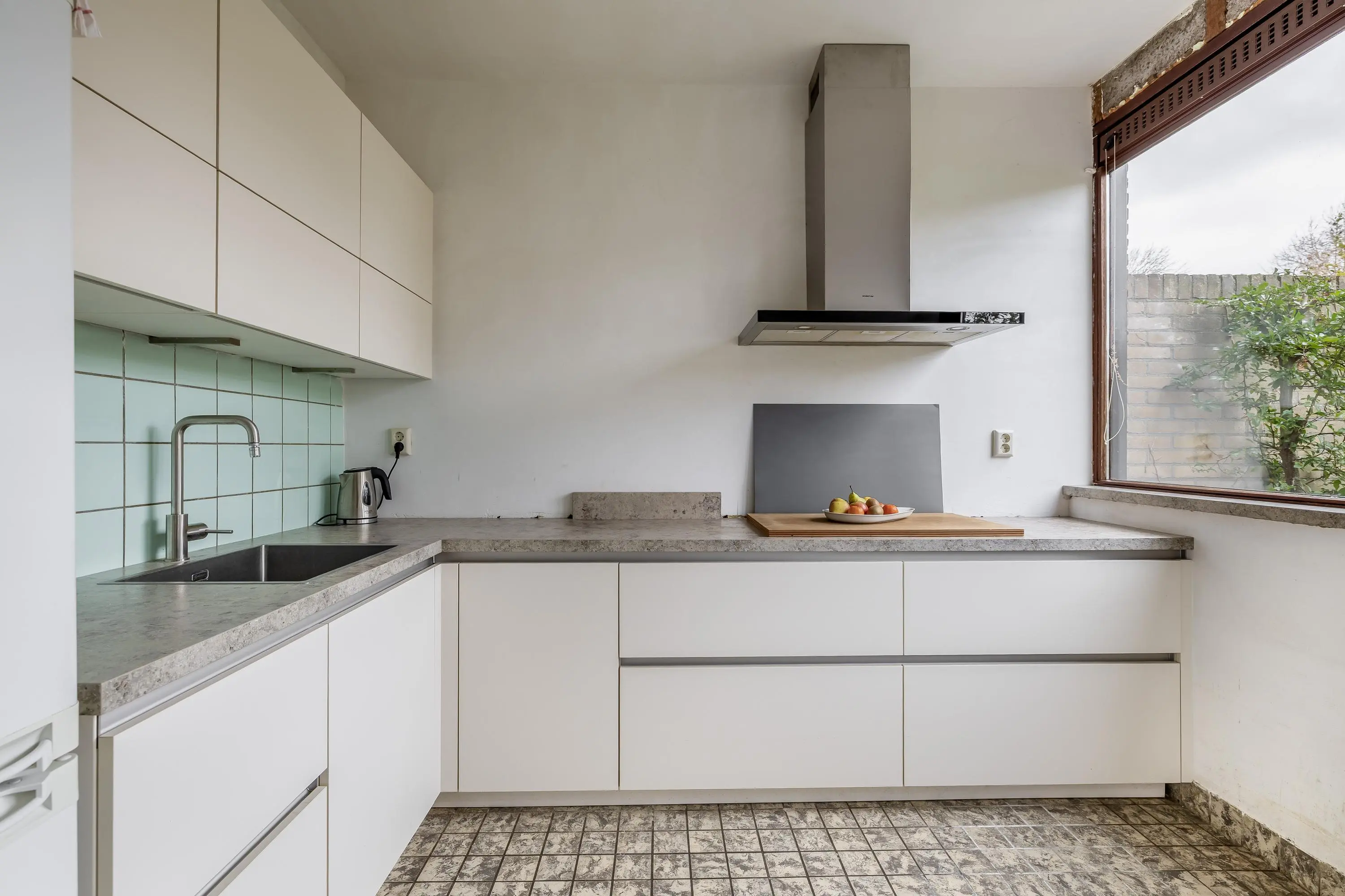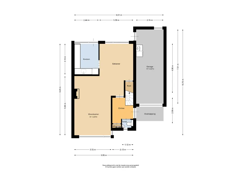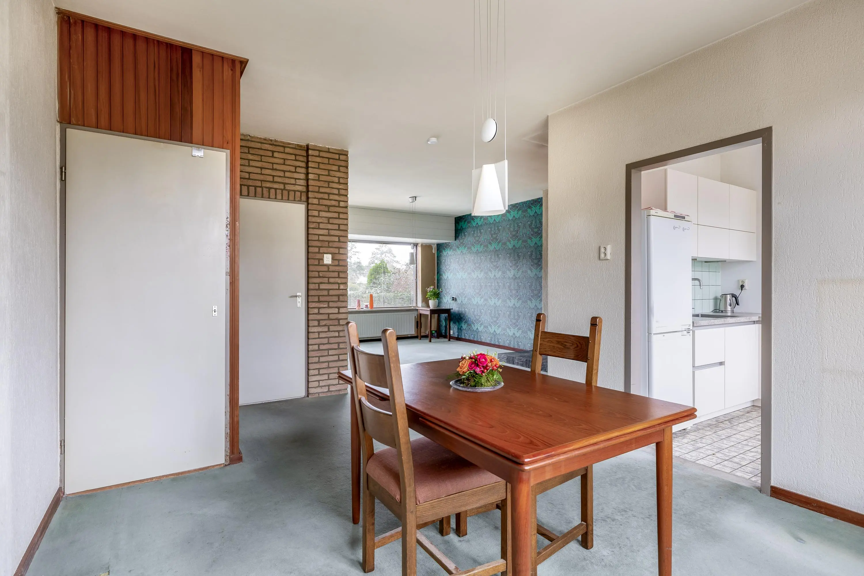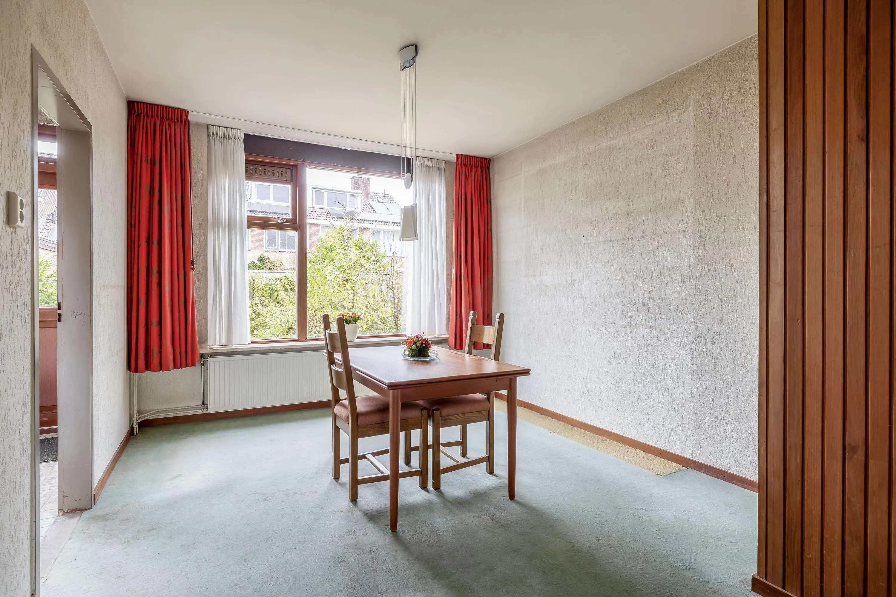 De living is heerlijk ruim en voorzien van vloerbedekking, met voldoende plek voor een zithoek en een eethoek. De keuken is eenvoudig uitgevoerd in een L-opstelling en heeft een tegelvloer. Vanuit de keuken is de achtertuin direct bereikbaar via een enkele deur.