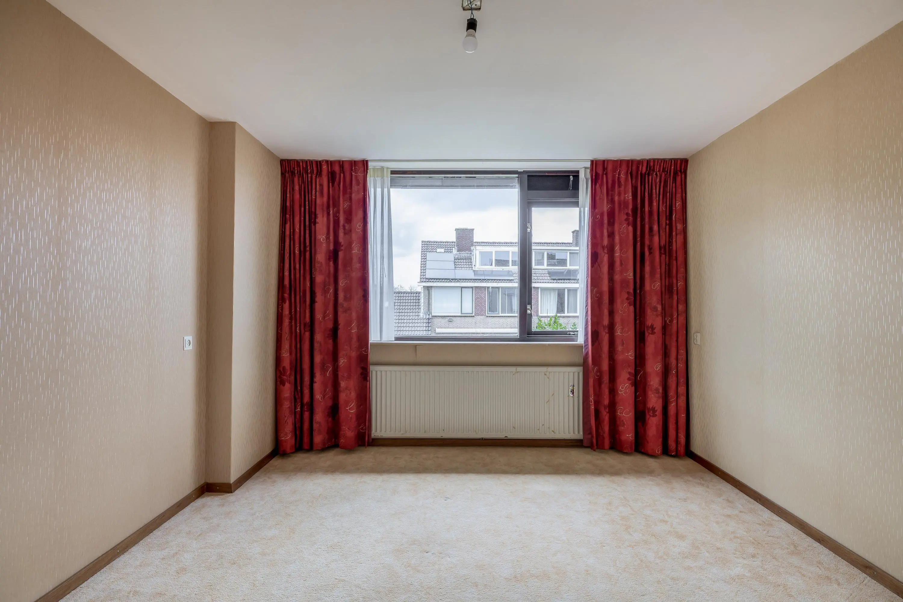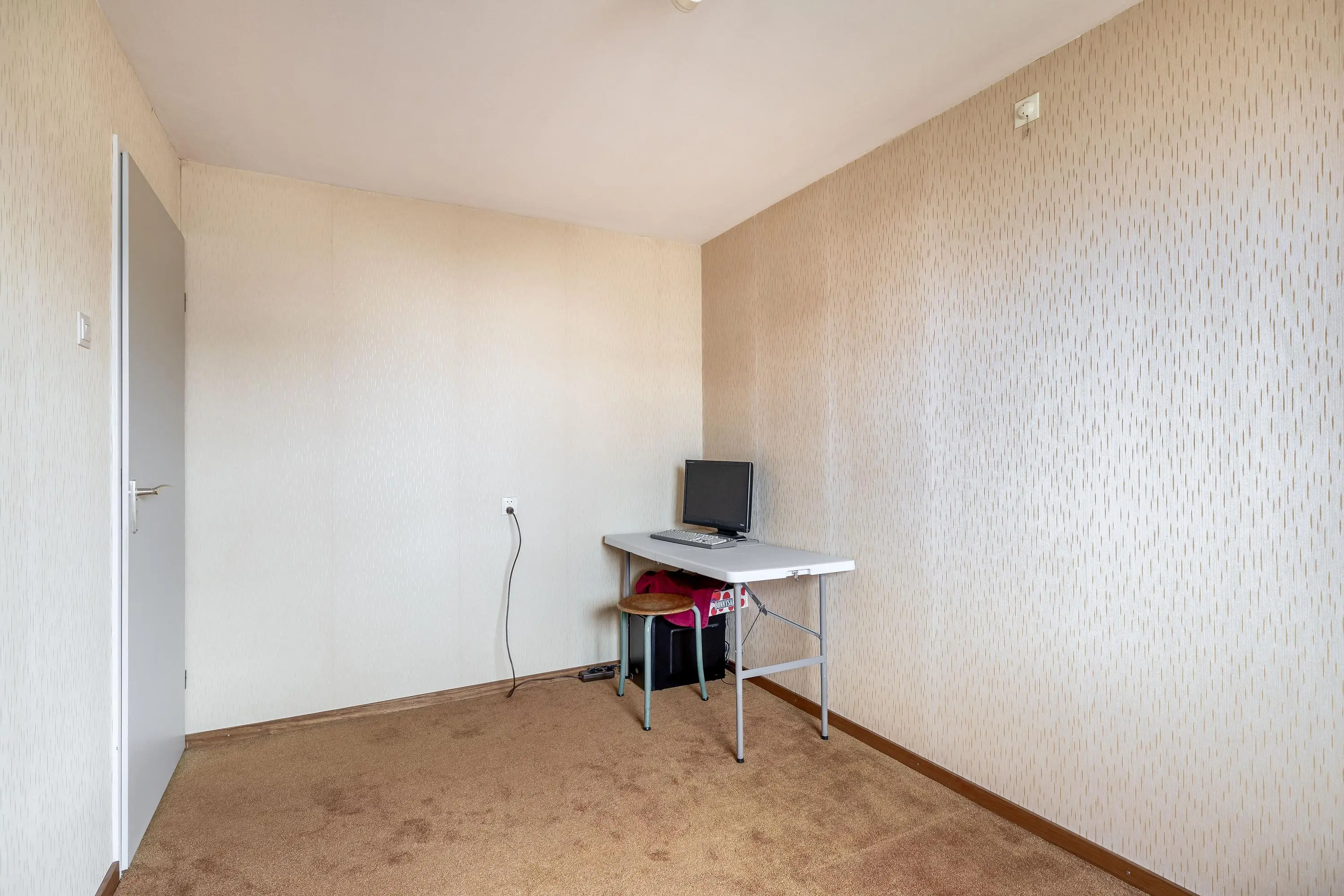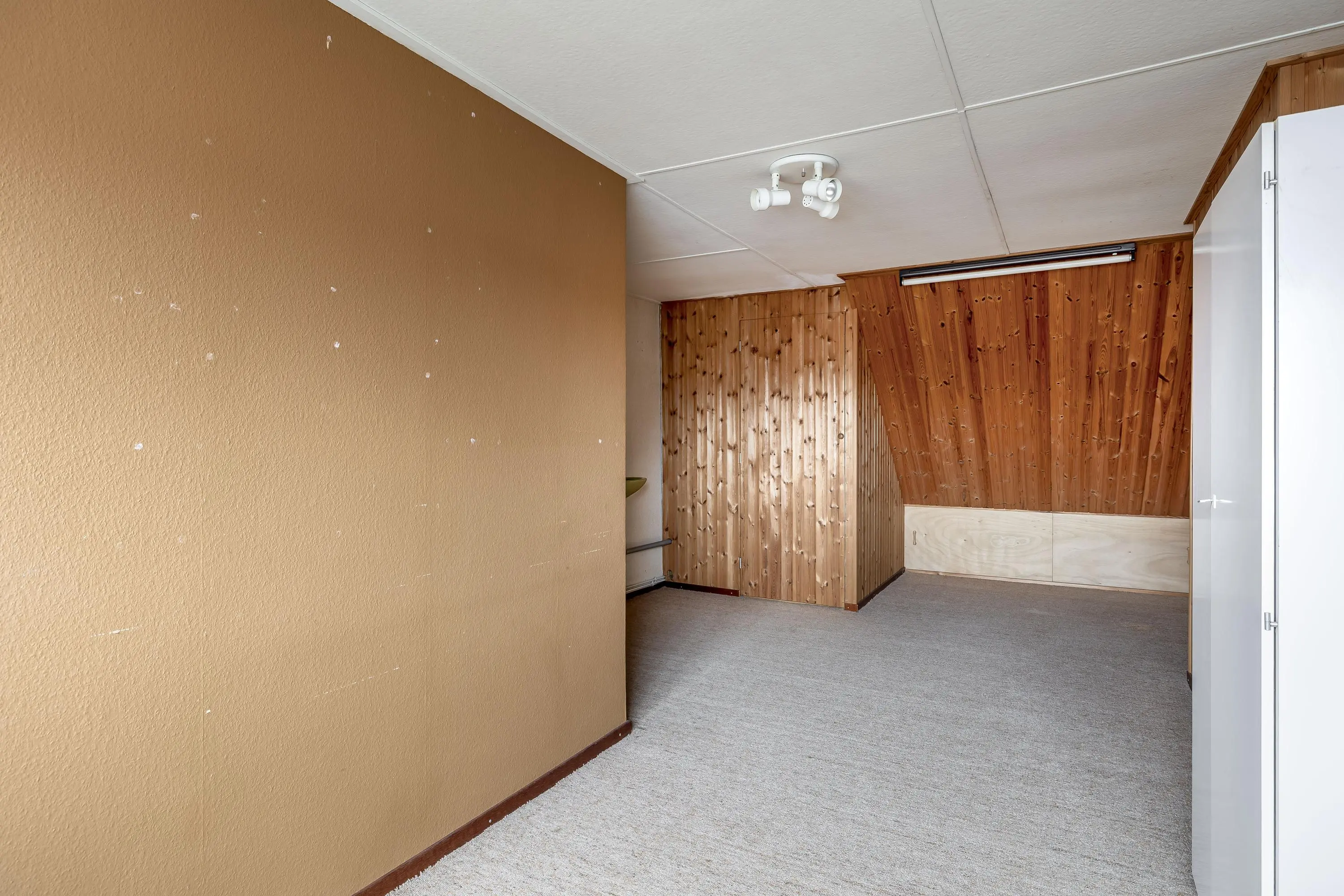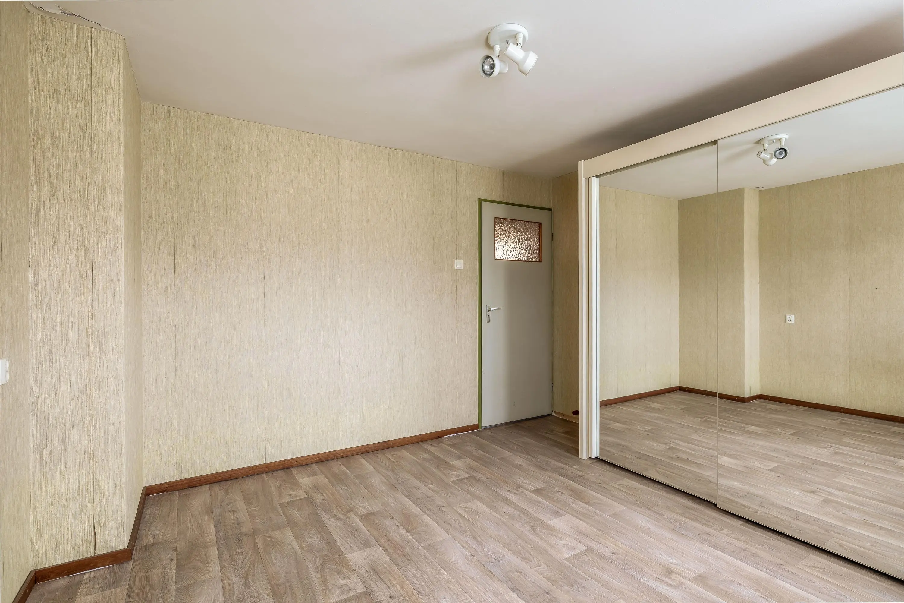 De vierde slaapkamer is royaal van formaat dankzij het uitgebouwde dakkapel en biedt volop flexibiliteit in de inrichting. De kamer geniet bovendien van veel natuurlijk licht en is uitgerust met een wastafel en een grote opbergruimte achter de deur.