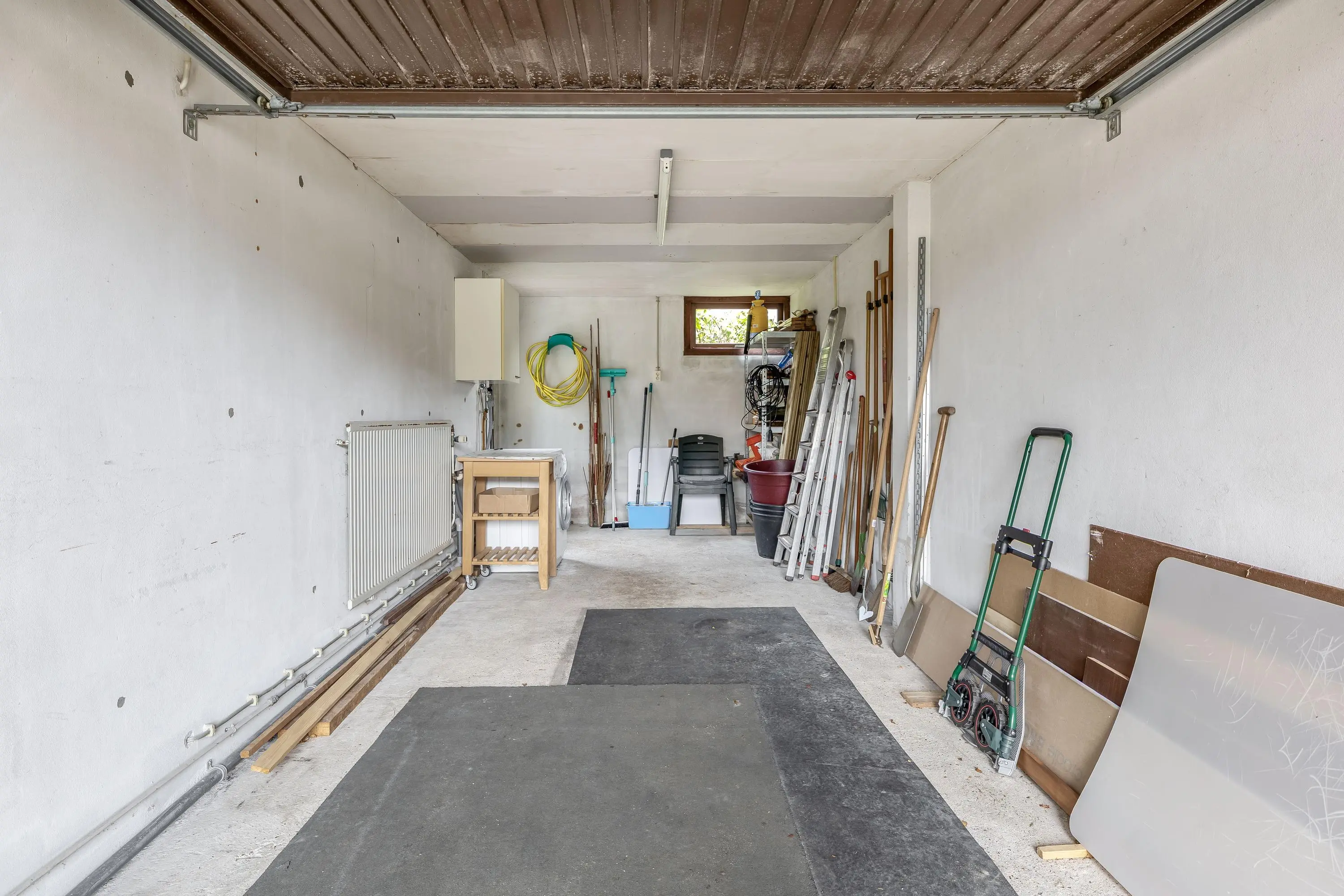 De garage heeft een oppervlakte van circa 20,5m² en biedt naast ruimte voor het parkeren van een auto ook een ruime berging. In de garage is een extra kraan met afvoer aanwezig, en tevens bevinden zich hier de aansluitingen voor wasmachine en droger. Vanuit de garage is bovendien de achtertuin bereikbaar.
