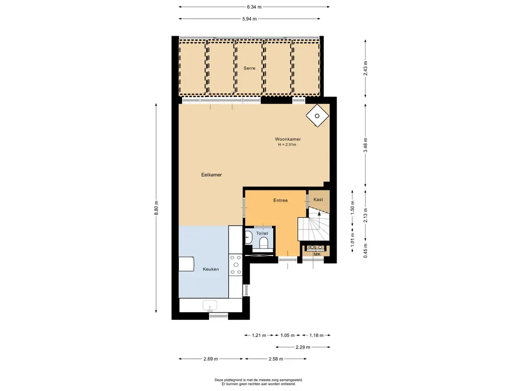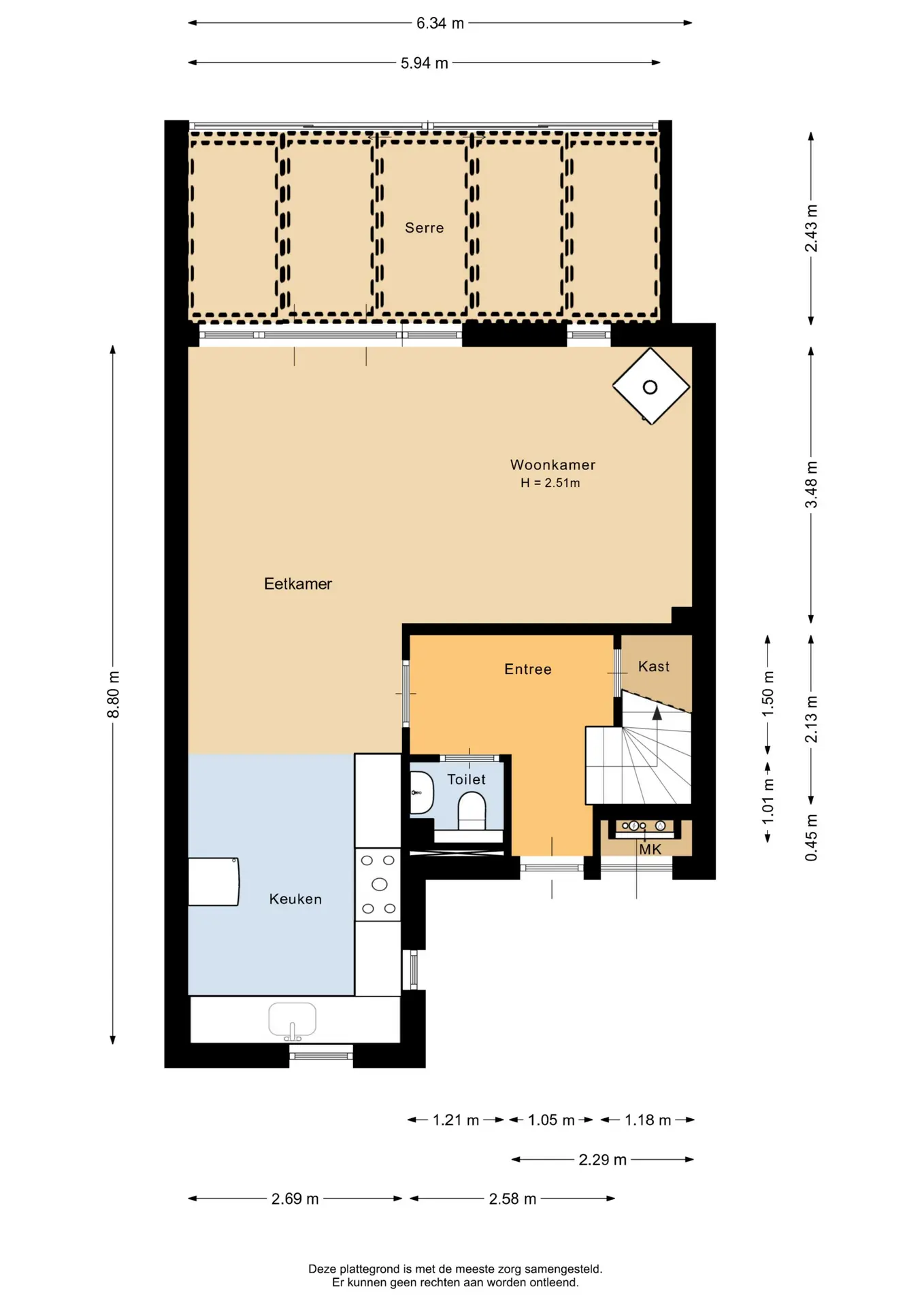 Deze presentatie is met zorg samengesteld. Desondanks kunnen aan deze presentatie geen rechten worden ontleend. Daarnaast aanvaardt de makelaar of zijn opdrachtgever geen aansprakelijkheid voor de in de presentatie verstrekte informatie. Mocht de presentatie vragen oproepen, dan nodigen wij u van harte uit deze onder onze aandacht te brengen.