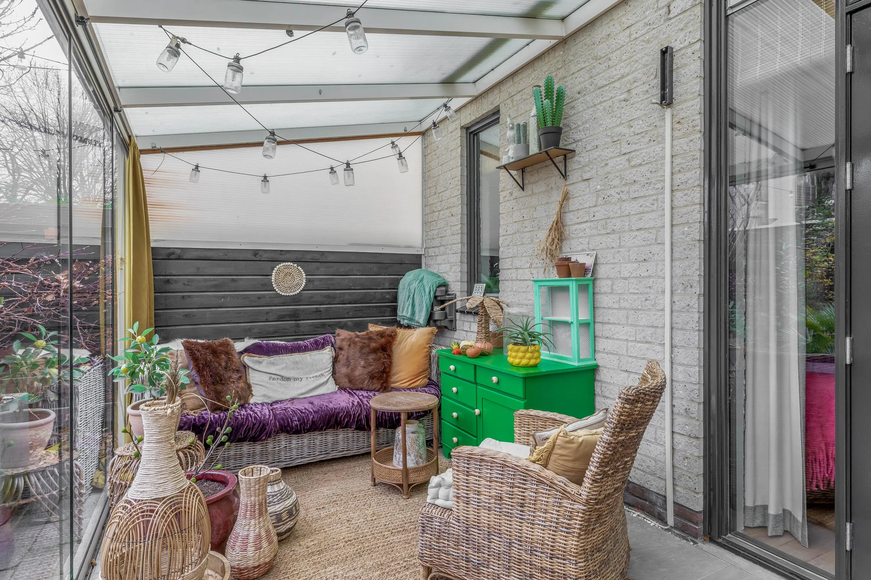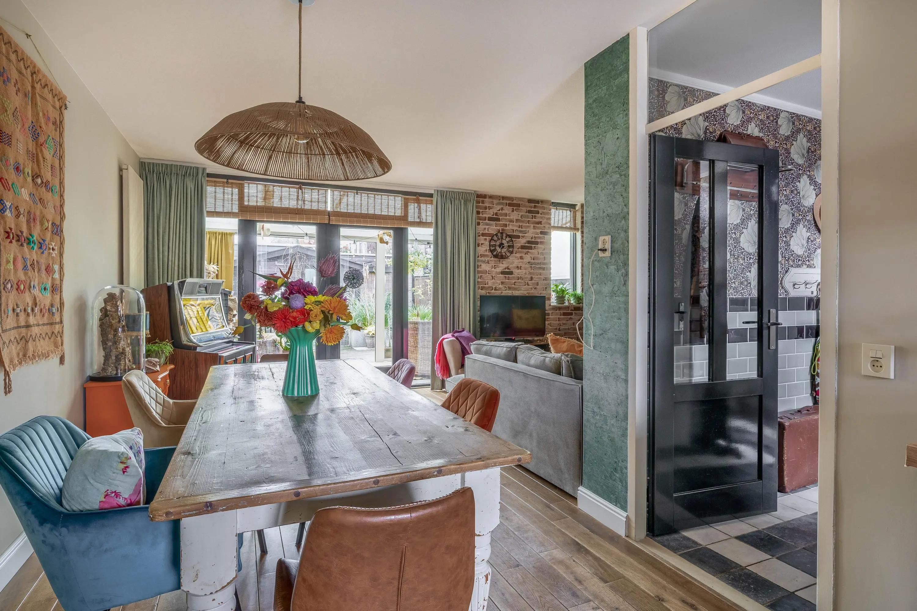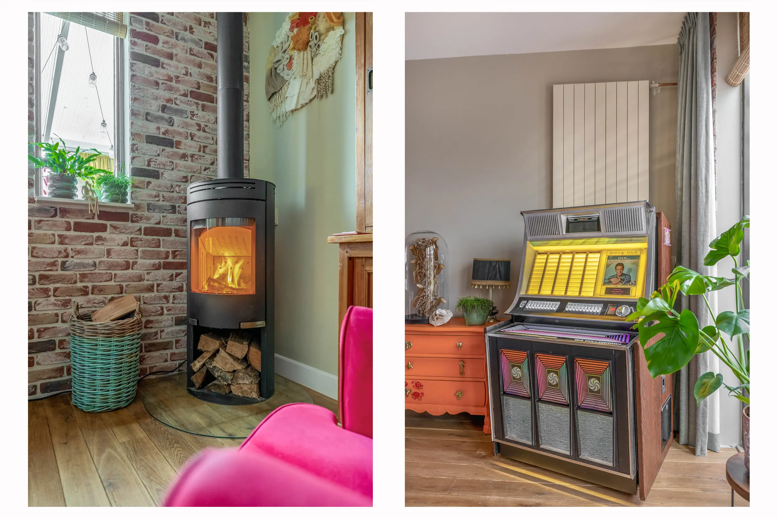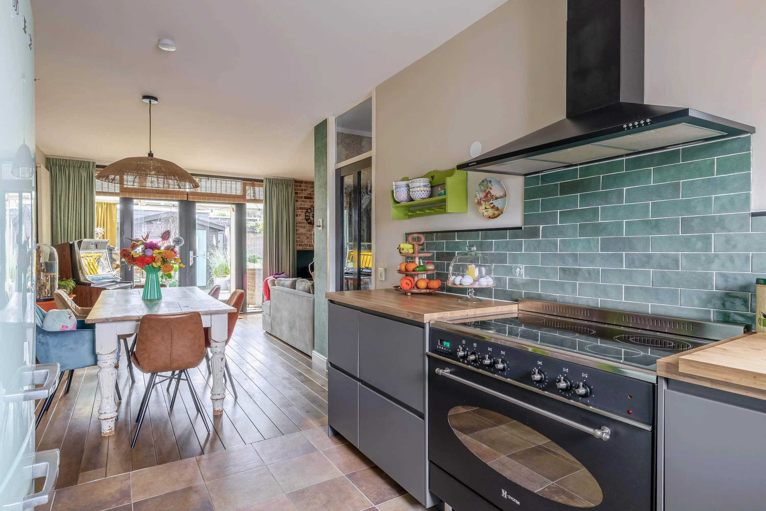 Via de betegelde voortuin is de entree van de woning en de meterkast bereikbaar. De entree is in de hal, hier is een losse toiletruimte te vinden met een wandcloset en fonteintje. Ook bevindt zich hier de trapopgang met daaronder de trapkast. Aan de voorzijde is de heerlijke woonkeuken te vinden. Deze heeft als apparatuur een mooi los kookstel (inductie) met een grote oven en afzuigkap. Ook is er een vaatwasser, spoelbak en losse koel-/vriescombinatie aanwezig. Uiteraard is er ook voldoende kastruimte. Dan volgt de eethoek met aansluitend de royale living aan de achterzijde. In deze living zijn openslaande deuren naar de serre en tuin en een zeer sfeervolle houtkachel aanwezig. Hierdoor krijgt deze ruimte een nog huiselijker gevoel. De achtertuin is deels overdekt met een fijne serre. De ultieme plek om ook met kouder weer te genieten van de fijne achtertuin.