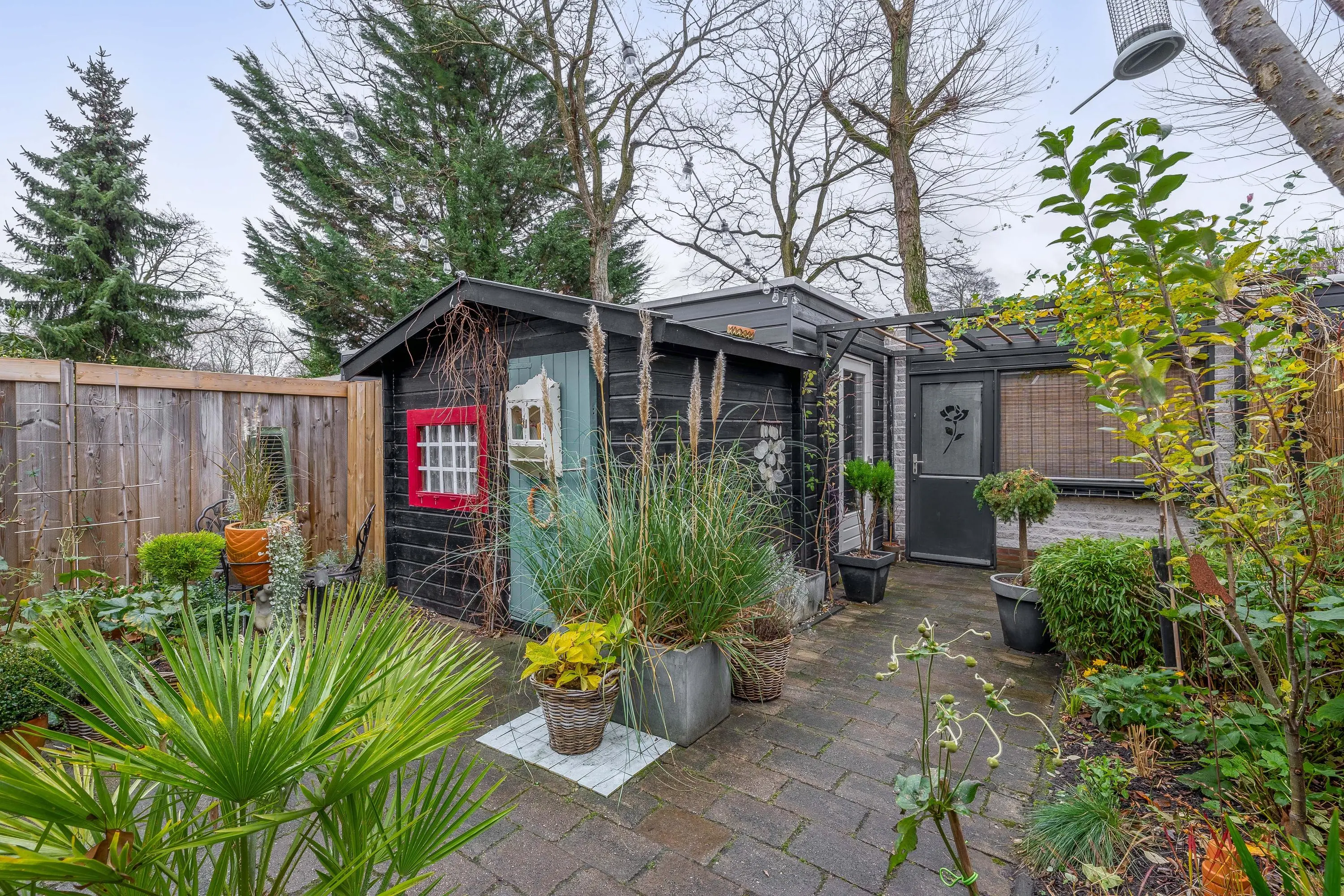 Middels de betegelde voortuin is de woning te bereiken. De heerlijke achtertuin is gelegen op het oosten. Ook zijn er 2 losse schuren/bergingen en zelfs een grote garage te vinden. Deze garage komt uit op de straat, zo is er een praktische doorgang naar de woning. Dit is echt wel de kers op de taart van deze woning!
