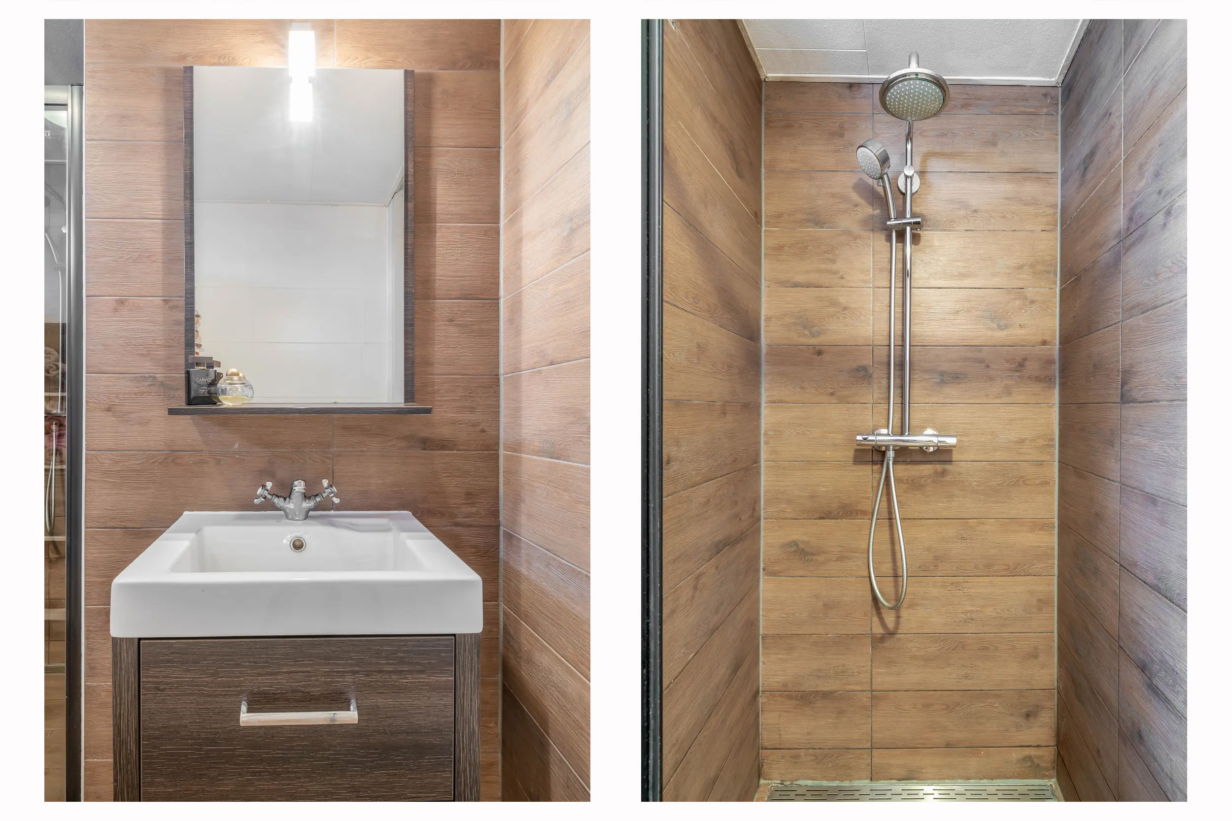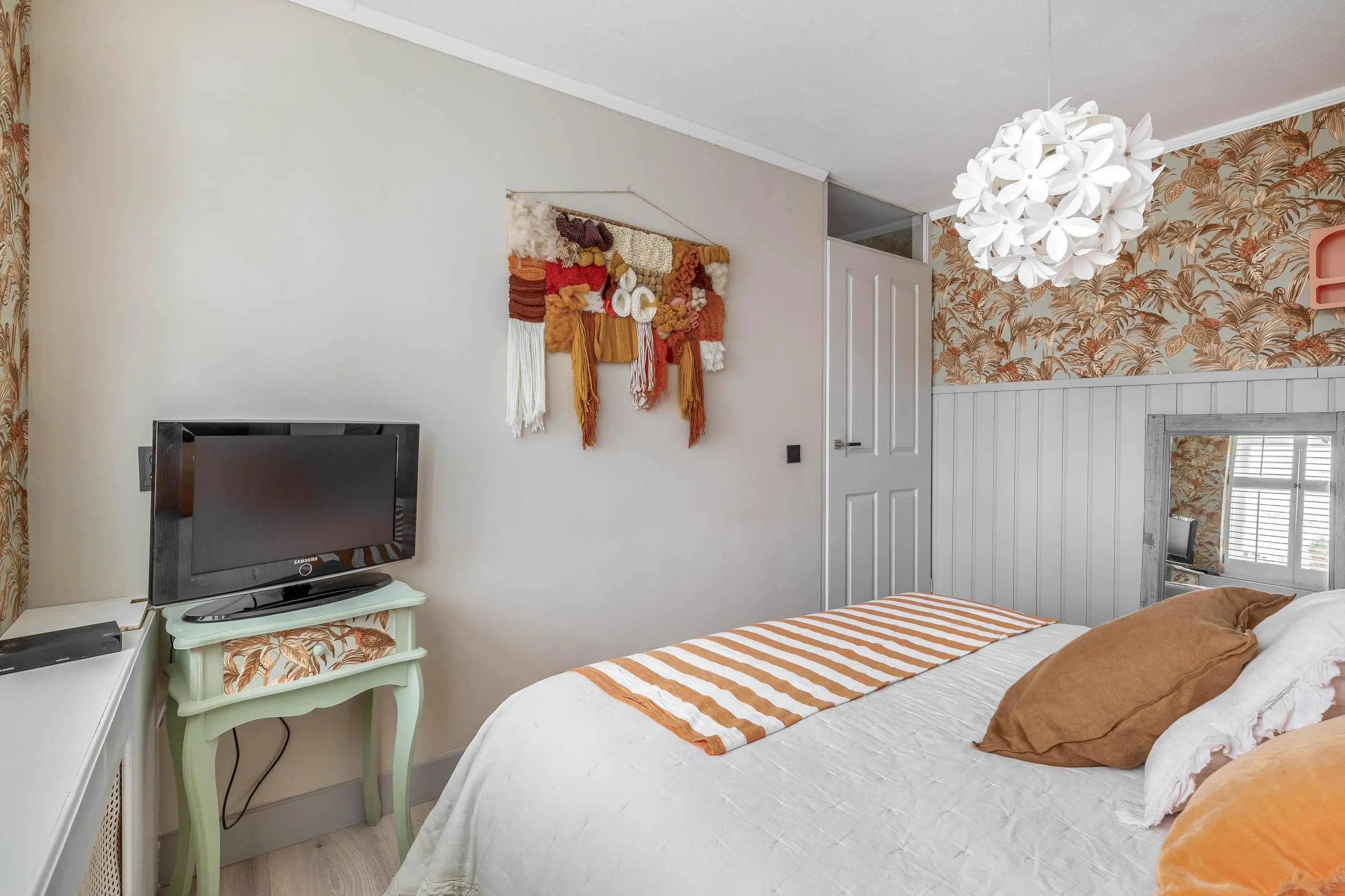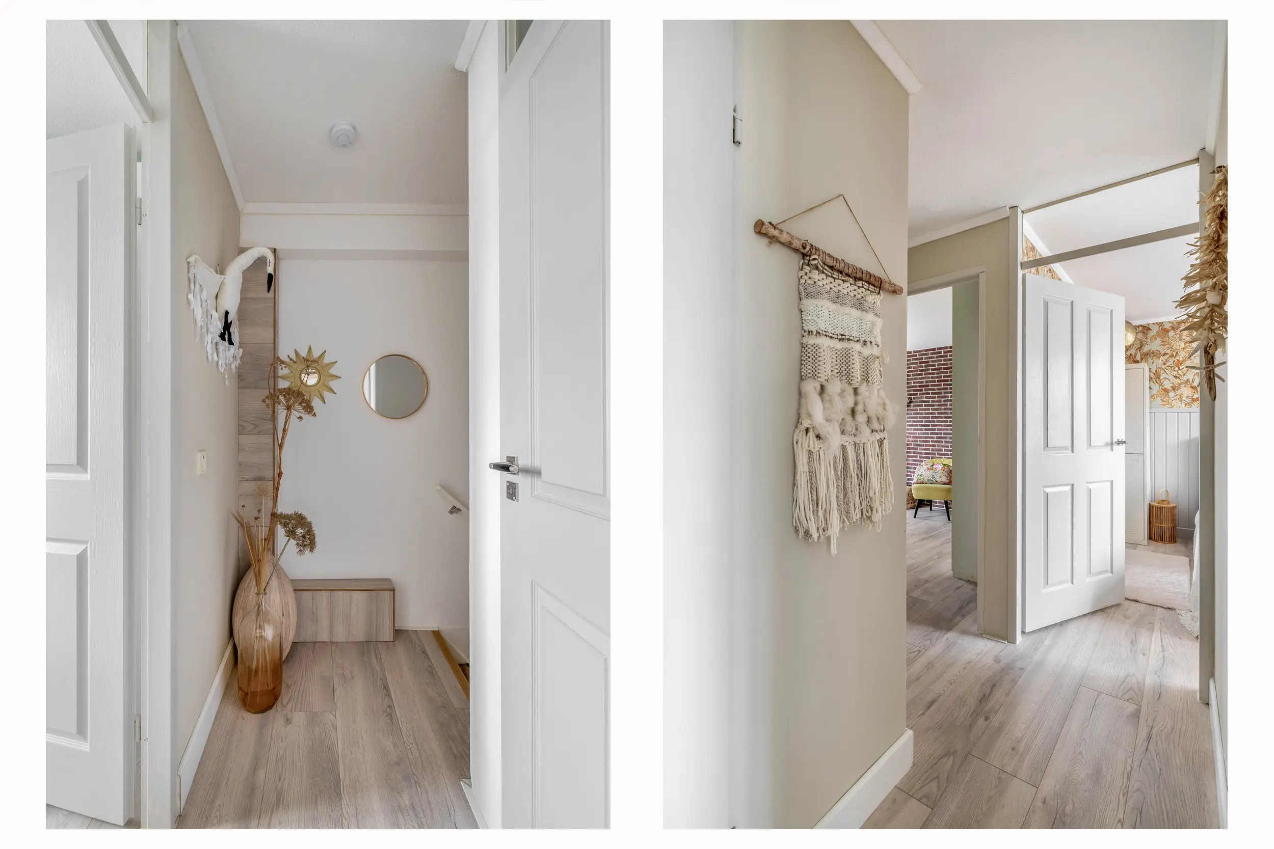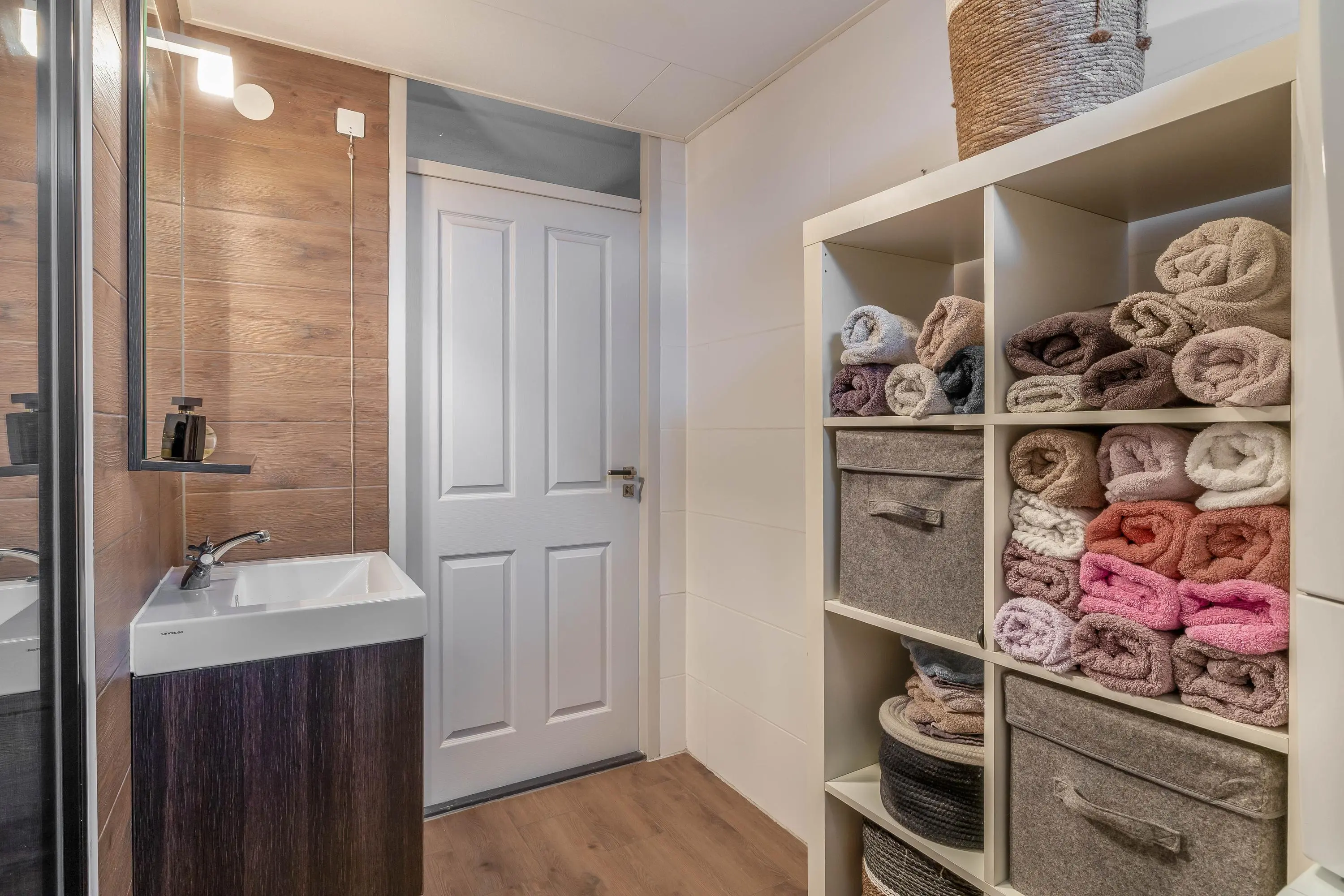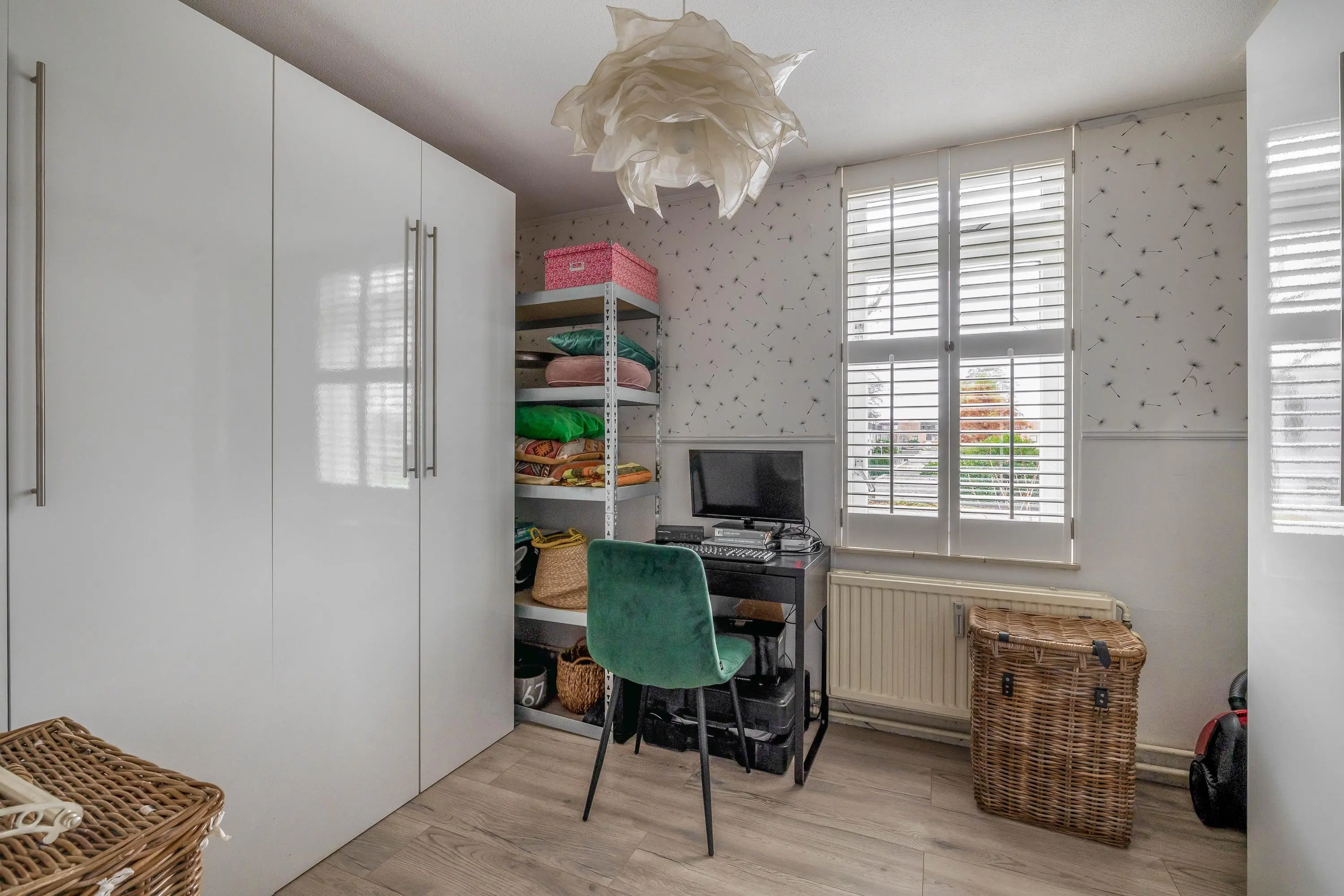 De opkomst op de eerste etage is op de overloop. Direct links is de luxe badkamer te vinden. Deze is modern en heeft als sanitaire voorzieningen een toilet, ruime inloopdouche, wastafel met meubel en de wasmachine aansluiting. Daartegenover is de eerste slaapkamer aanwezig, perfect te gebruiken als logeerkamer of kastenkamer. Dan volgt de master bedroom. Voorzien van grote raampartijen voor veel lichtinval. De derde slaapkamer is gelegen aan de voorzijde en is door het grote formaat goed te gebruiken als hoofdslaapkamer. Wat een heerlijk familiehuis!