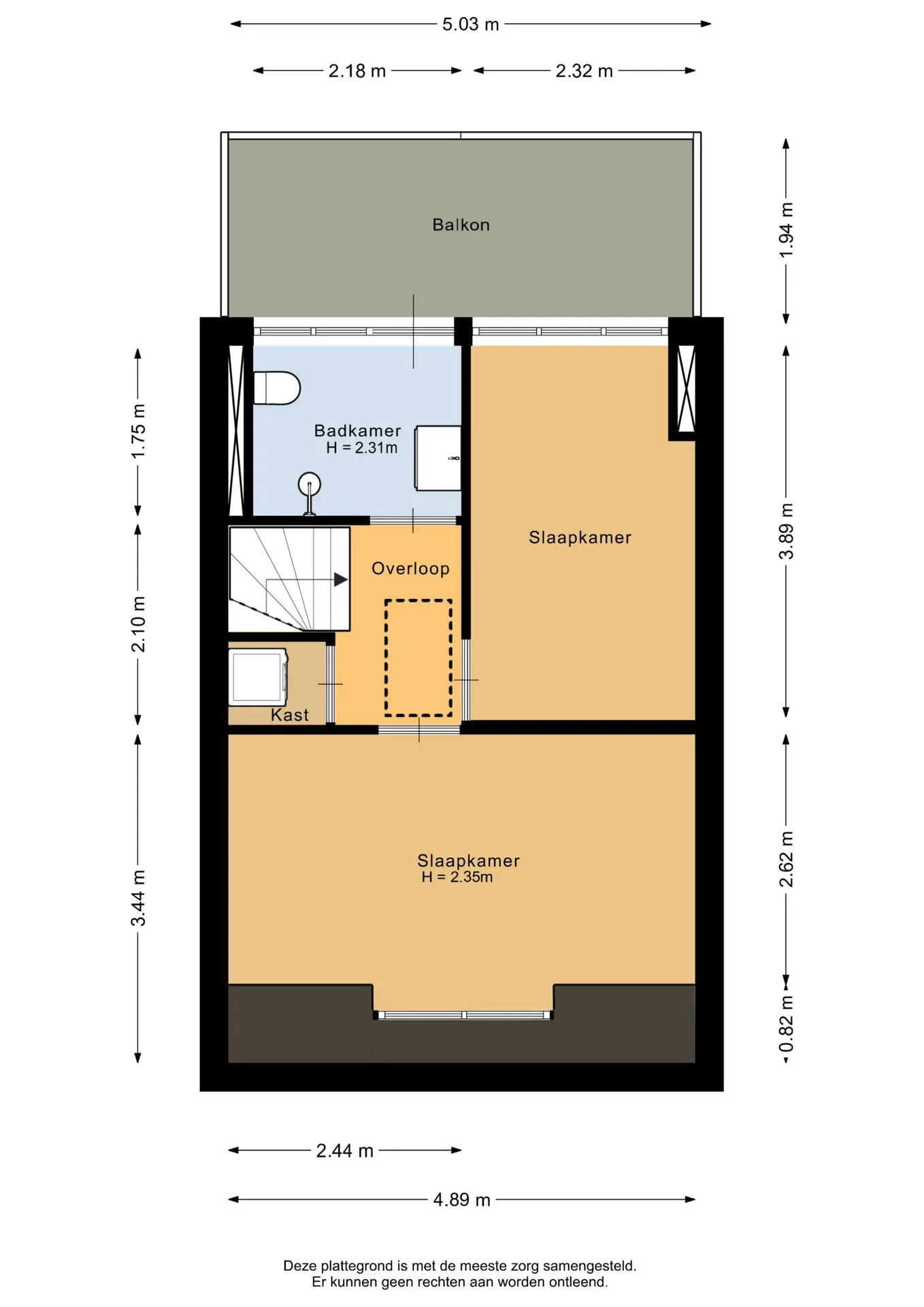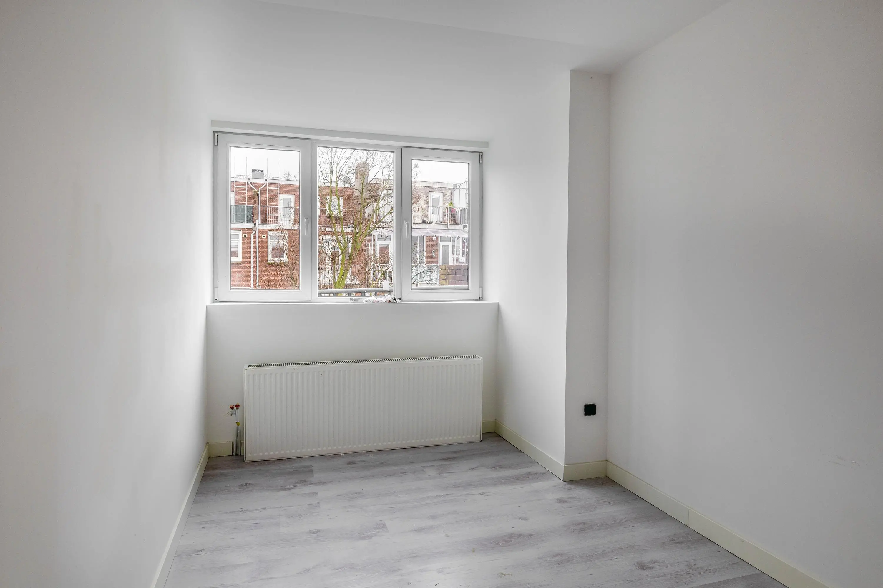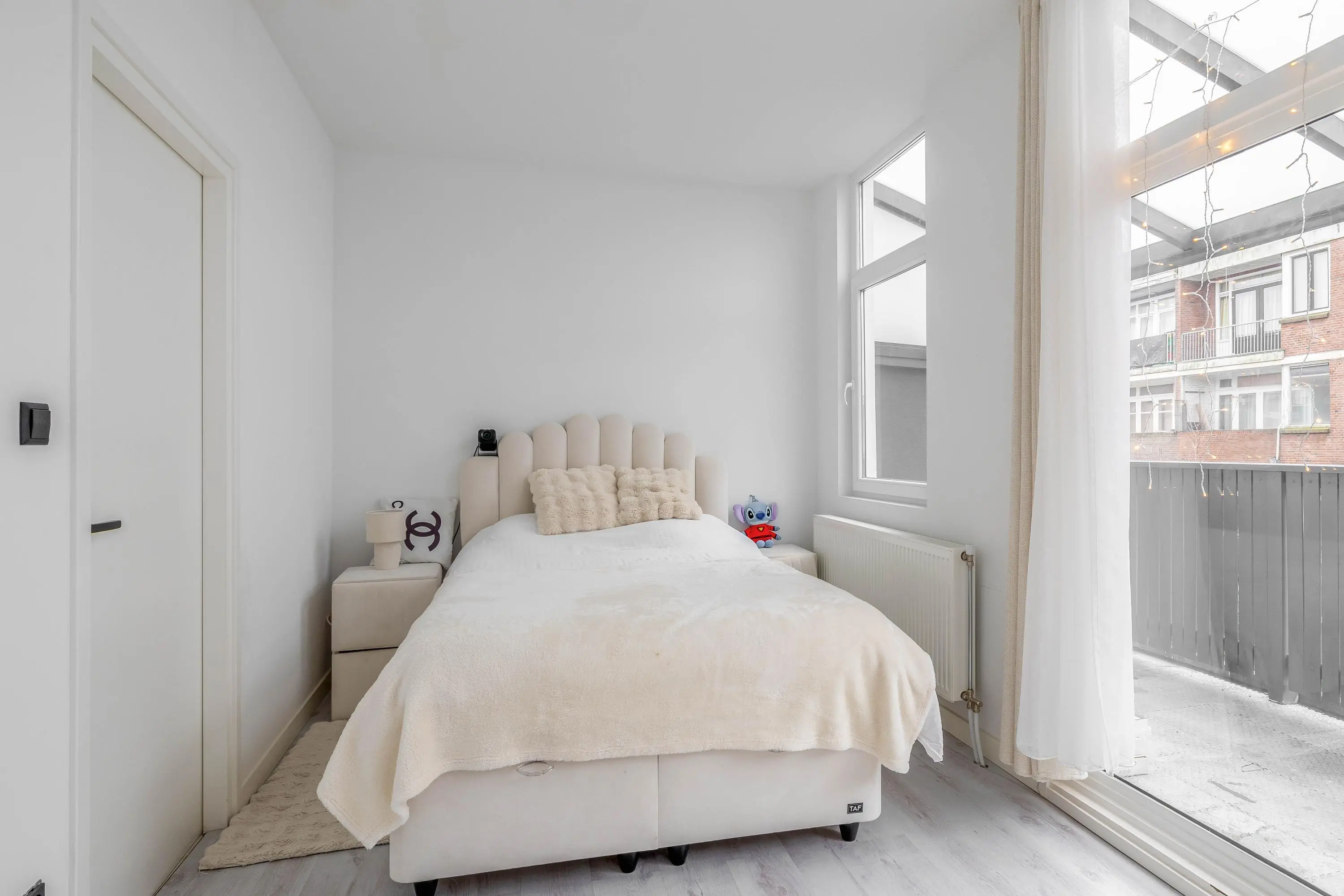 De hoofdslaapkamer bevindt zich aan de voorzijde van de woning en heeft een oppervlakte van circa 16m². De tweede slaapkamer ligt aan de achterzijde en meet ongeveer 13m². Vanuit deze slaapkamer is via een schuifpui het balkon bereikbaar.