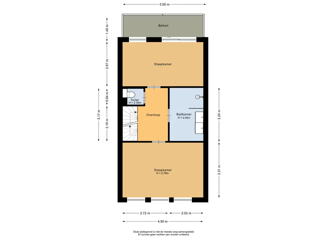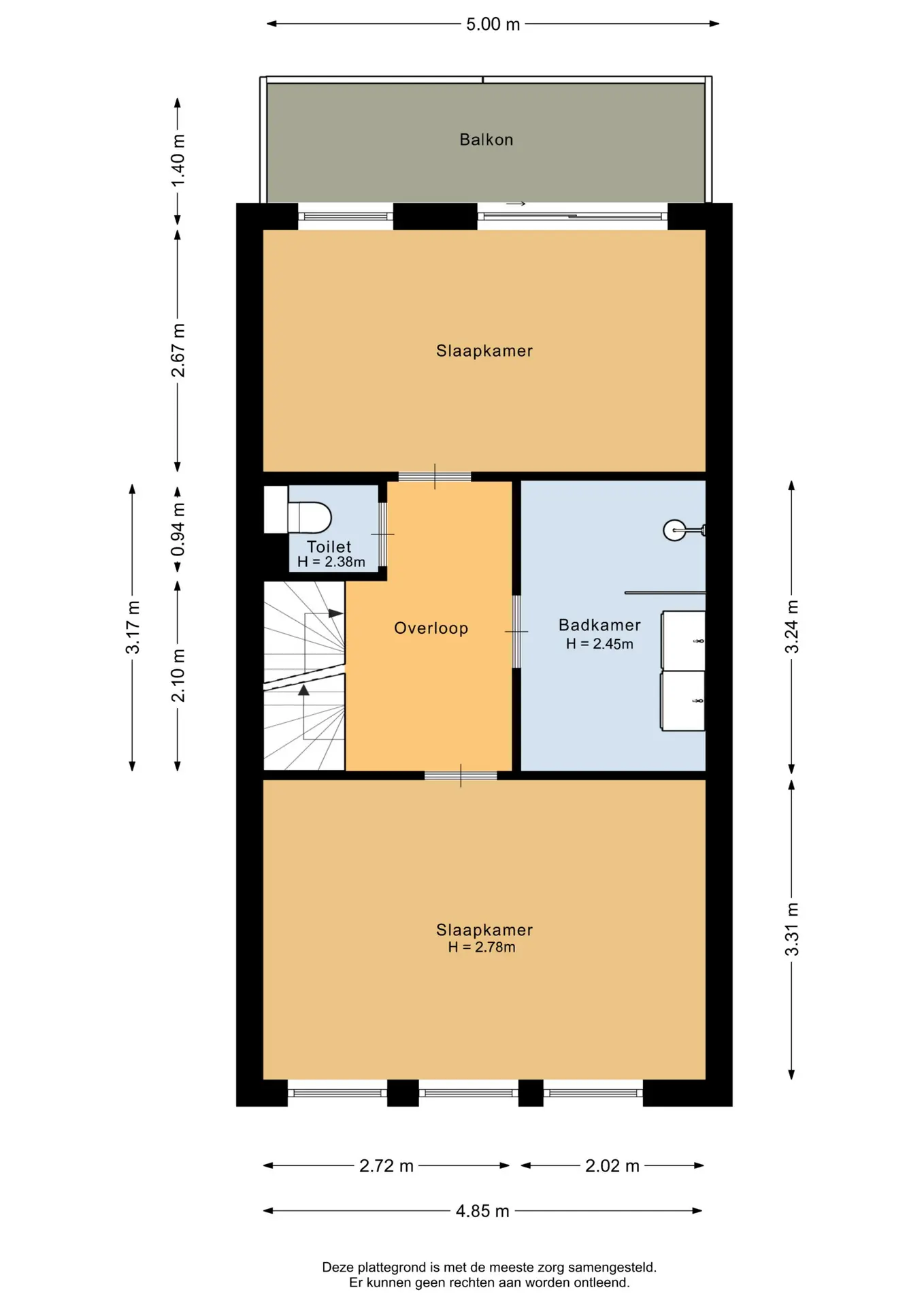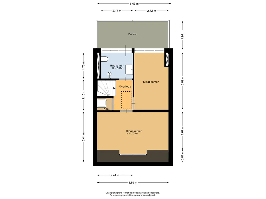 De hoofdslaapkamer bevindt zich aan de voorzijde van de woning en heeft een oppervlakte van circa 16m². De tweede slaapkamer ligt aan de achterzijde en meet ongeveer 13m². Vanuit deze slaapkamer is via een schuifpui het balkon bereikbaar.
